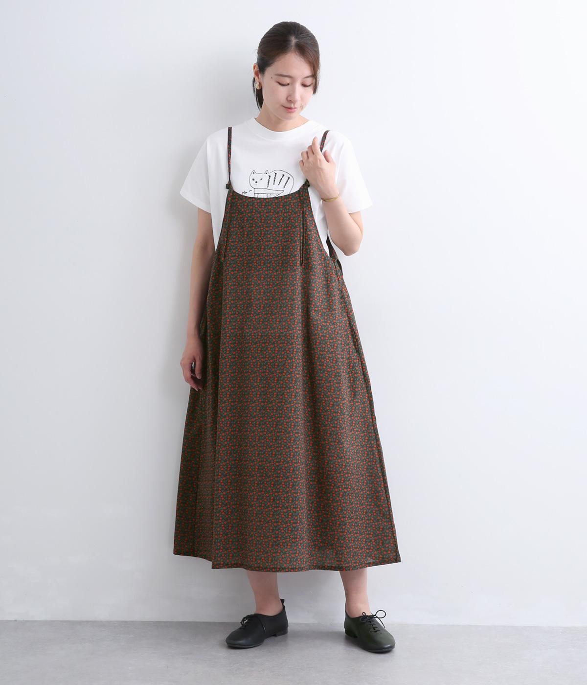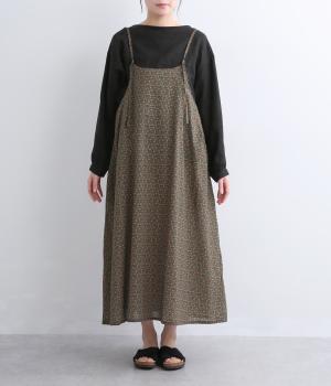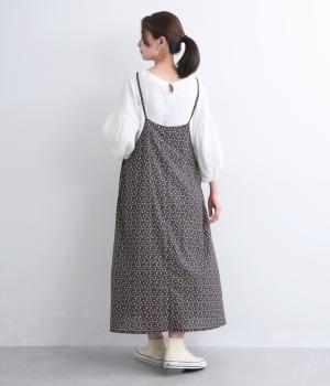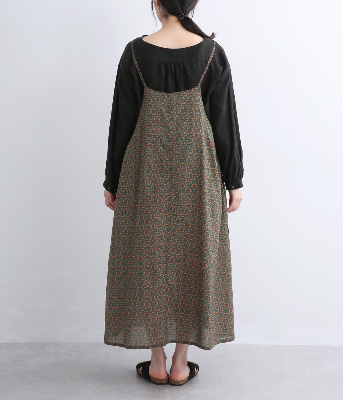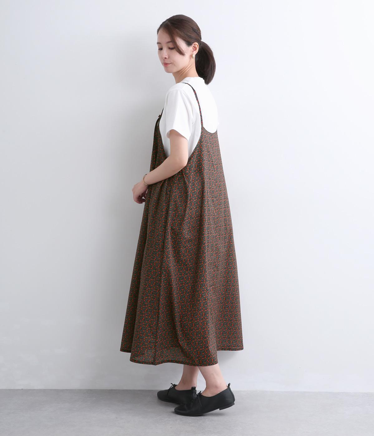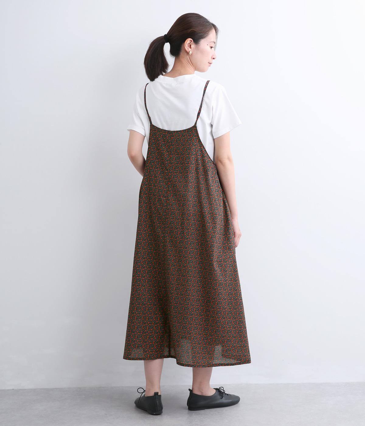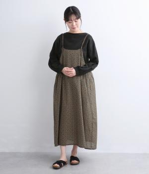 リネン裾ボーダーピンタック&胸・裾レースフリルギャザー2wayキャミワンピース