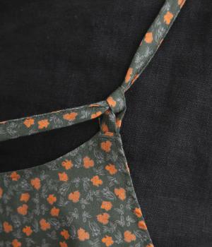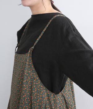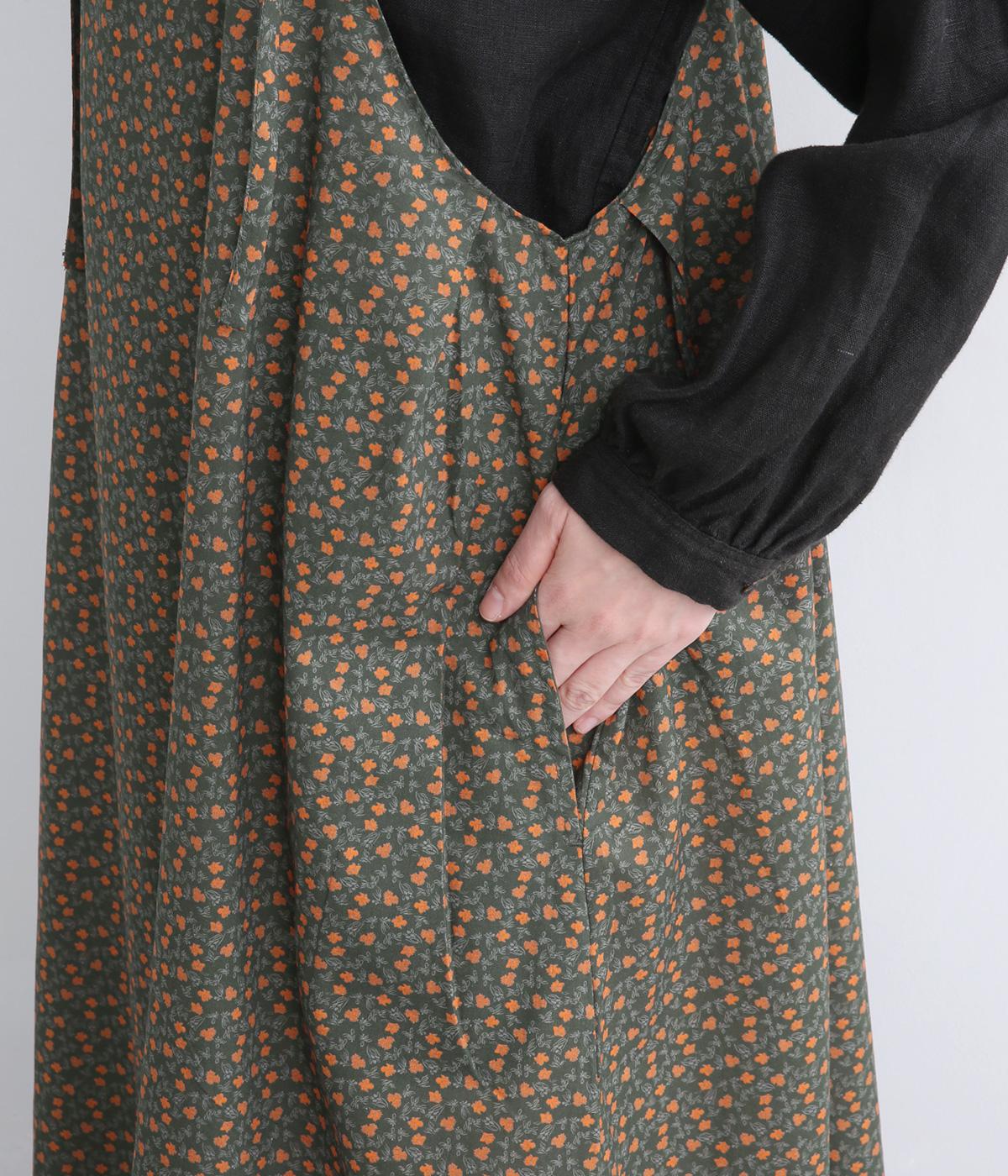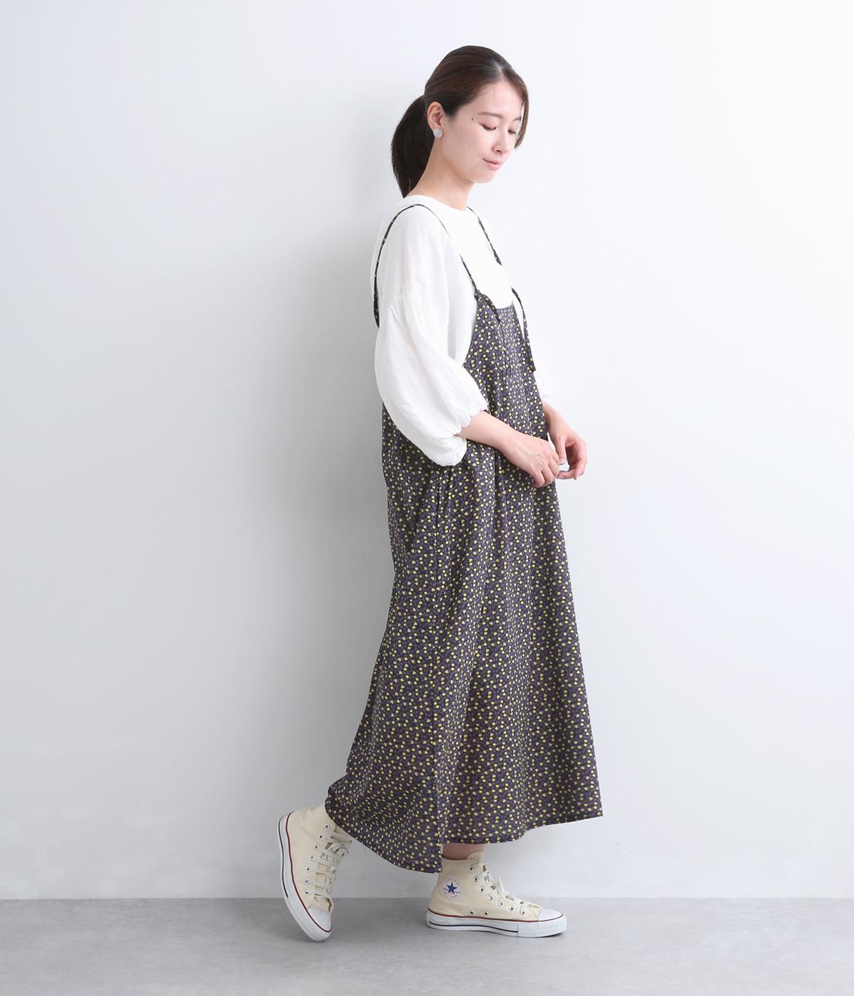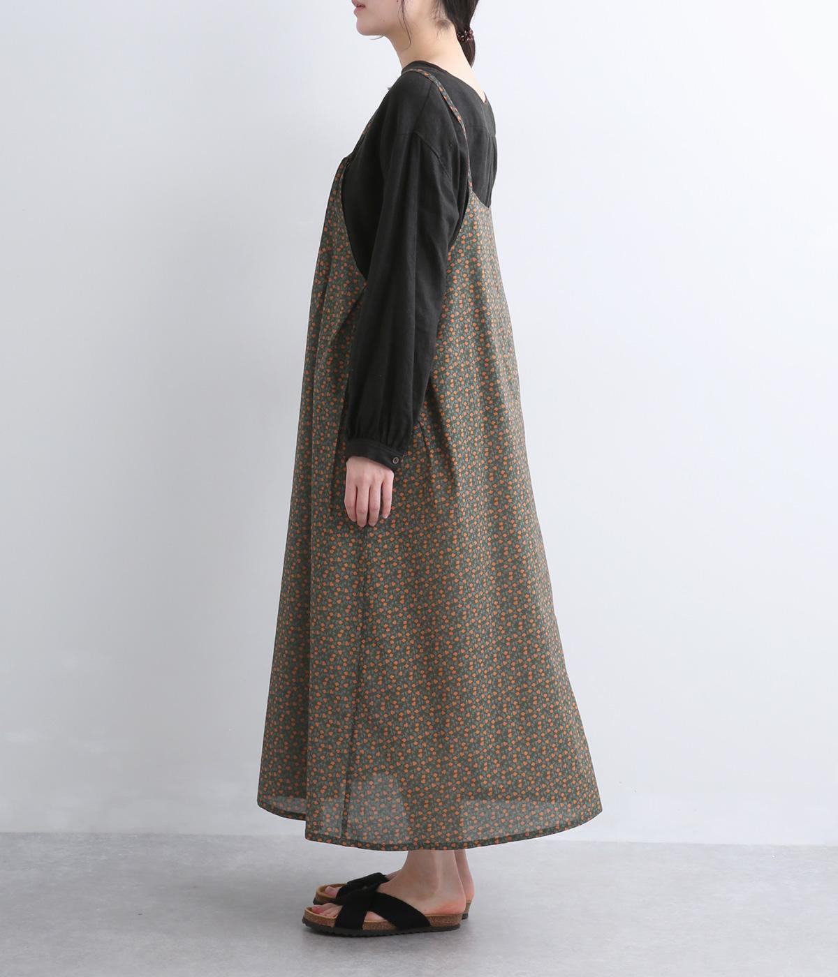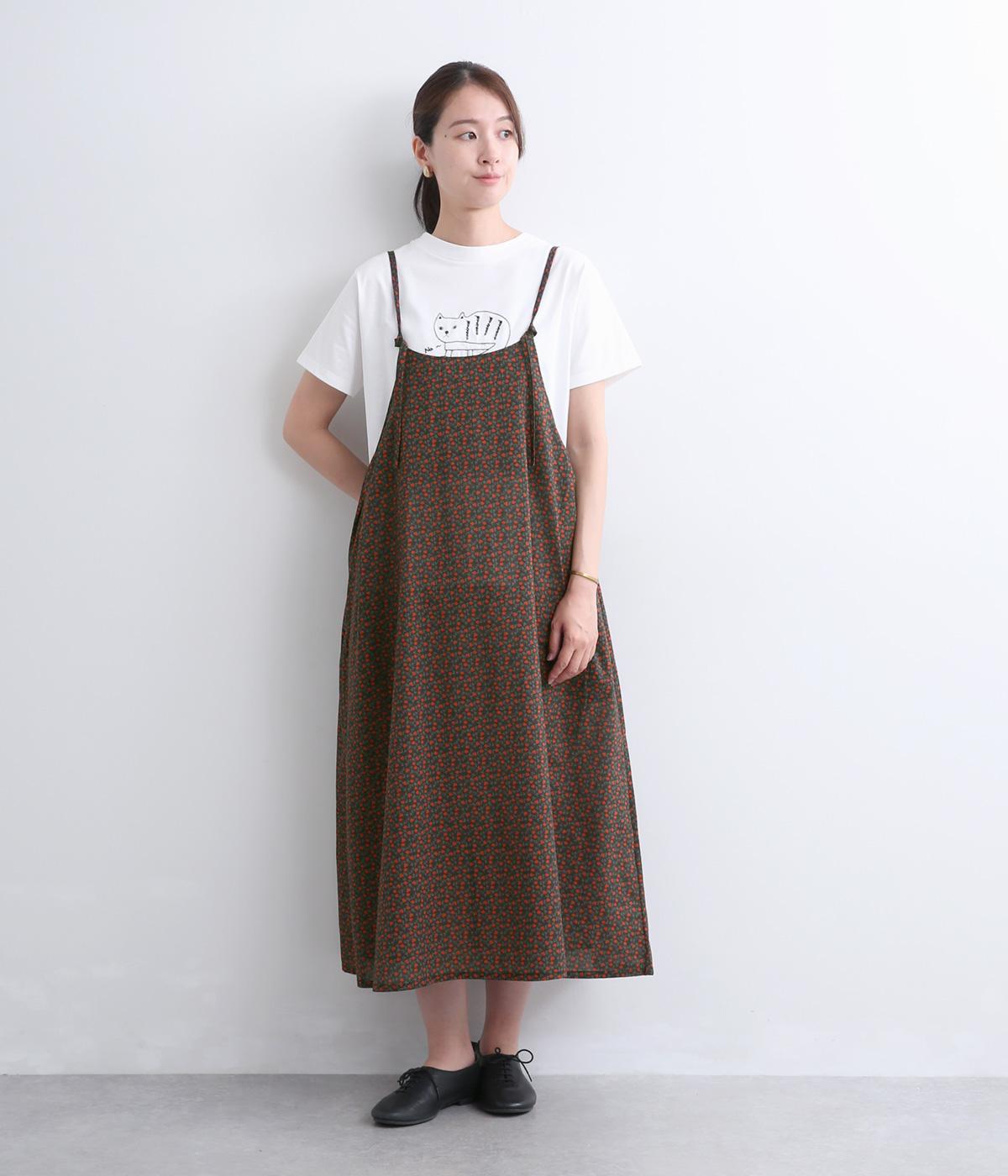 リネン裾ボーダーピンタック&胸・裾レースフリルギャザー2wayキャミワンピース