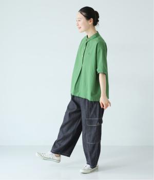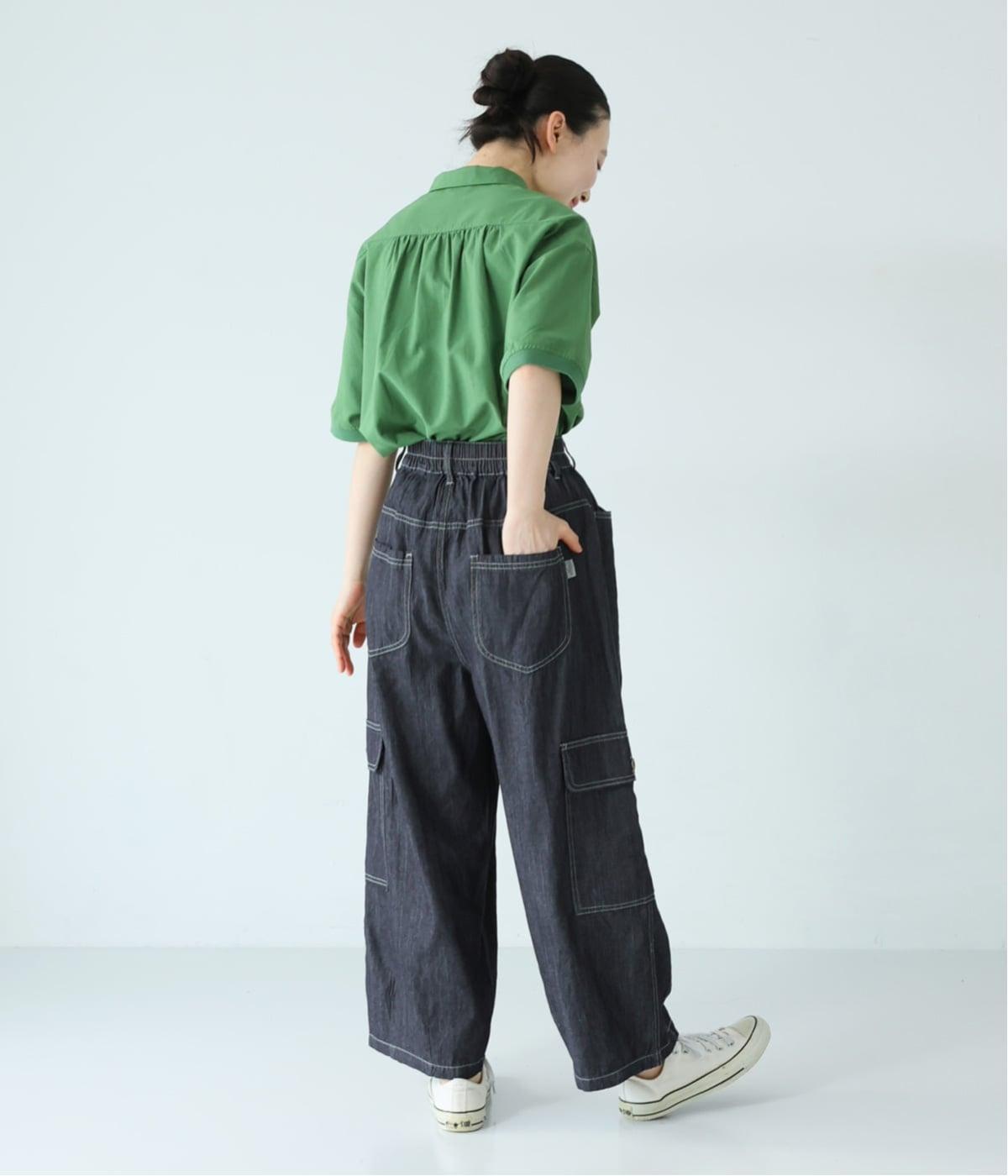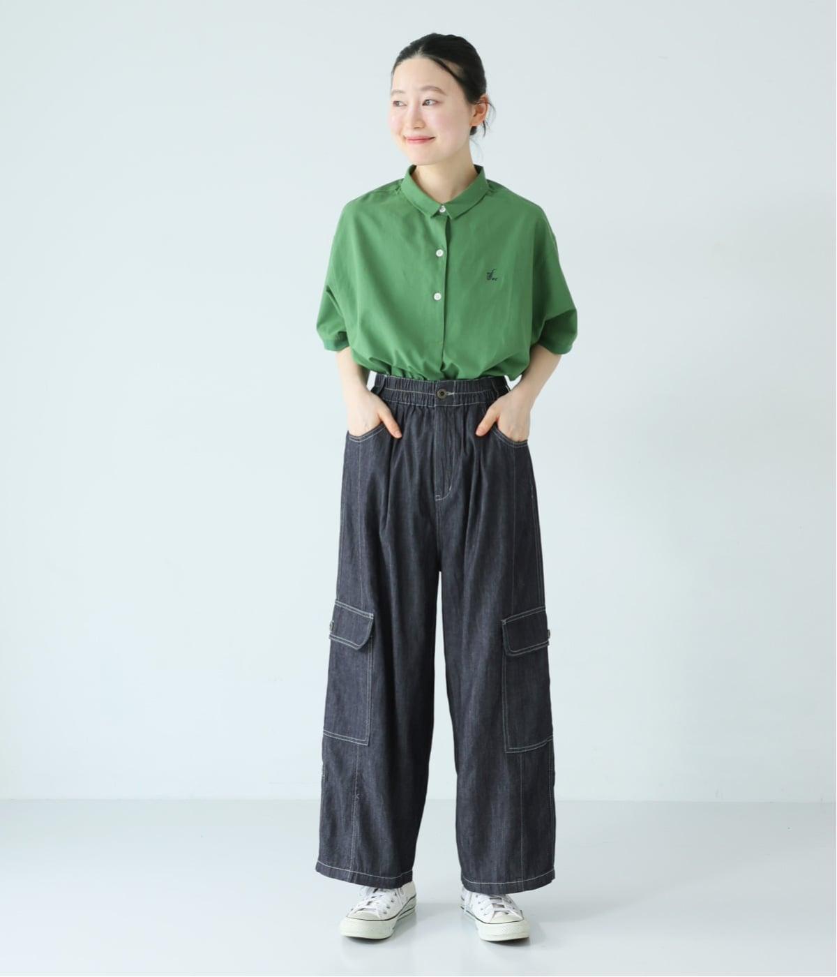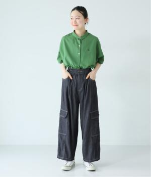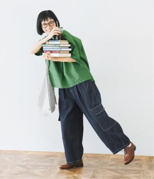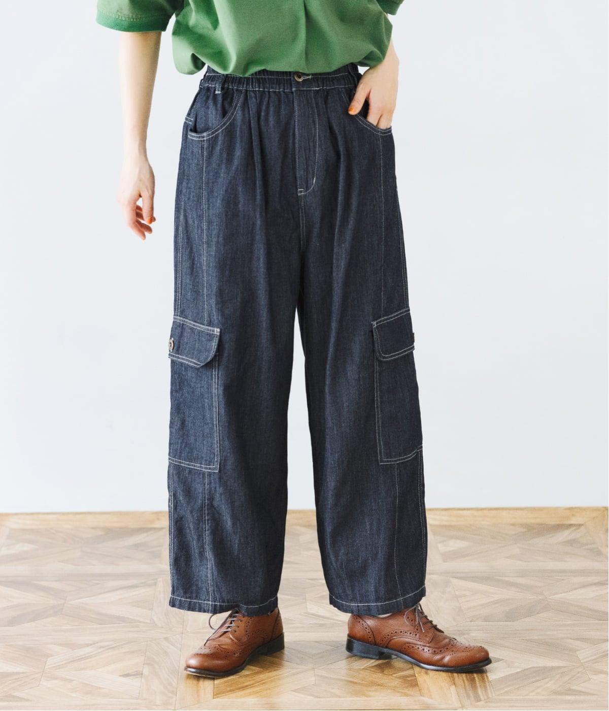 深みのあるインディゴネイビーは、幅広いスタイリングに合わせやすい万能カラー。鮮やかなグリーンのトップスを合わせることでメリハリが生まれ、バランスのよい着こなしにまとまります。