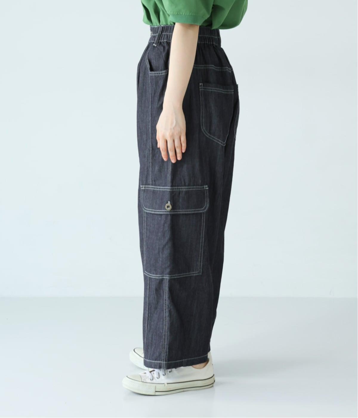 横から見たときも、脚のラインをきれいに魅せる立体的なシルエット。ワークテイストを感じるディテールで、大人のカジュアルスタイルがさらに引き立つデザインです。