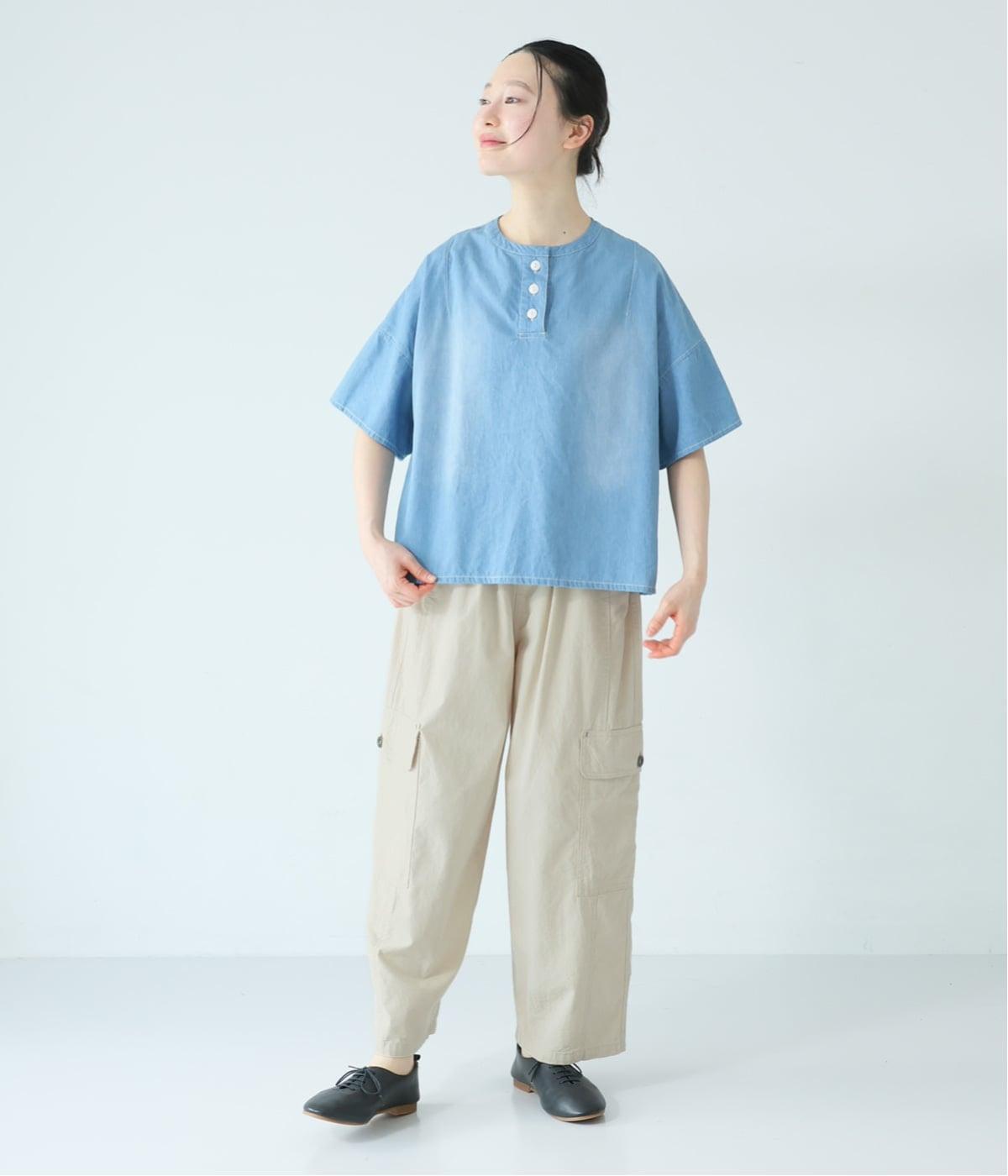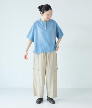 ベージュとカーキはコットン平織、インディゴネイビーは5.5ozライトオンスコットンデニムを使用。ウォッシュ加工による表面の起毛感や、やわらかな風合いも魅力のひとつです。