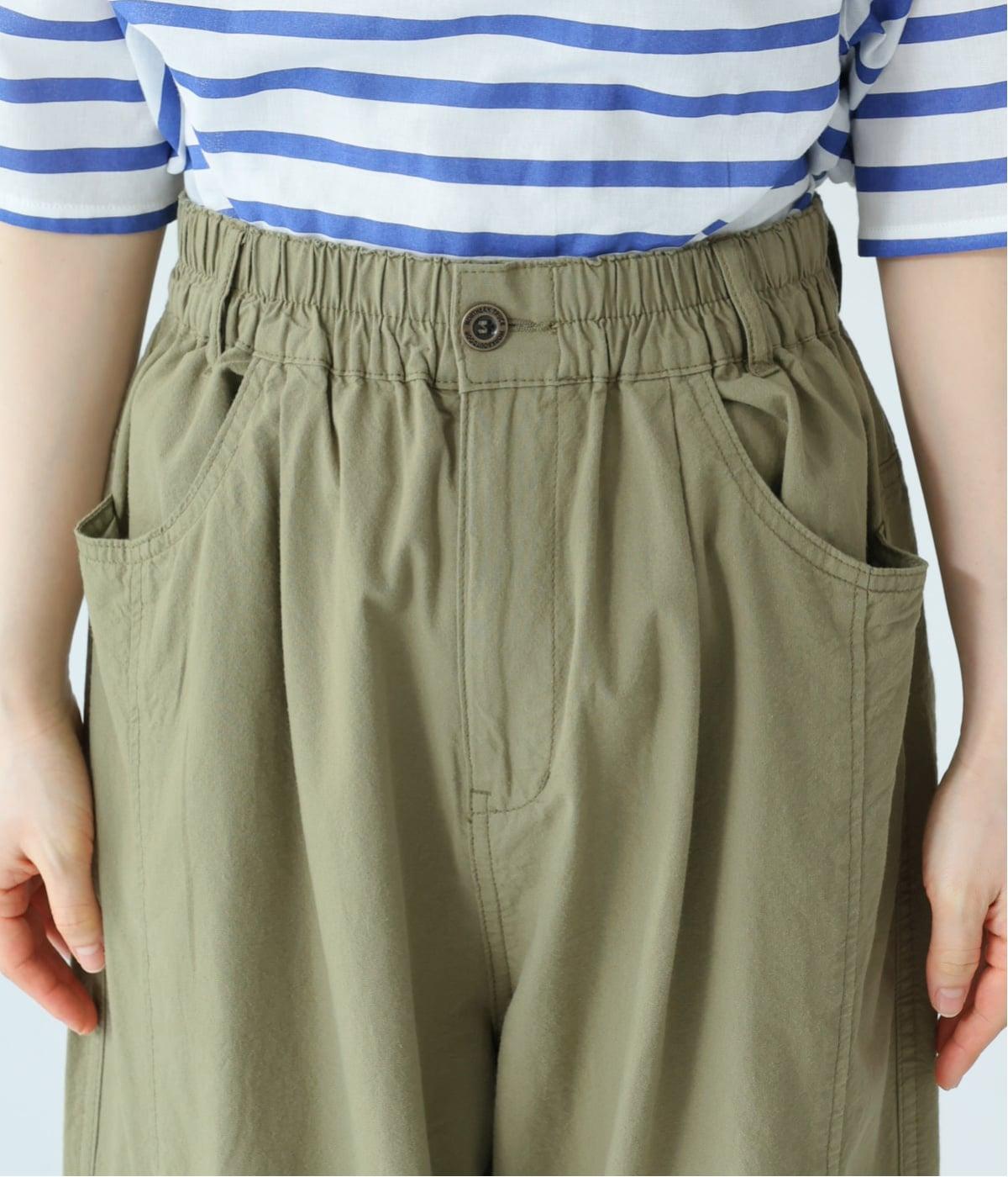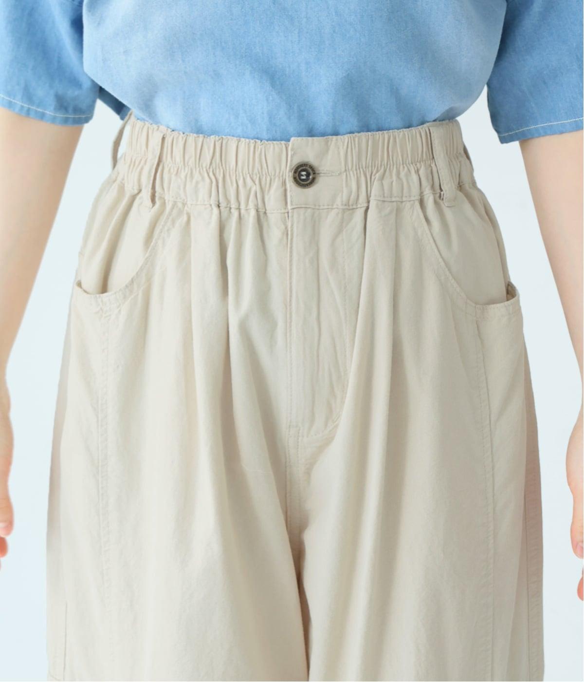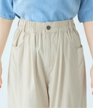 ウエストはゴム仕様で、リラックス感のあるはき心地。フロントにあしらったタックが、お腹まわりをさりげなくカバーし、すっきりとした印象に整えてくれます。