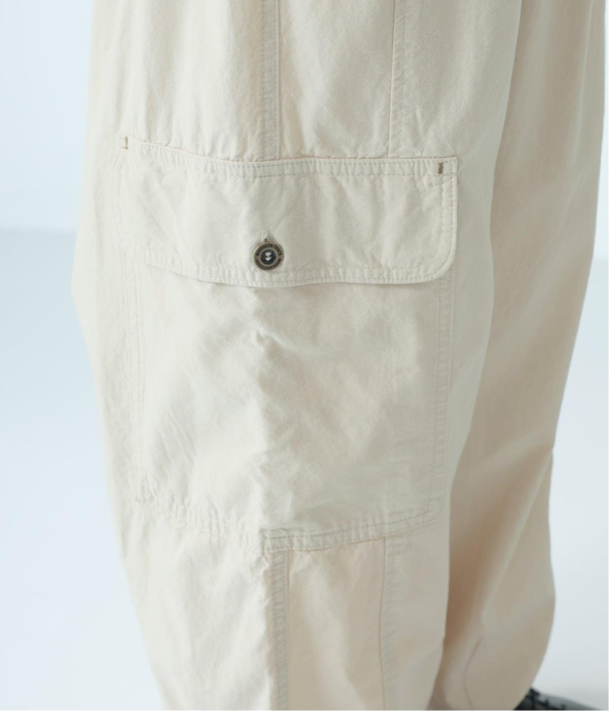 サイドにあしらった、存在感のあるカーゴポケット。やや下に配置することで、腰まわりから太ももにかけてを自然にカバーし、バランスよく見せてくれます。