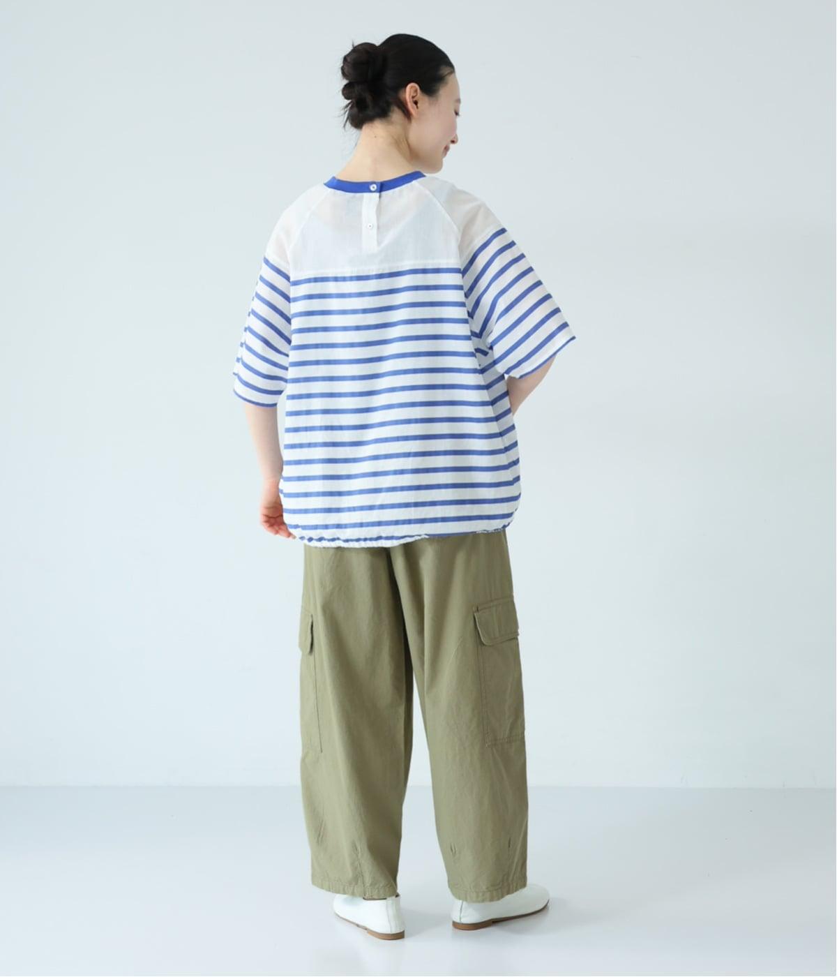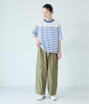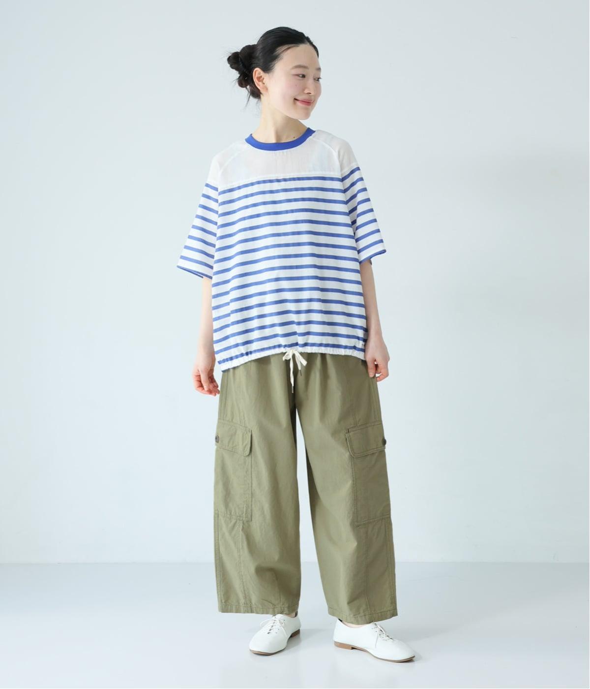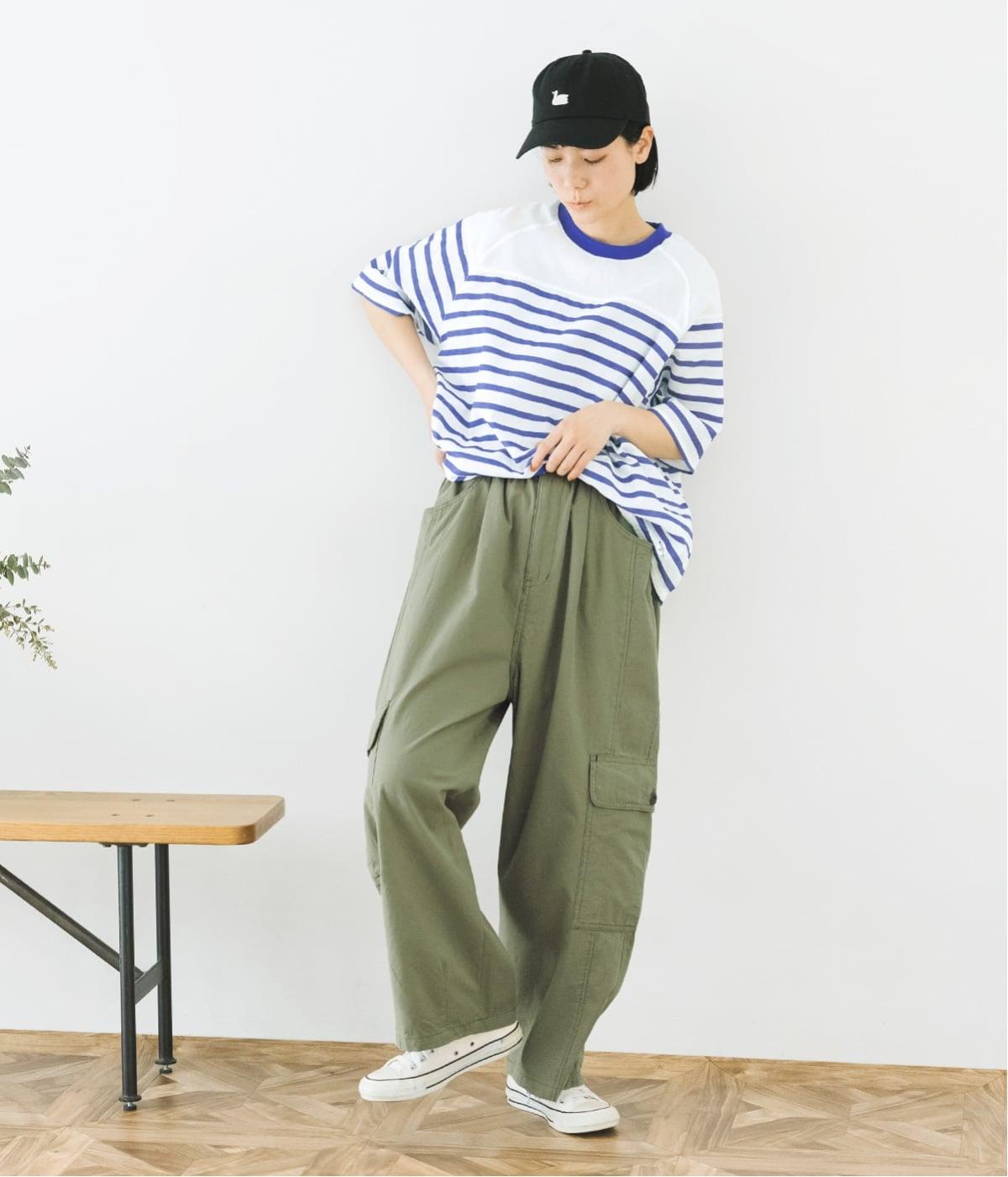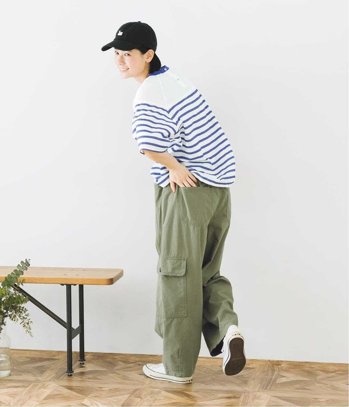 淡いトーンのカーキは、ほどよくカジュアルさを残しながら、こなれた印象を与えてくれる絶妙な色合い。爽やかなブルーのボーダートップスを合わせれば、春らしいミリタリースタイルが完成します。