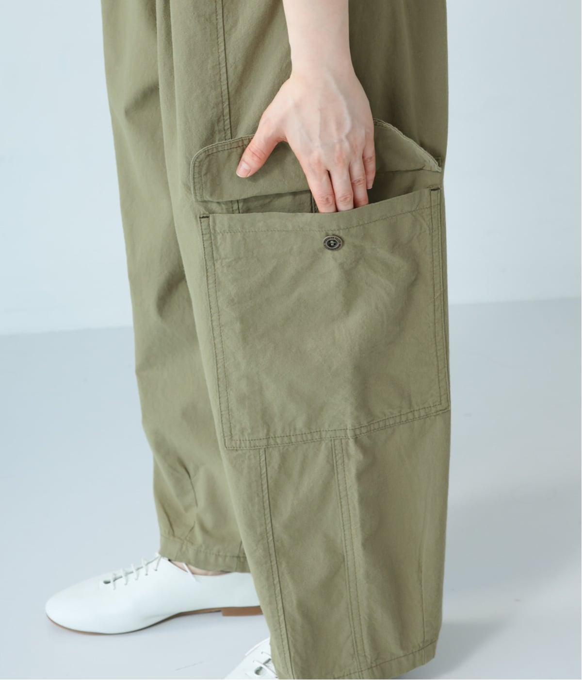 丸みのあるバルーンシルエットが特徴のカーゴパンツ。各所に縦のラインを入れることで、立体感を持たせつつ、すっきりと着こなせます。