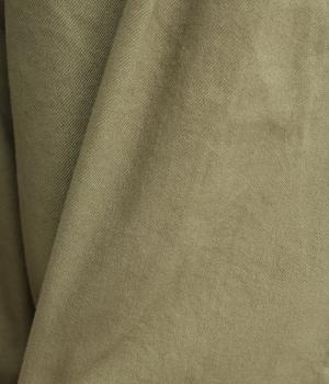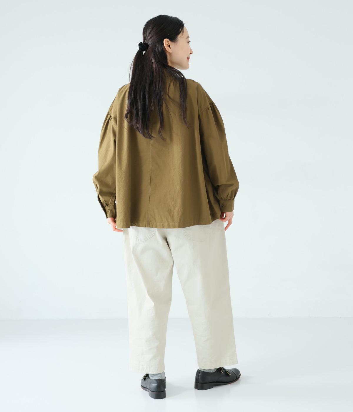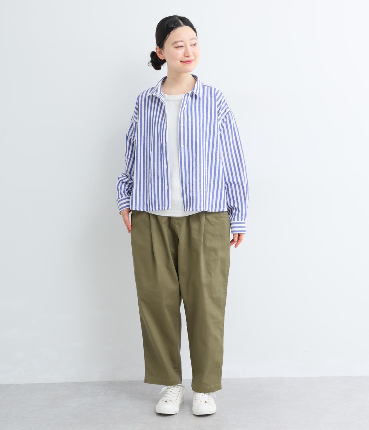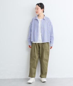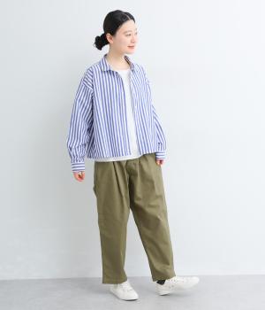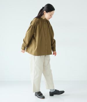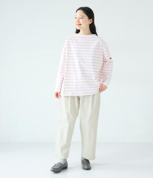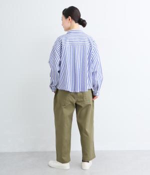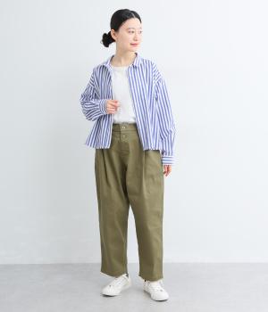 ナチュラルな風合いのコットンにポリウレタンをミックスし、わずかな伸縮性を持たせました。ほどよい厚みでハリがあり、穿くほどになじむ素材感です。