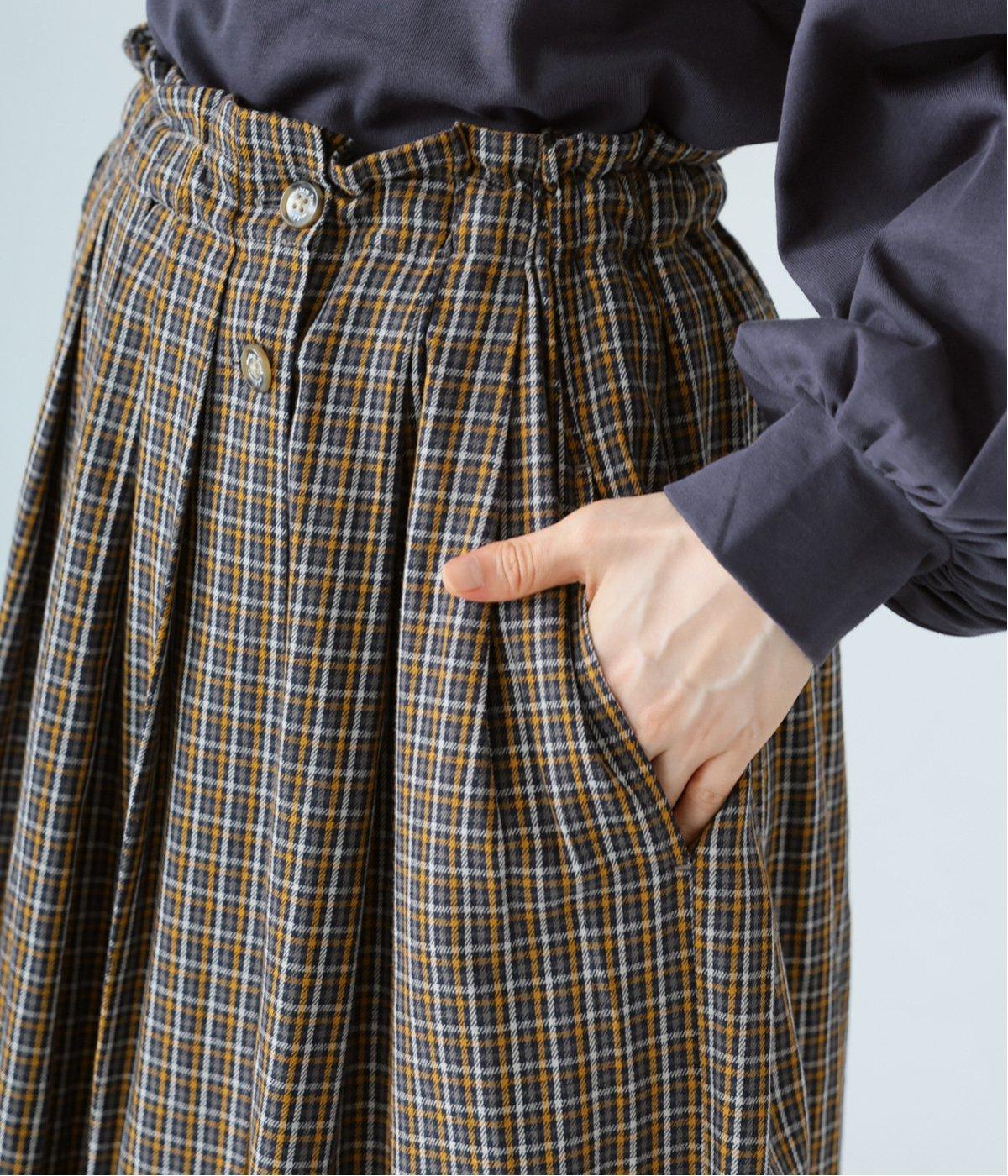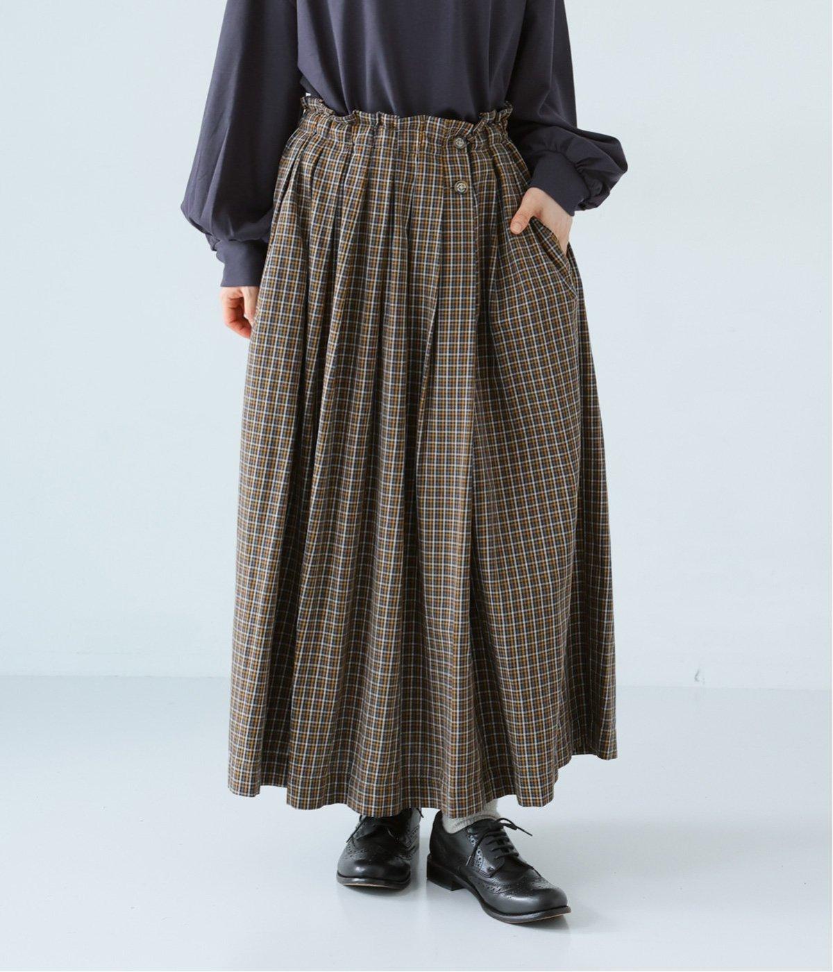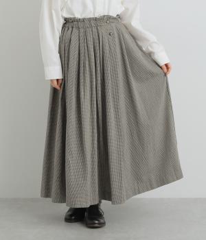 プリーツのように見えるタックを施したラップ風デザインのスカート。ウエストまわりはすっきりとさせつつ、動きのあるボリュームシルエットが存在感を放ちます。落ち着いた上品な着こなしに導くクラシカルな柄も◎。ウエストにはゴムと内紐を通し、イージーな着用感にもこだわりました。