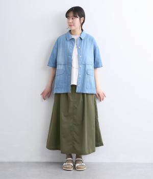 コットンデニム サイドフレアロングスカート