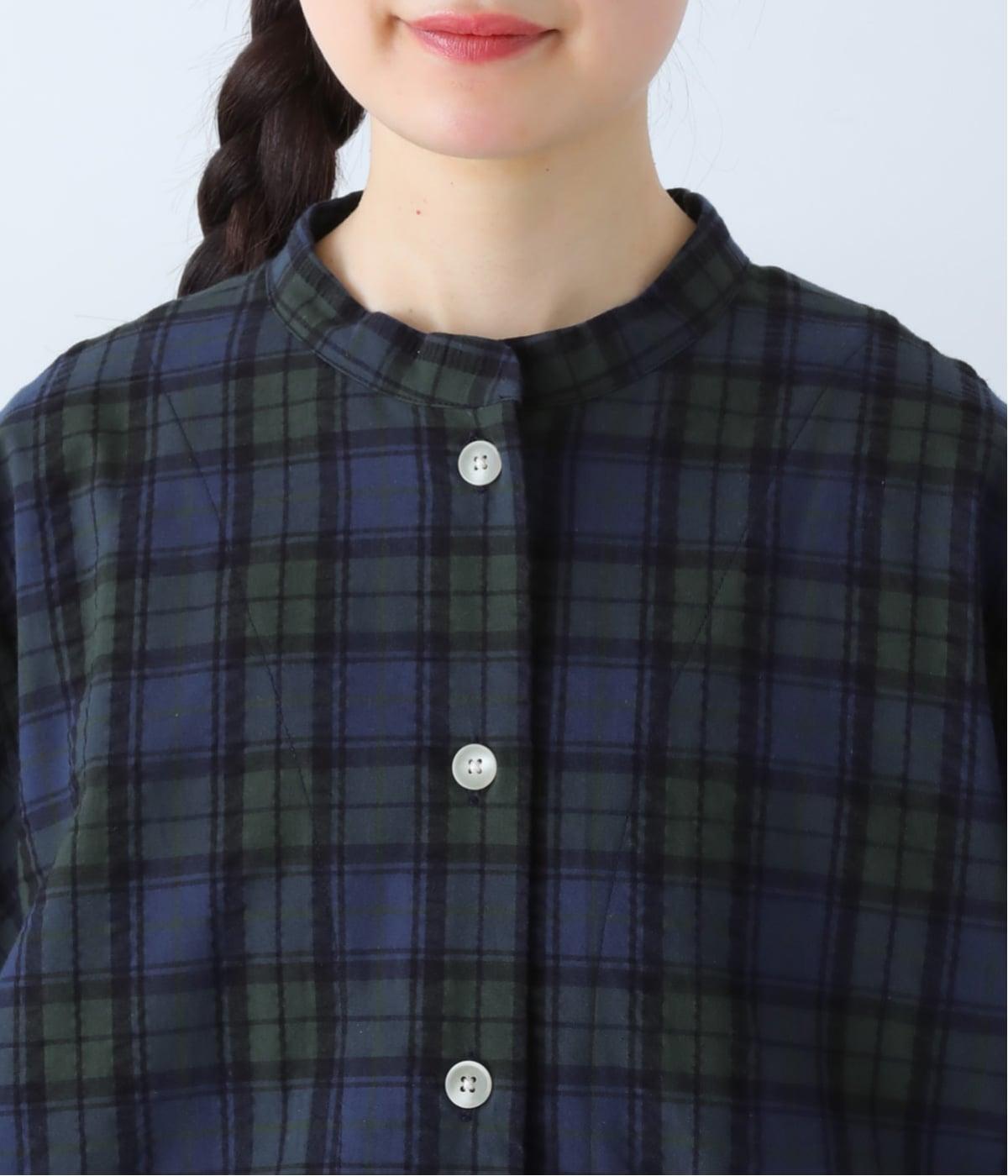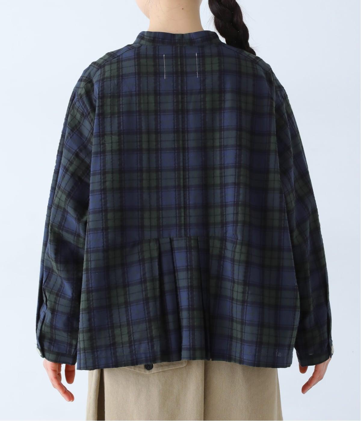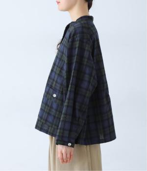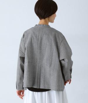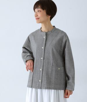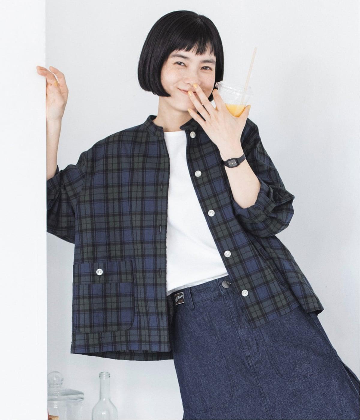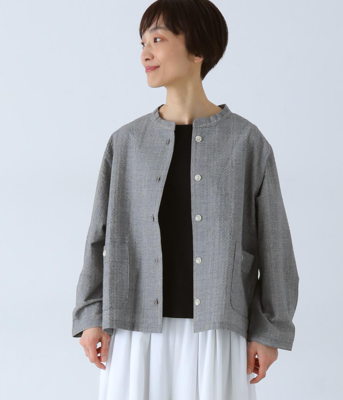 軽やかに羽織れるシャツジャケットは、ほどよいトラッドな雰囲気が魅力です。バンドカラーのデザインが、すっきりと落ち着いた印象に。後ろ身頃の裾上に入れたダーツとタックが、丸みのあるシルエットをつくり、抜け感のある着こなしを叶えます。