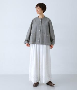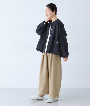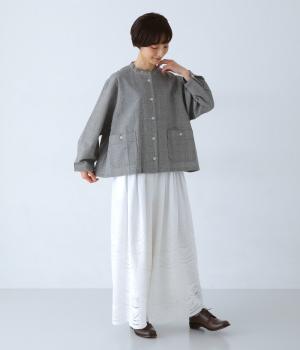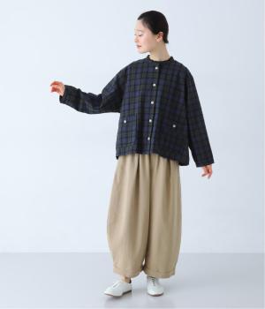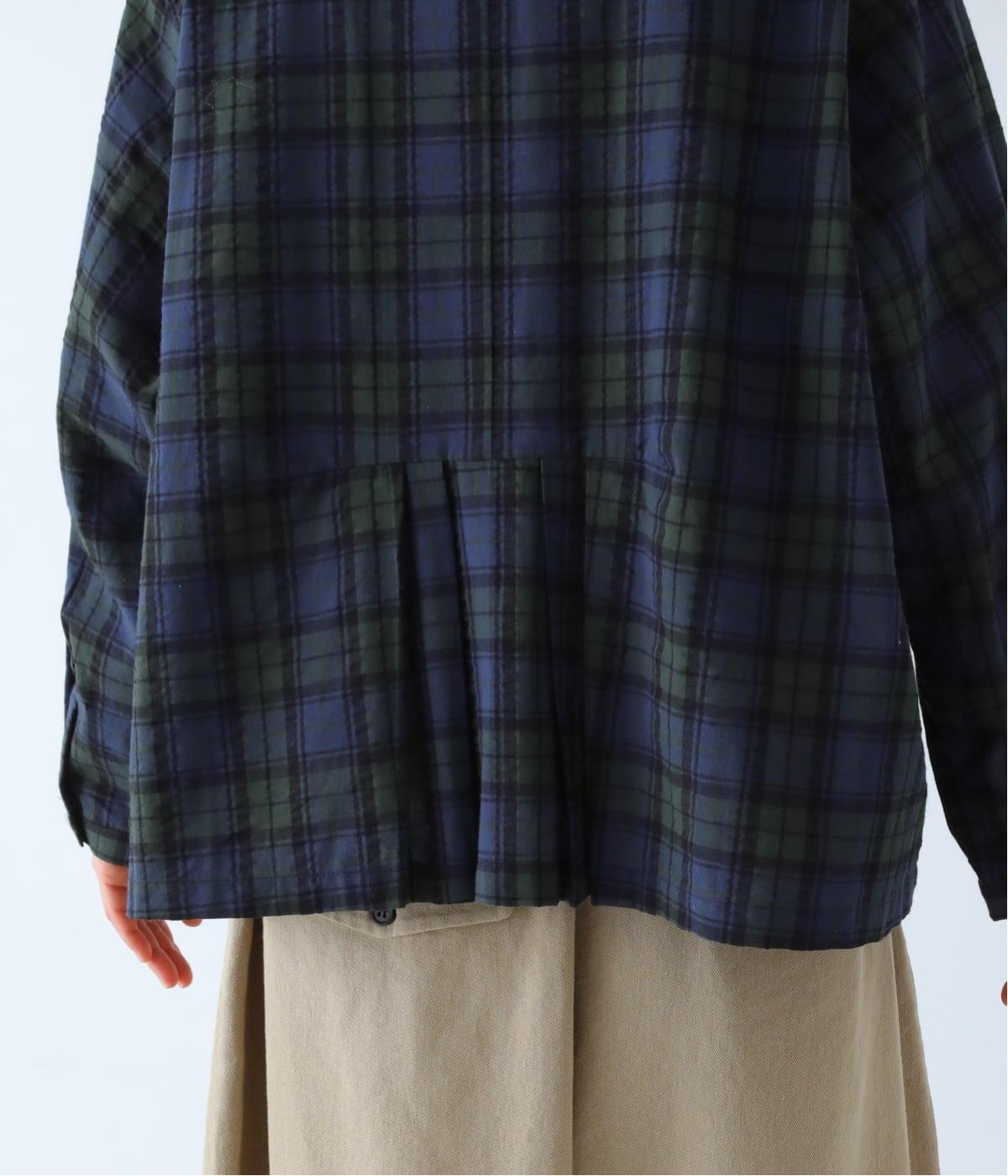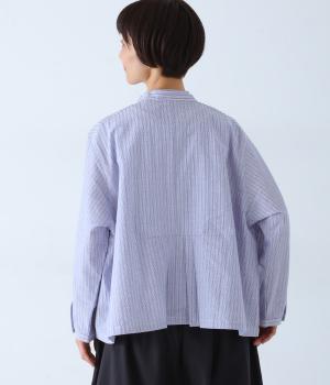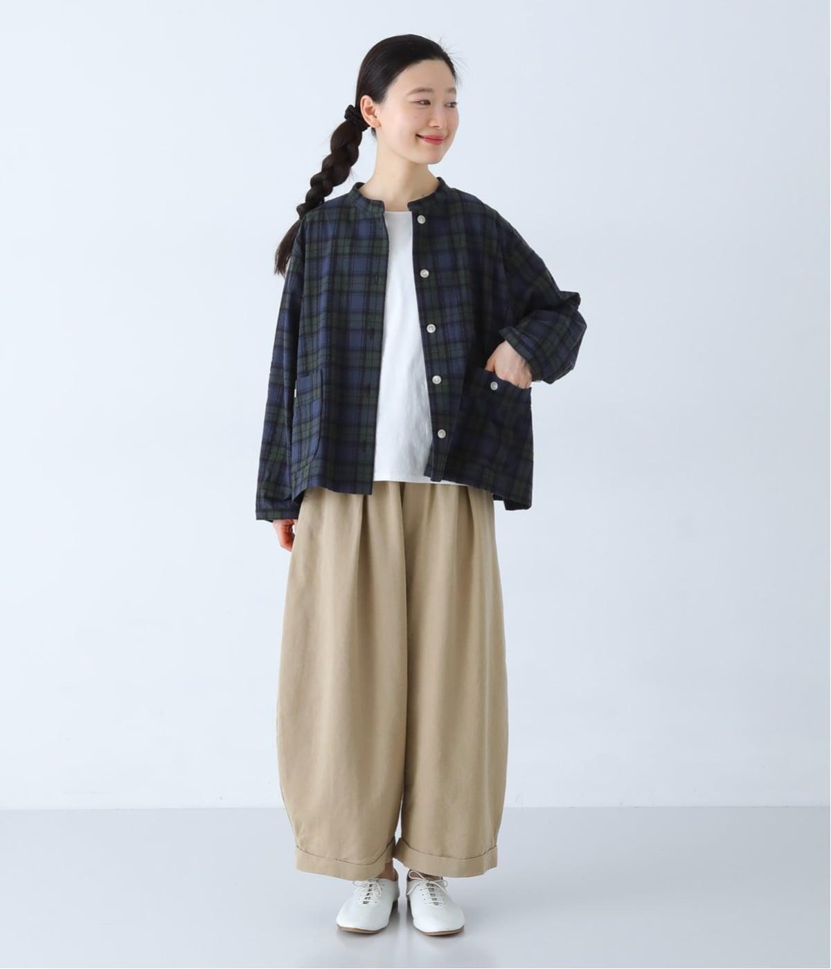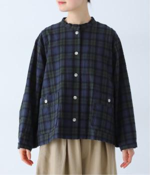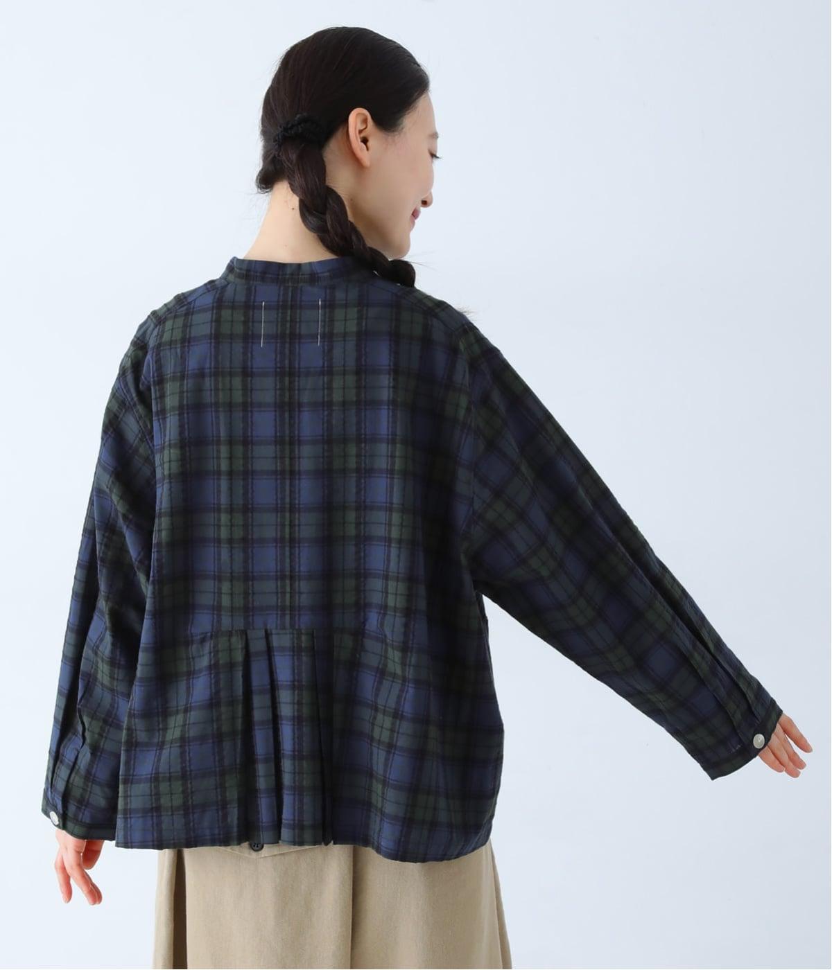 軽やかに羽織れるシャツジャケットは、ほどよいトラッドな雰囲気が魅力です。バンドカラーのデザインが、すっきりと落ち着いた印象に。後ろ身頃の裾上に入れたダーツとタックが、丸みのあるシルエットをつくり、抜け感のある着こなしを叶えます。