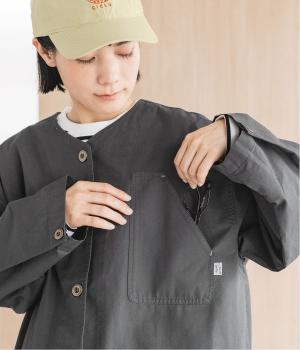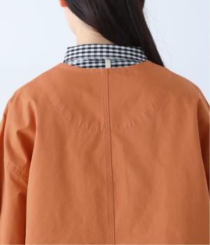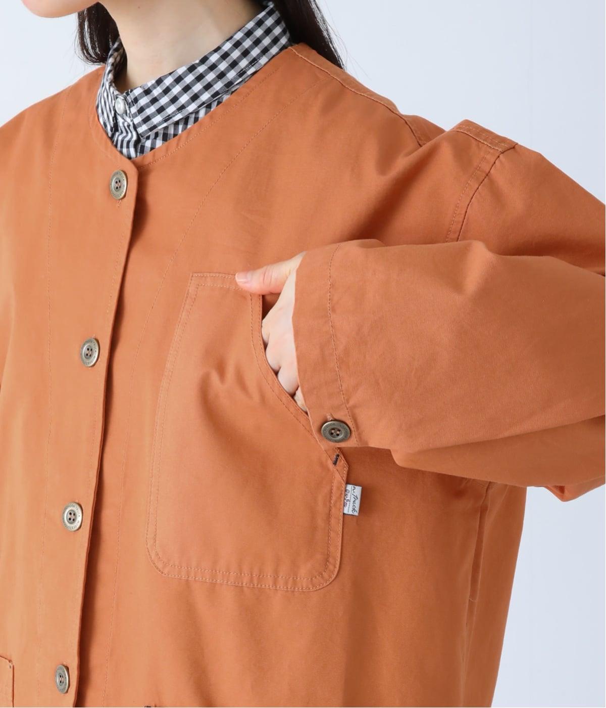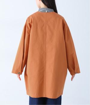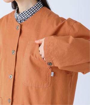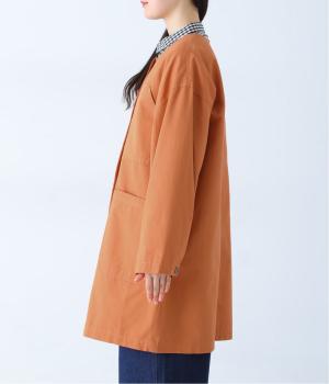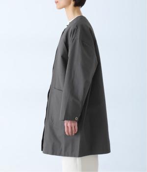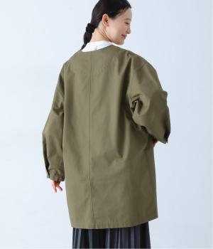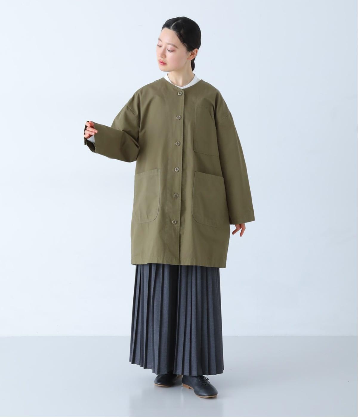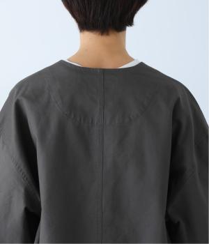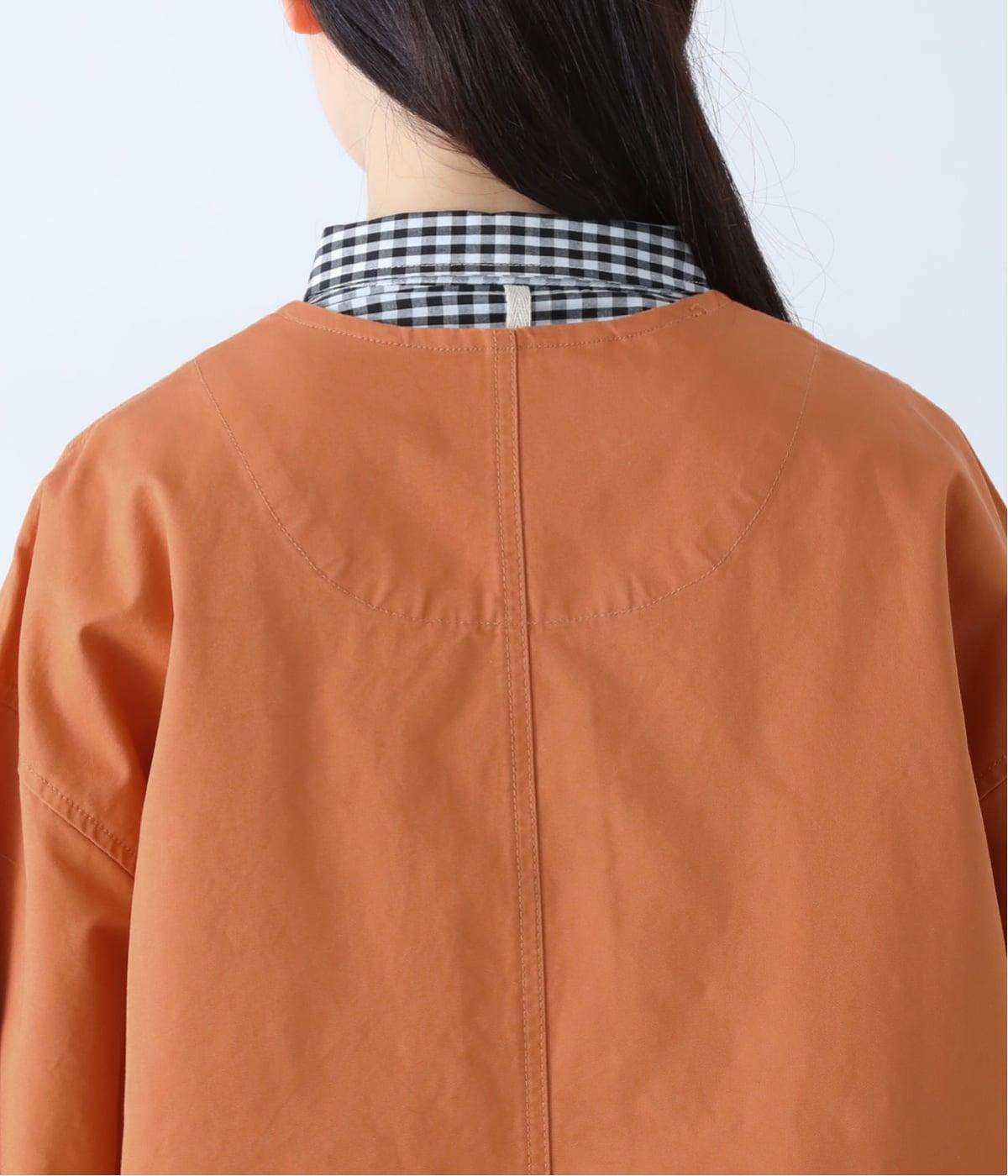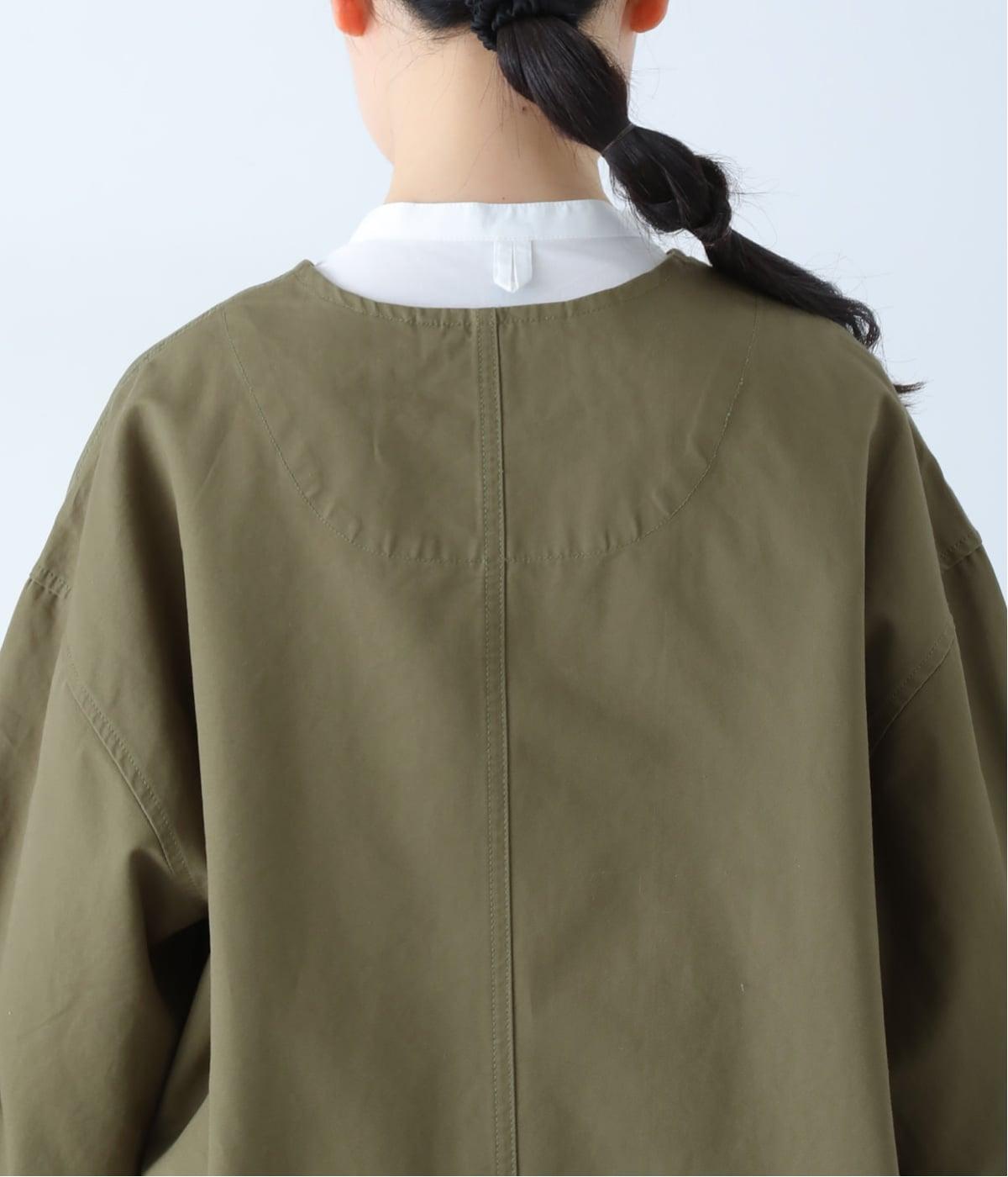 顔まわりをすっきりと見せてくれるノーカラーデザインに、メタルボタンがワーク感とメリハリをプラス。