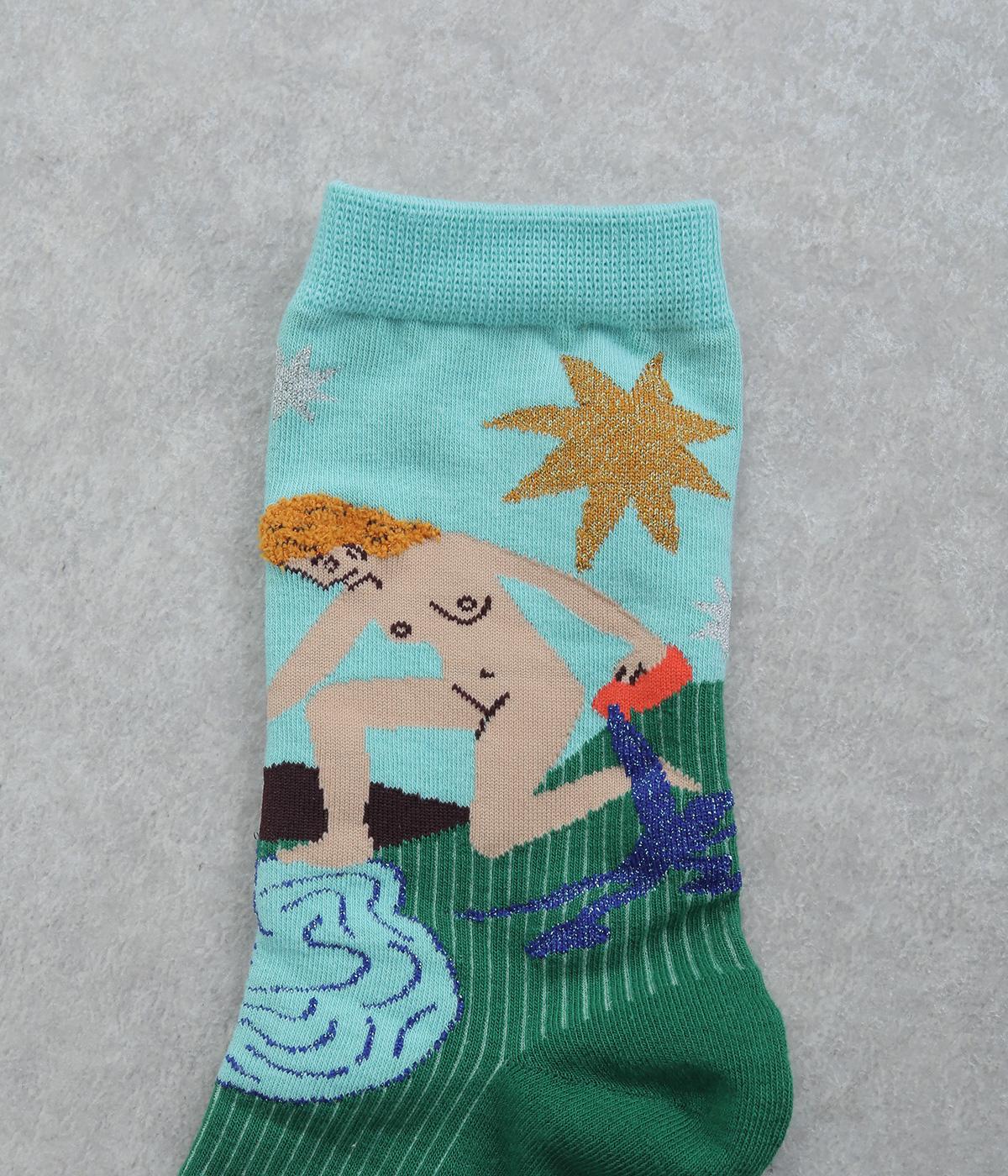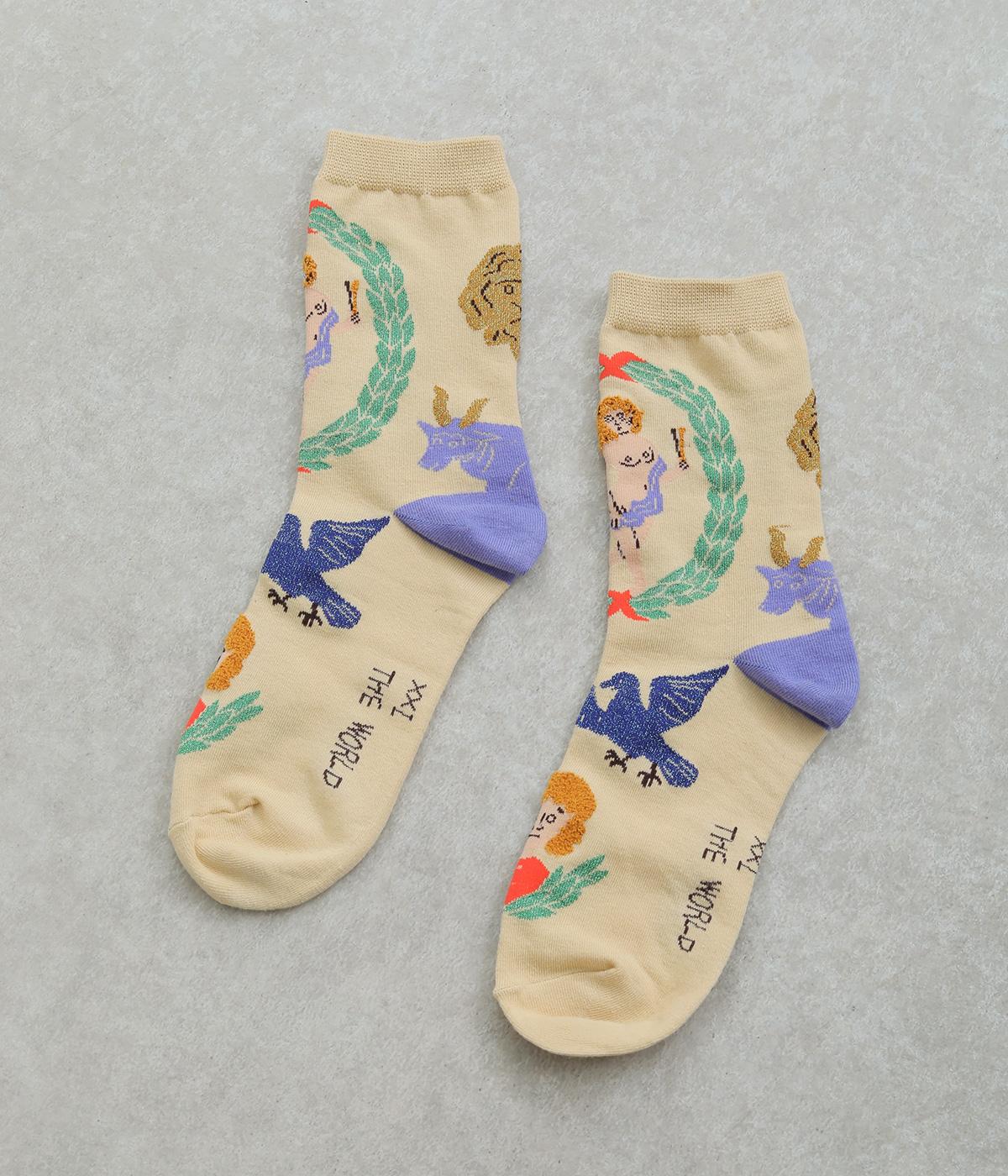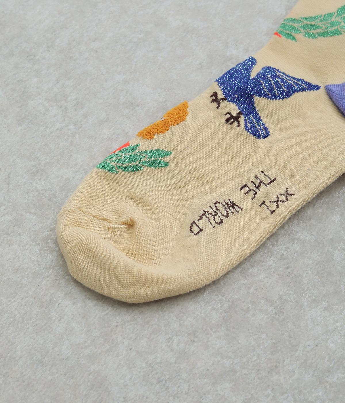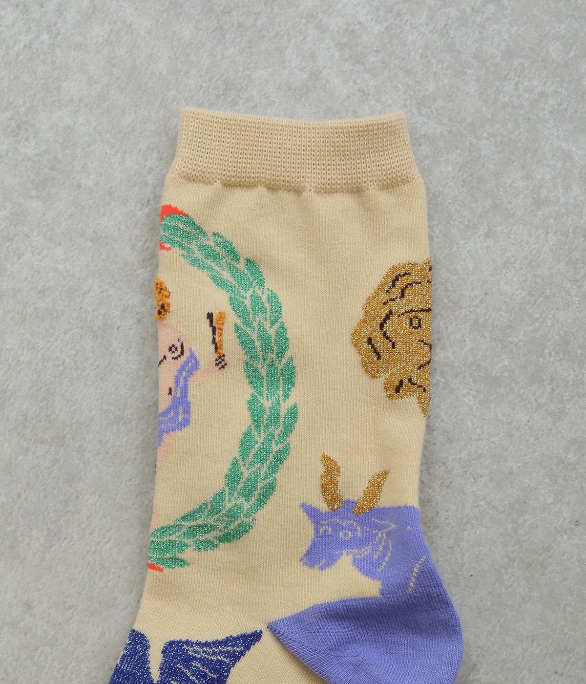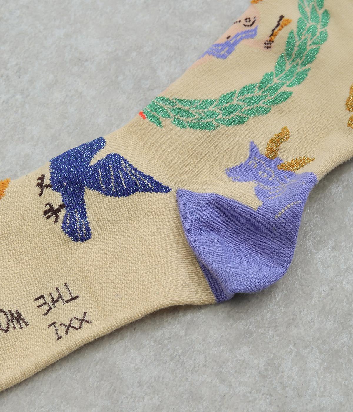 人気のタロットカード「STAR(星)」と「WORLD(世界)」をデザインしたクルーソックス2足セット。多色使いに加え、ラメ糸やシャギー糸など個性豊かな素材を組み合わせ、優しいパステル調で仕上げた華やかなデザインです。