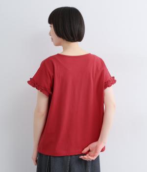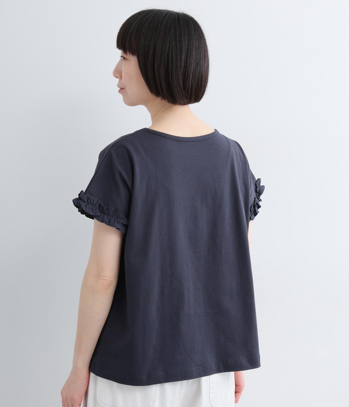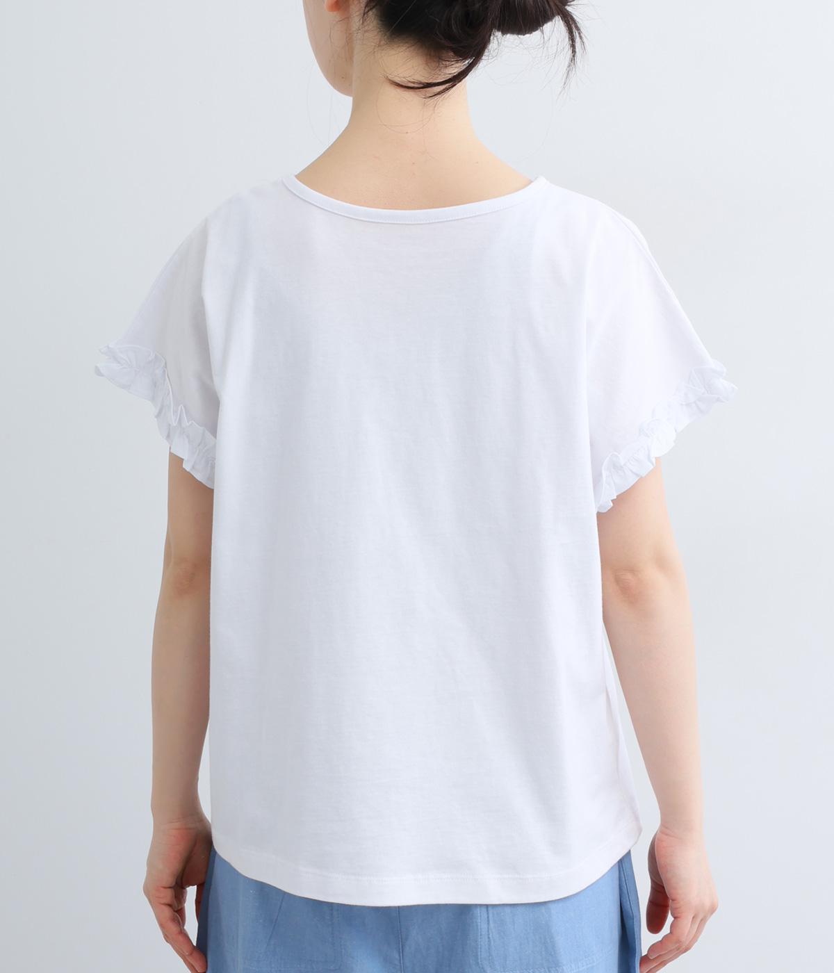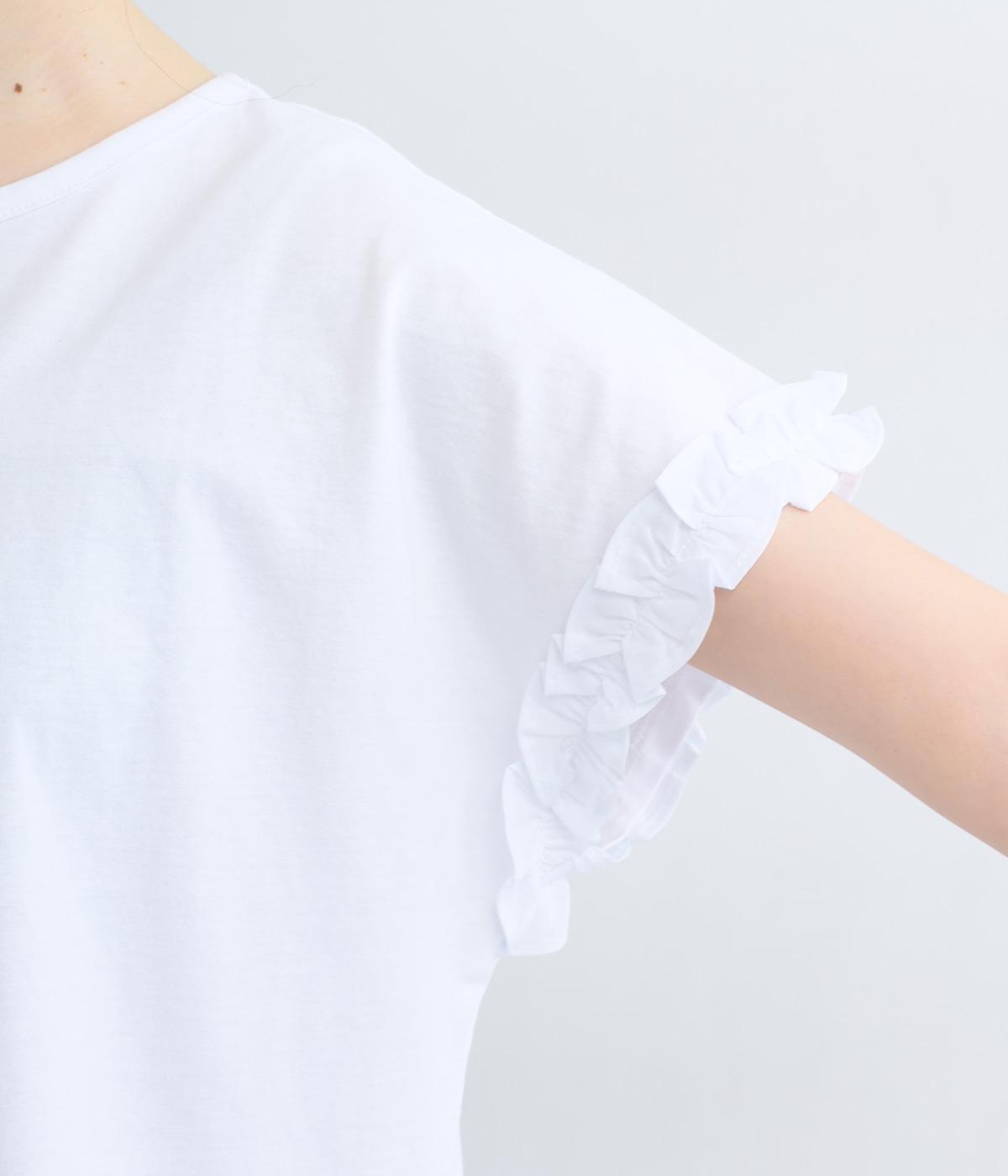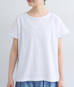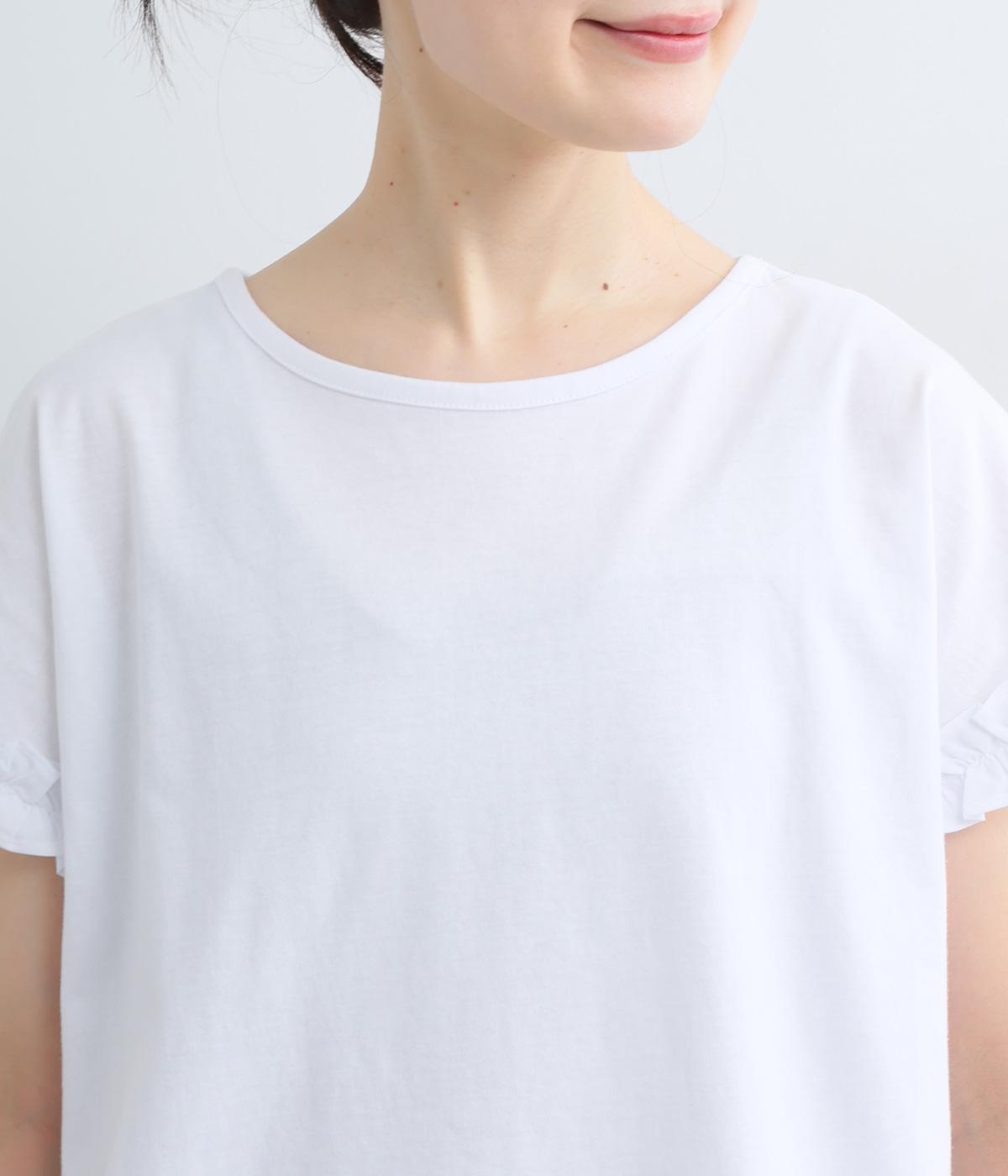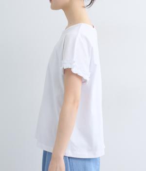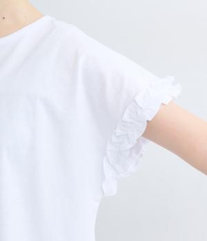 シンプルなボックス型プルオーバーに袖フリルをあしらってワンポイント設けました。フレンチスリーブのようなシルエットがフェミンンさを醸し、Tシャツよりカジュアル感をおさえた着こなしがたのしめます。