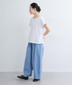 肌あたりが良くやわらかなコットン天竺で着心地よく仕立てました。やや薄手なのでレイヤードしやすく、着こなしによってロングシーズン着まわせます。