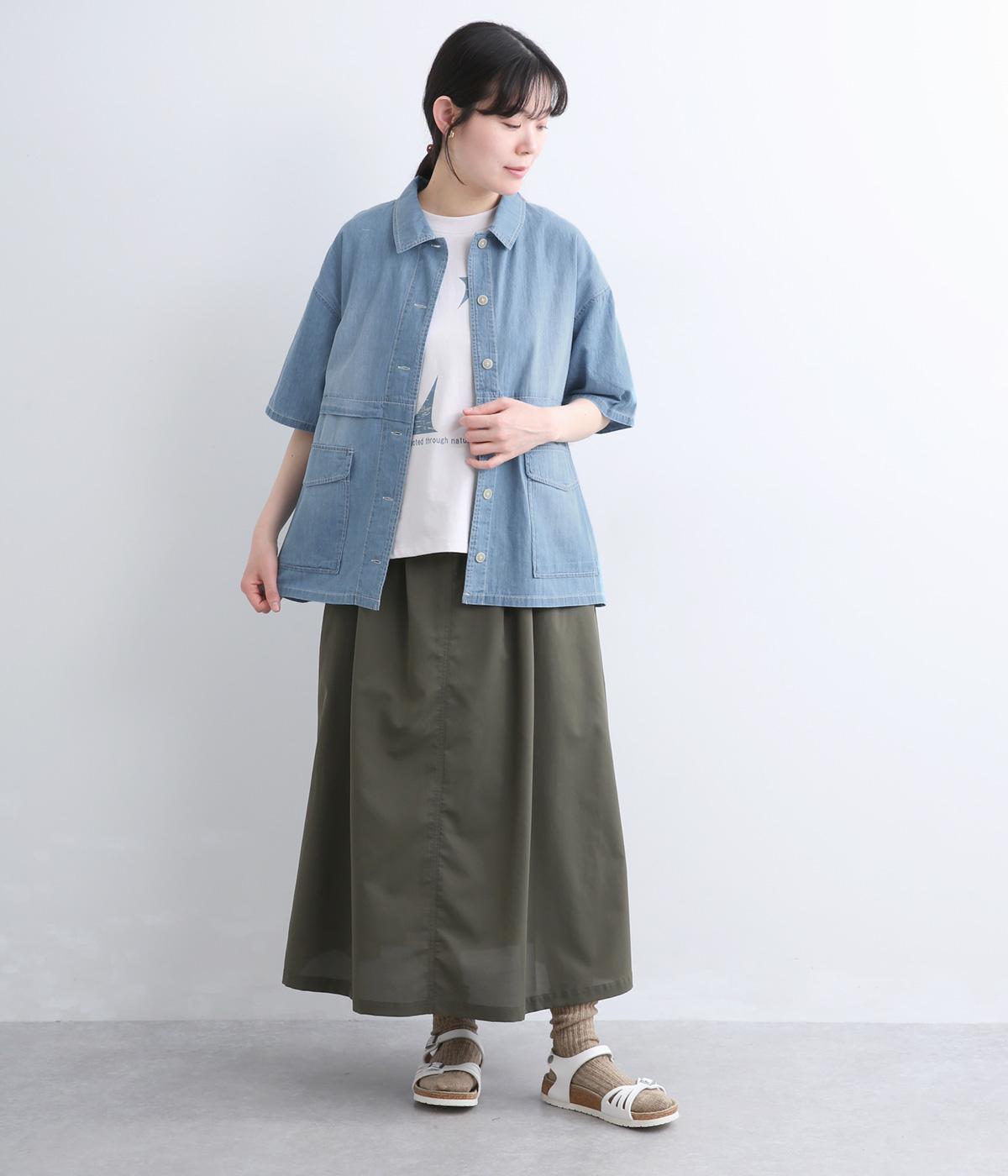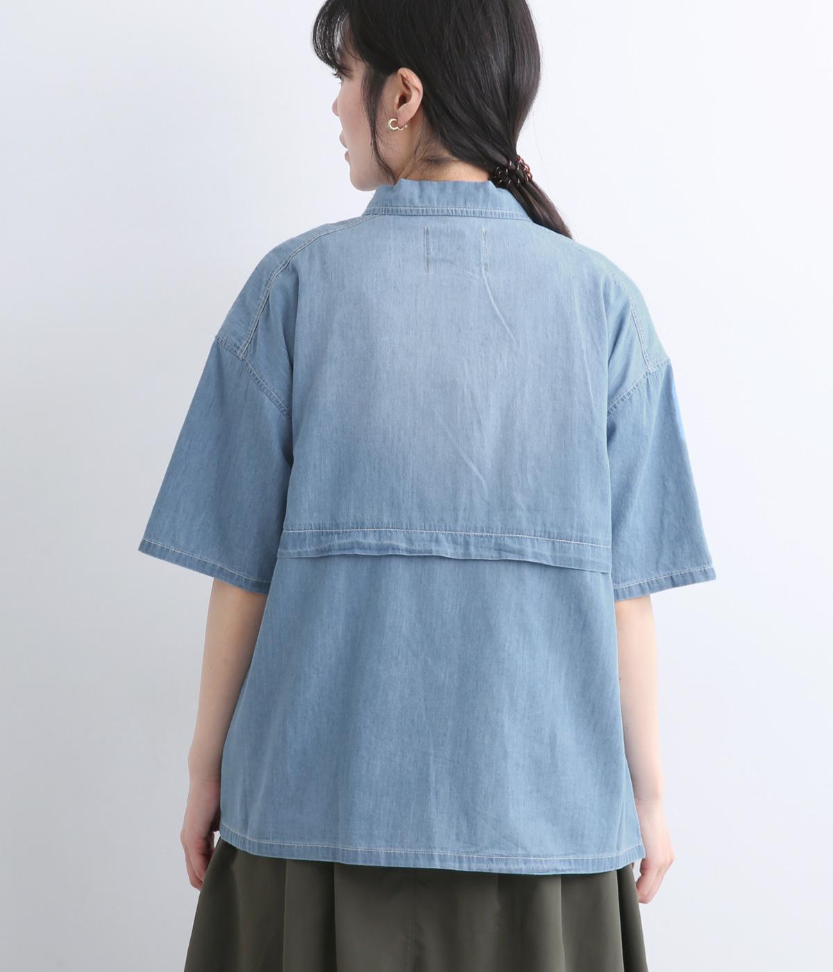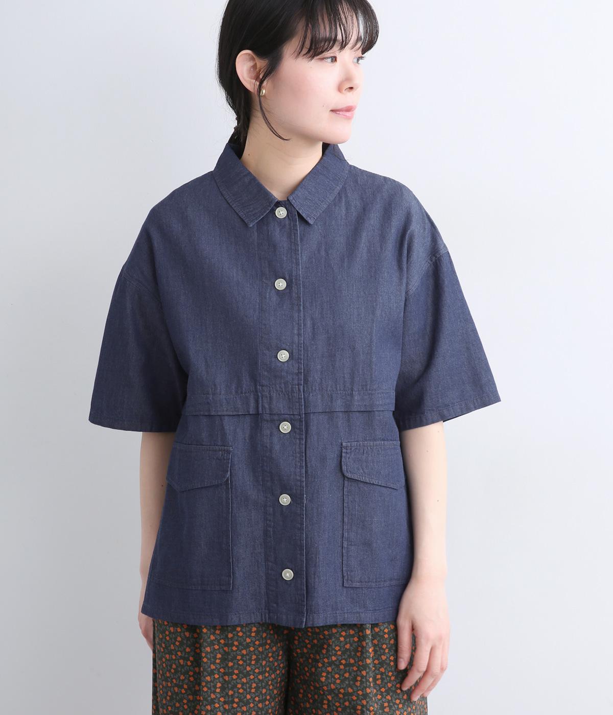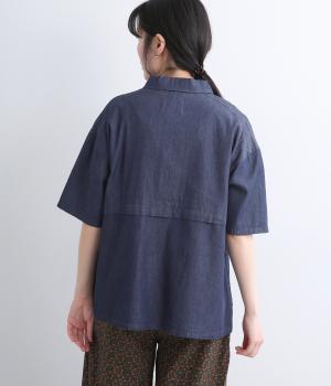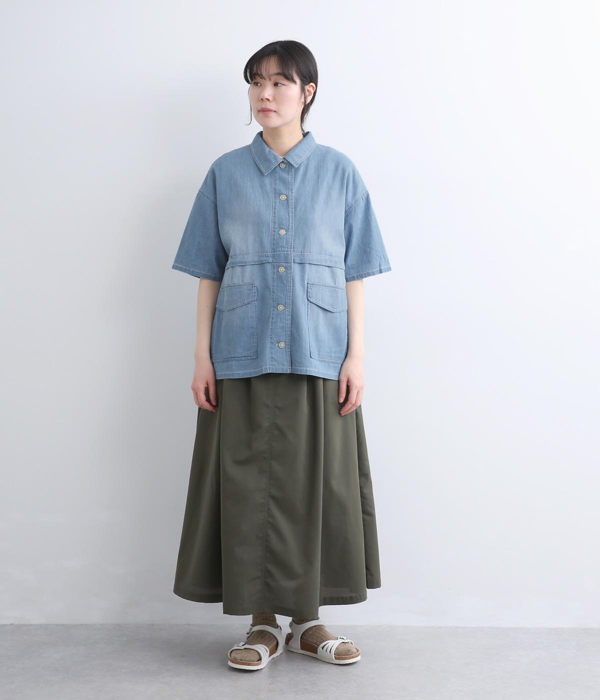 3.25ozデニム ウエスト切替ギャザーブラウス