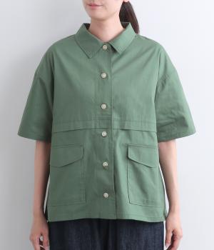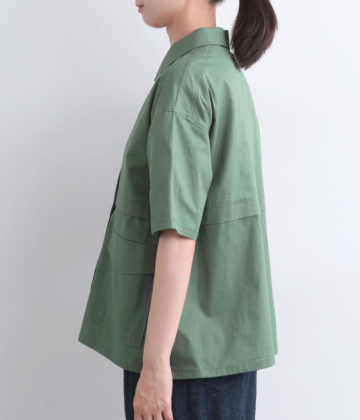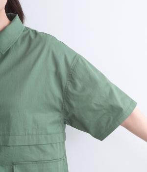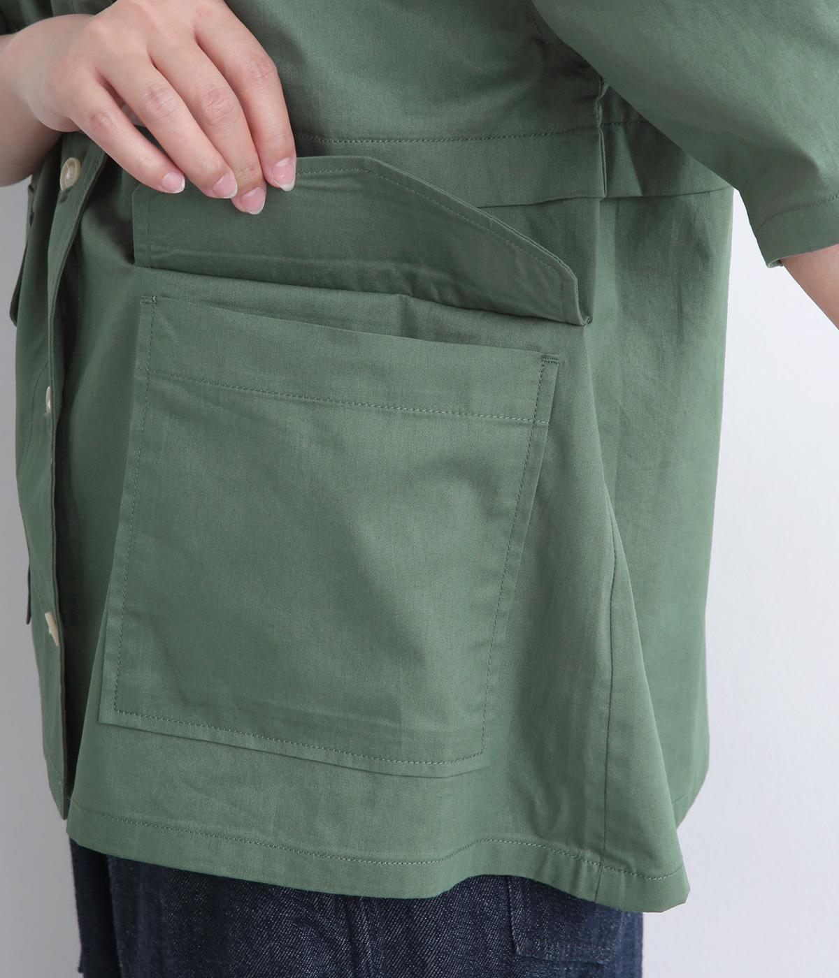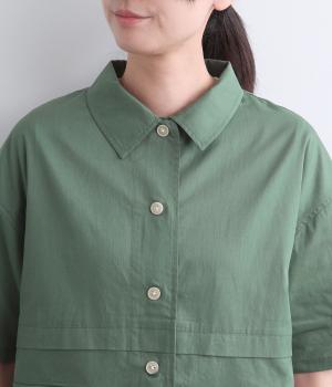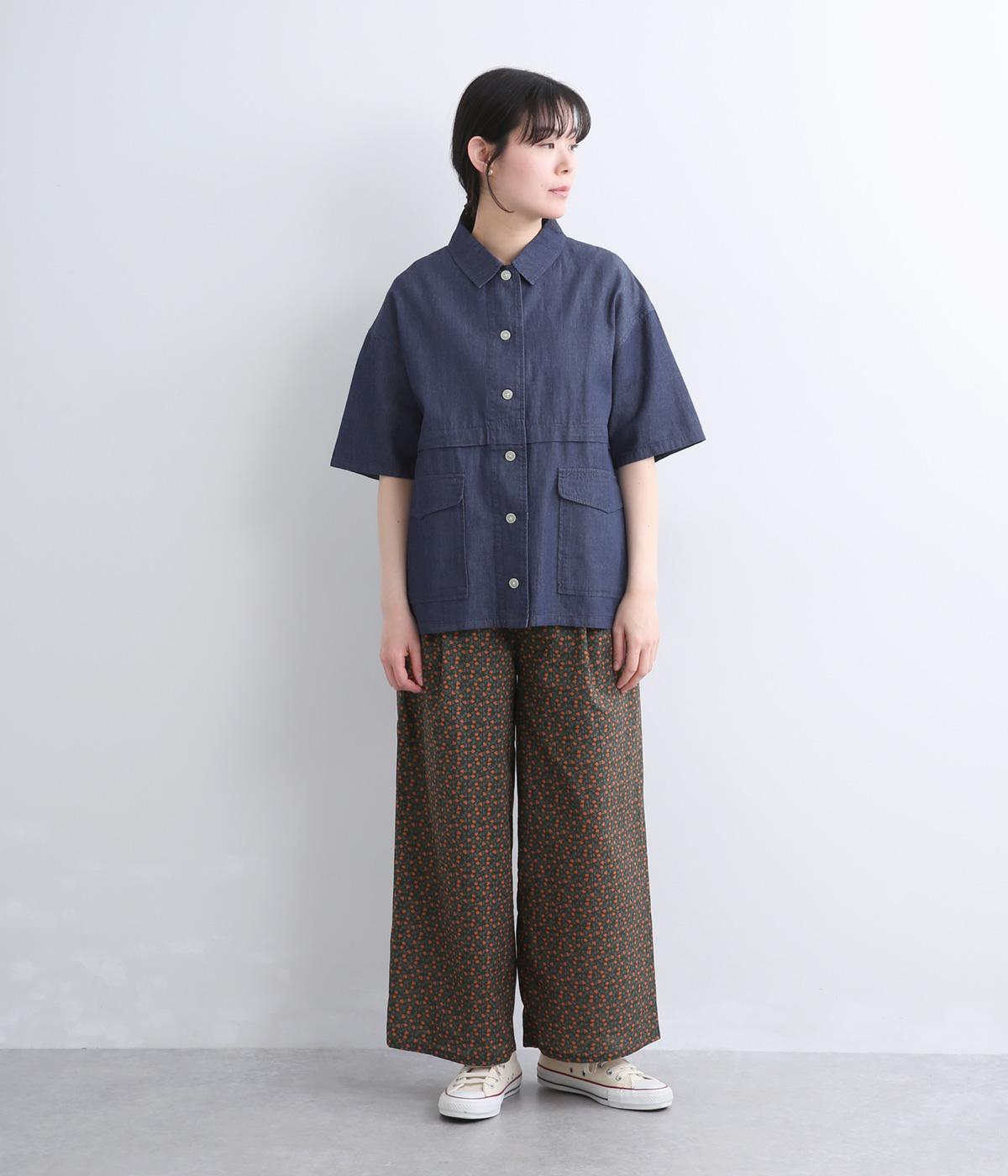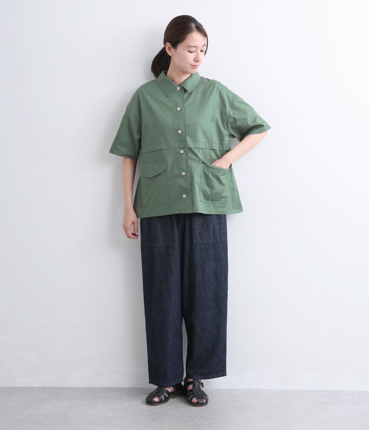 3.25ozデニム ウエスト切替ギャザーブラウス