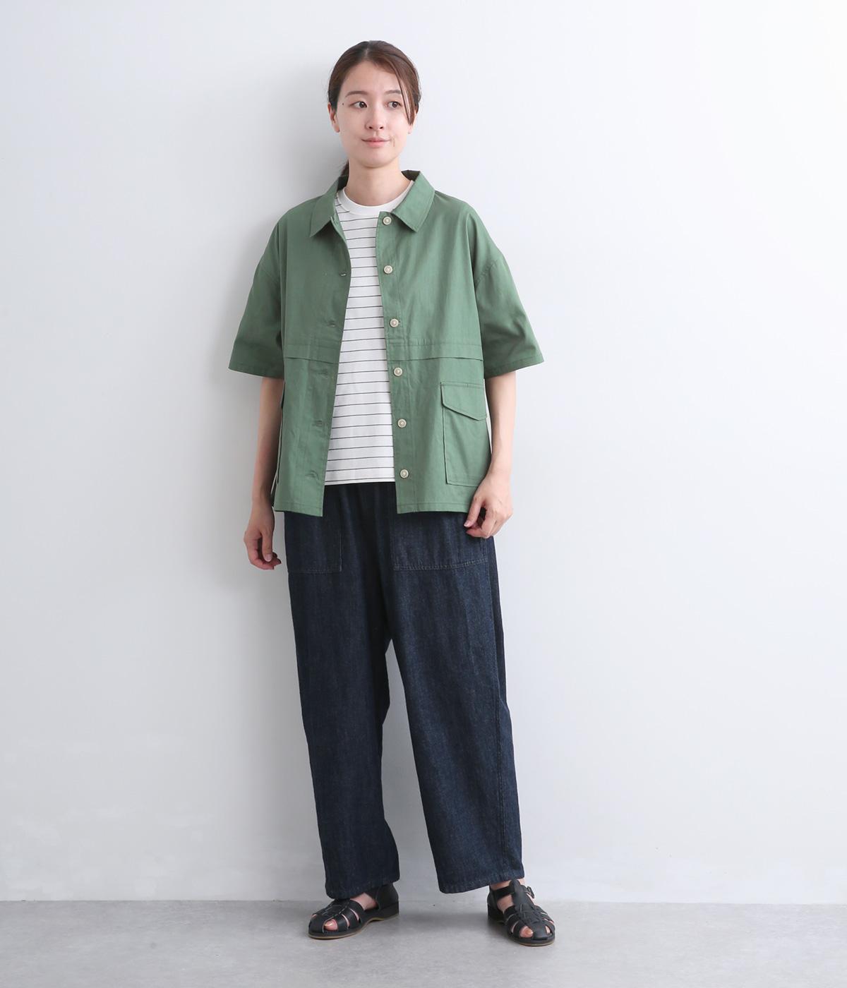 2.2OZデニムステッチ配色 ワイドスリーブブラウス