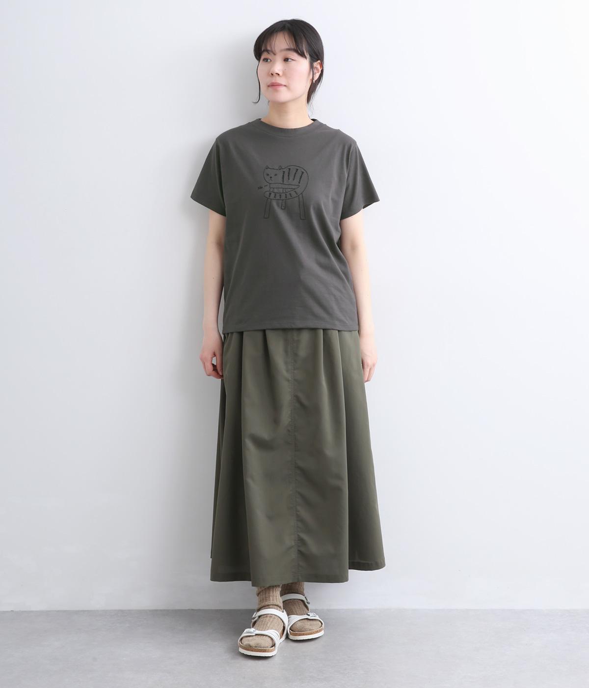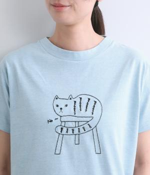 ねこプリントドルマンTシャツ