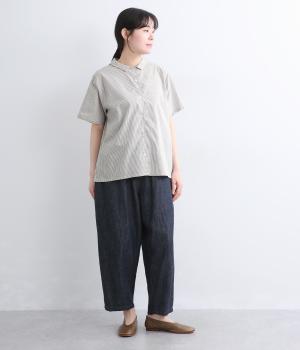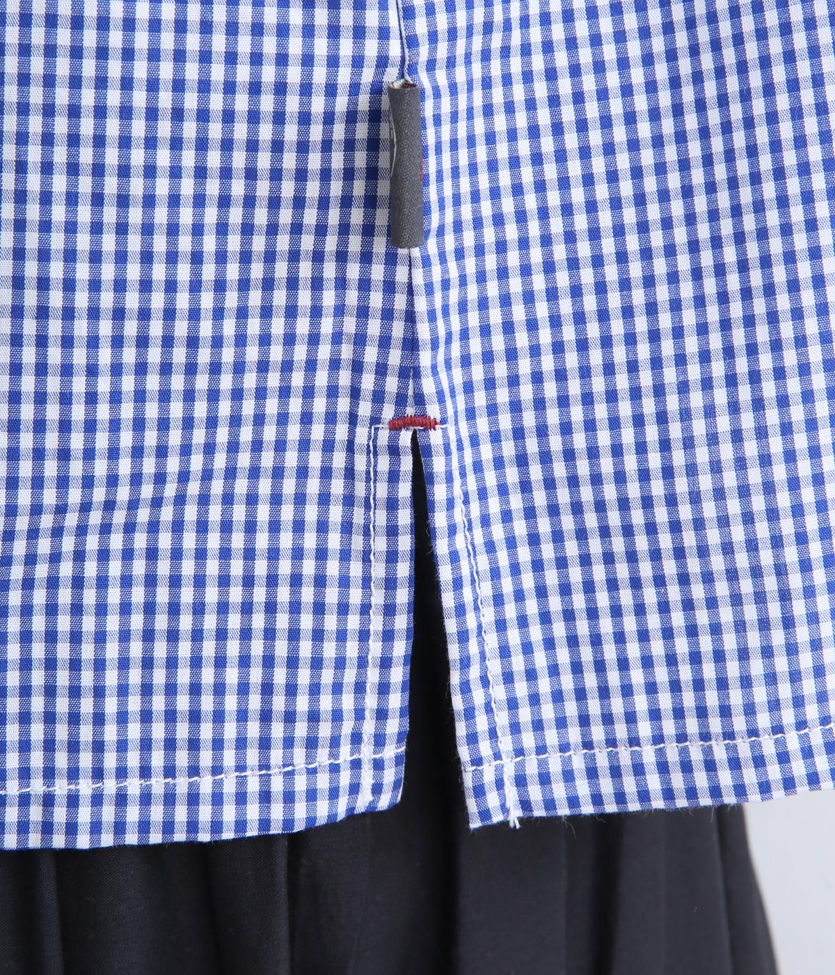 コットンスタンドカラーペプラムシャツ