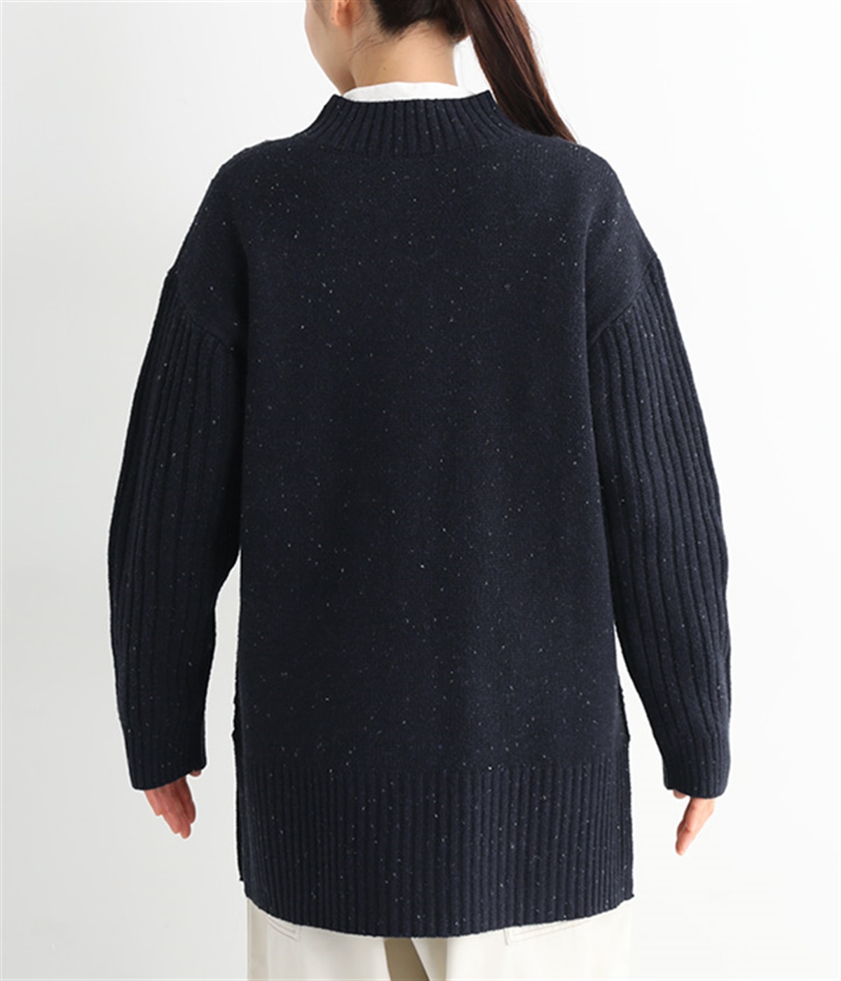 幅広の裾リブはシンプルなバックスタイルのポイントに