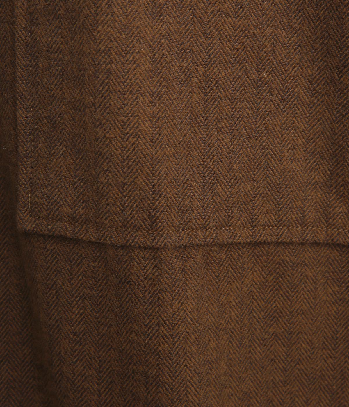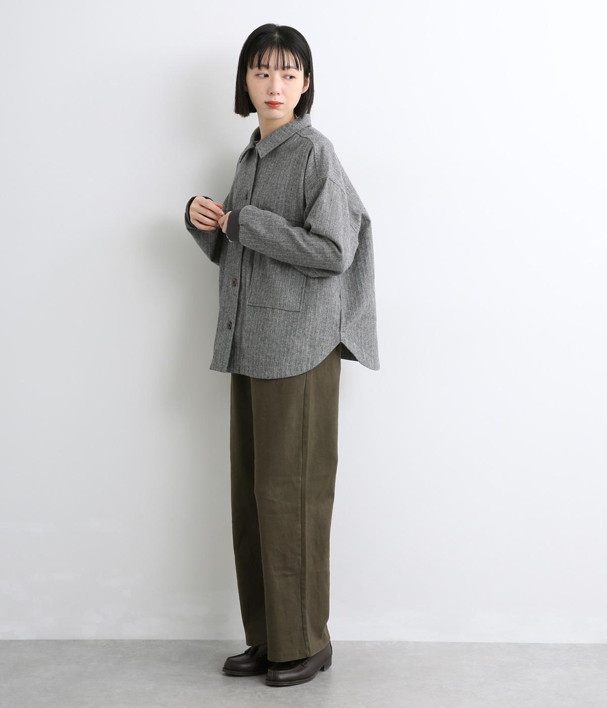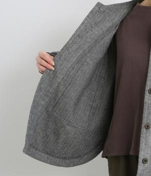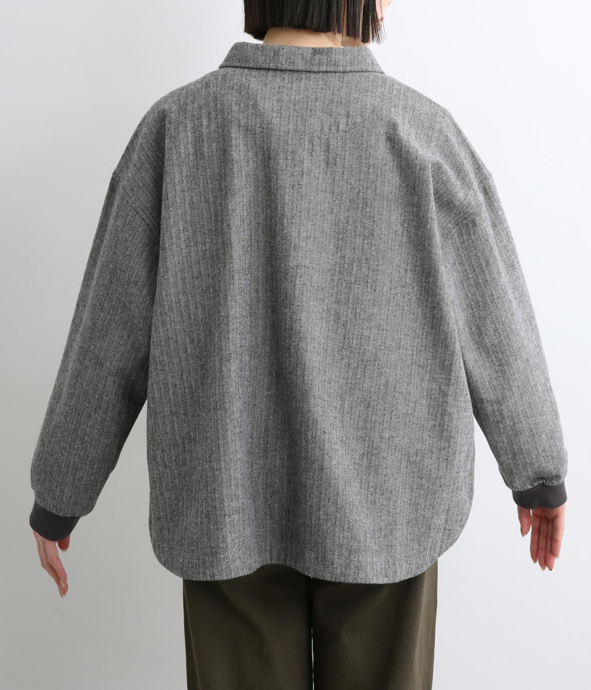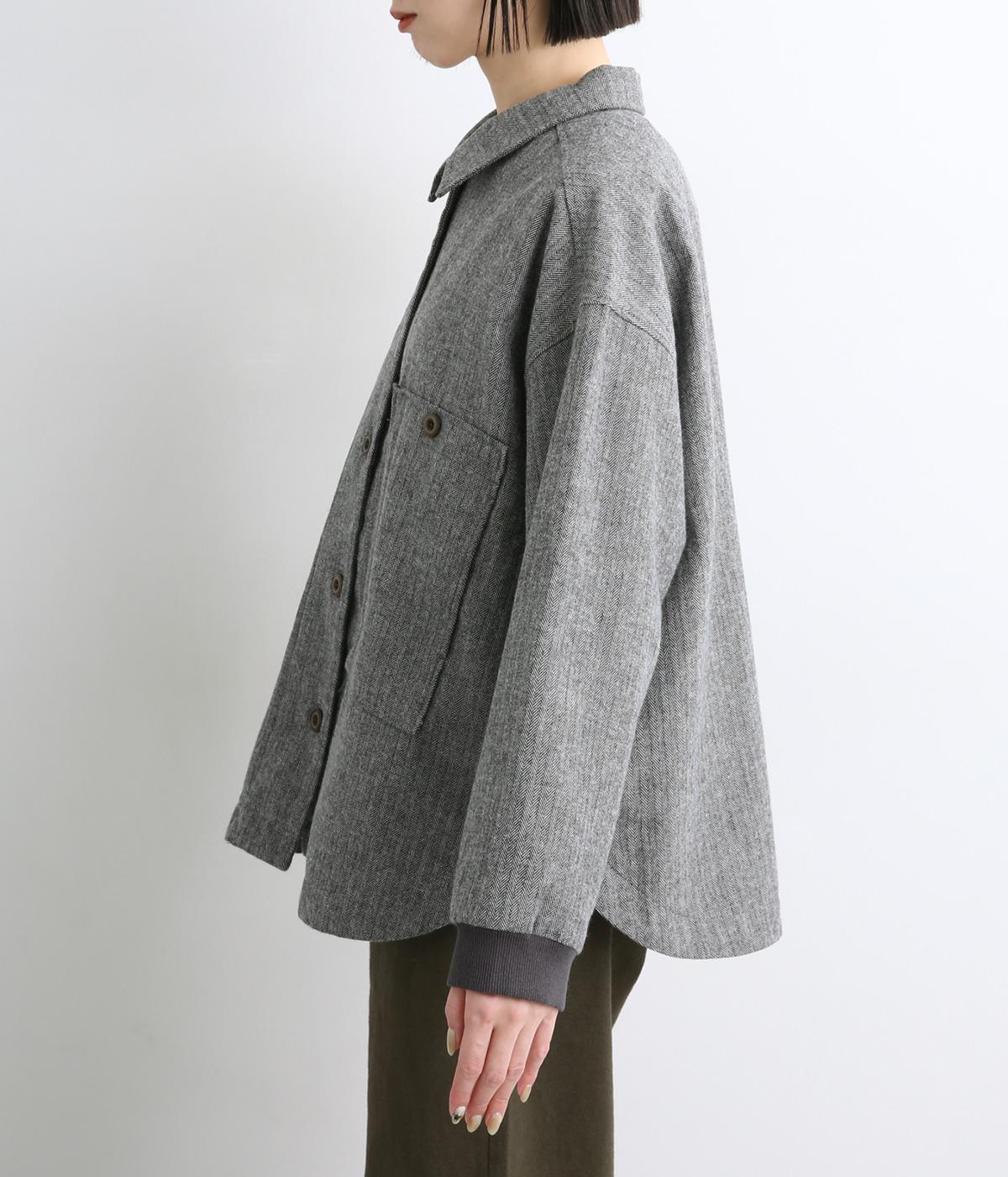ワークテイストを、品のあるヘリンボン柄で大人カジュアルに仕上げました。前面に配した大きなポケットがデザインポイントです。ふんわりとしたシルエットや、丸みのある裾のラインで女性らしさもプラスしました。