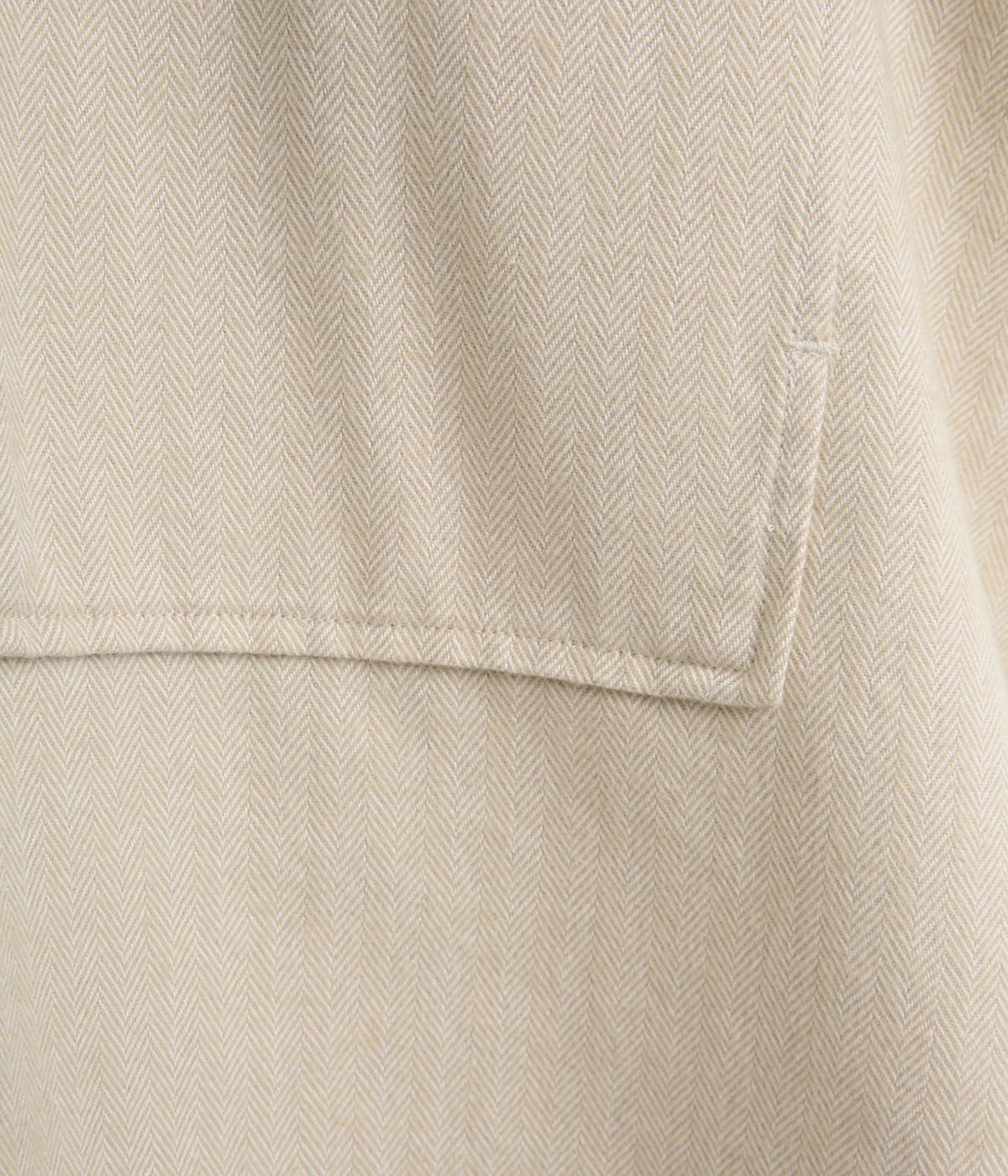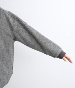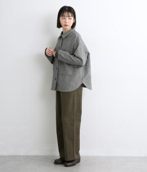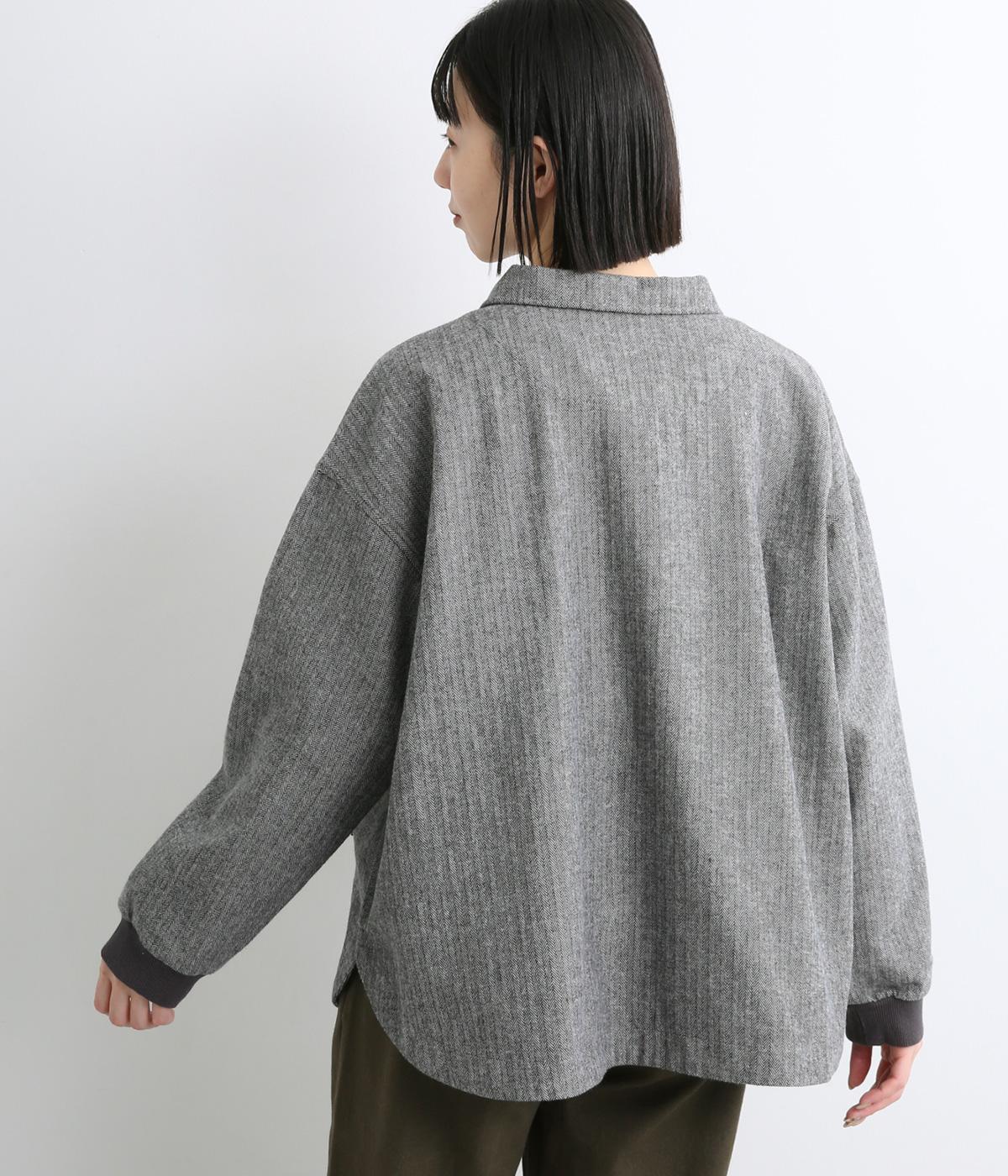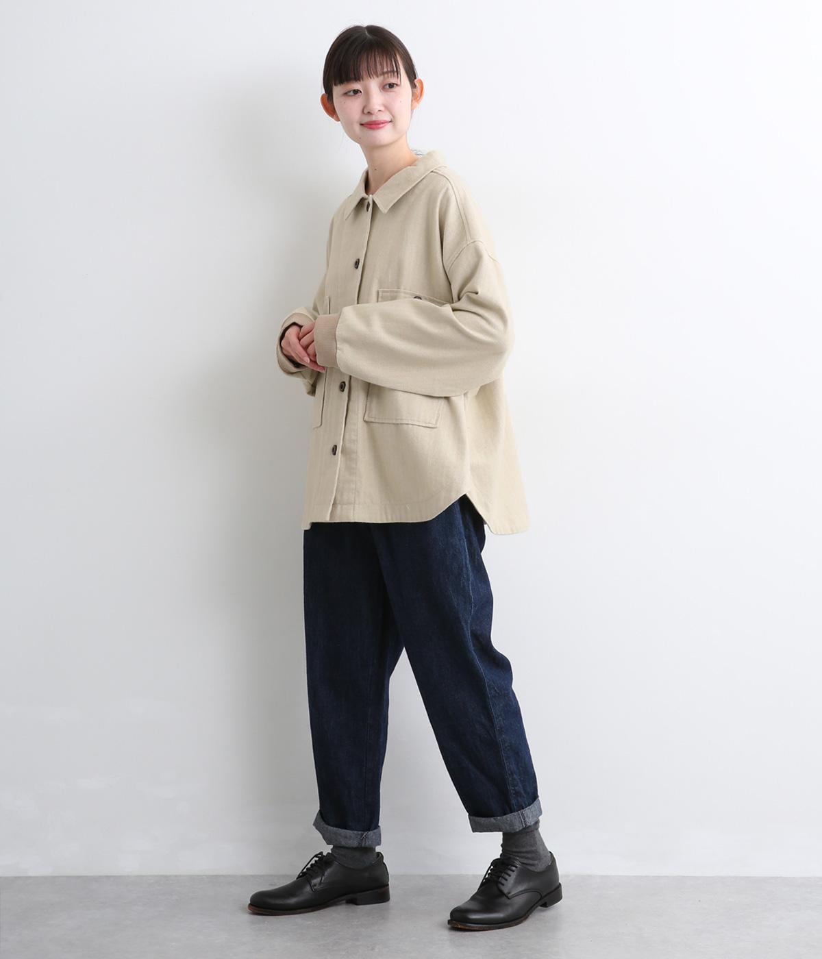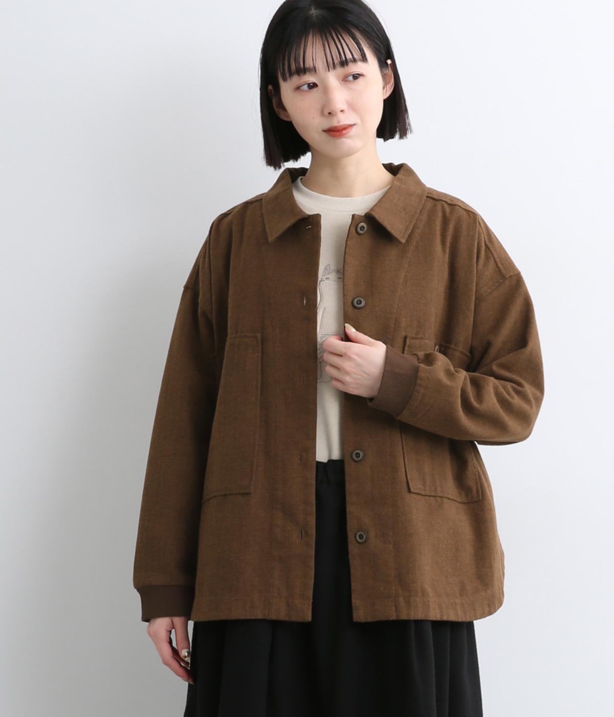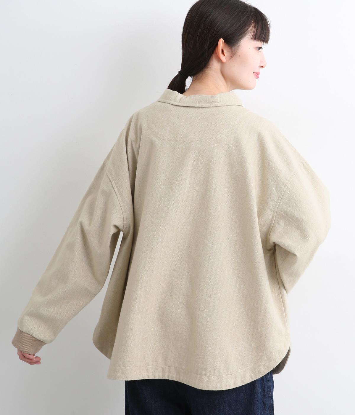 ワークテイストを、品のあるヘリンボン柄で大人カジュアルに仕上げました。前面に配した大きなポケットがデザインポイントです。ふんわりとしたシルエットや、丸みのある裾のラインで女性らしさもプラスしました。