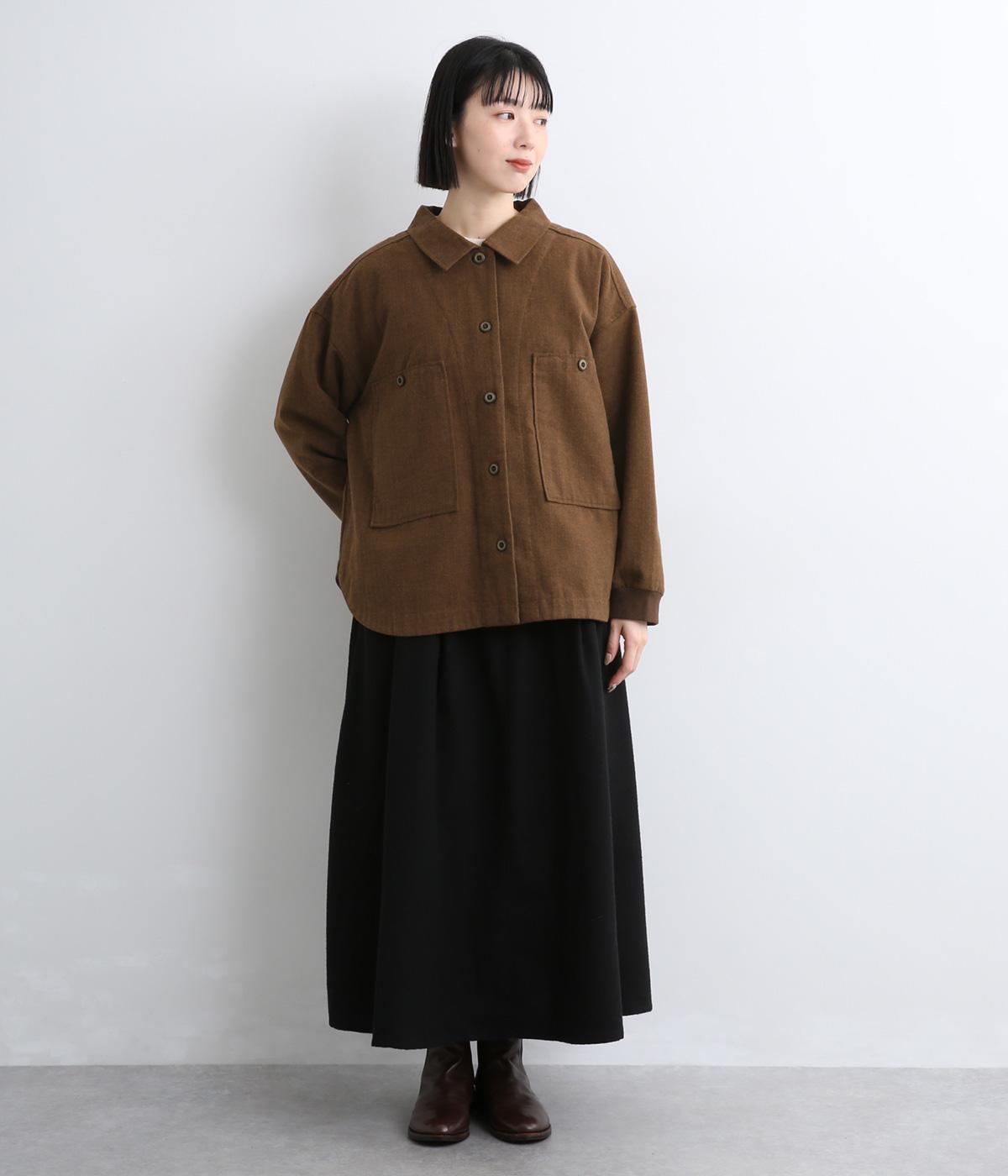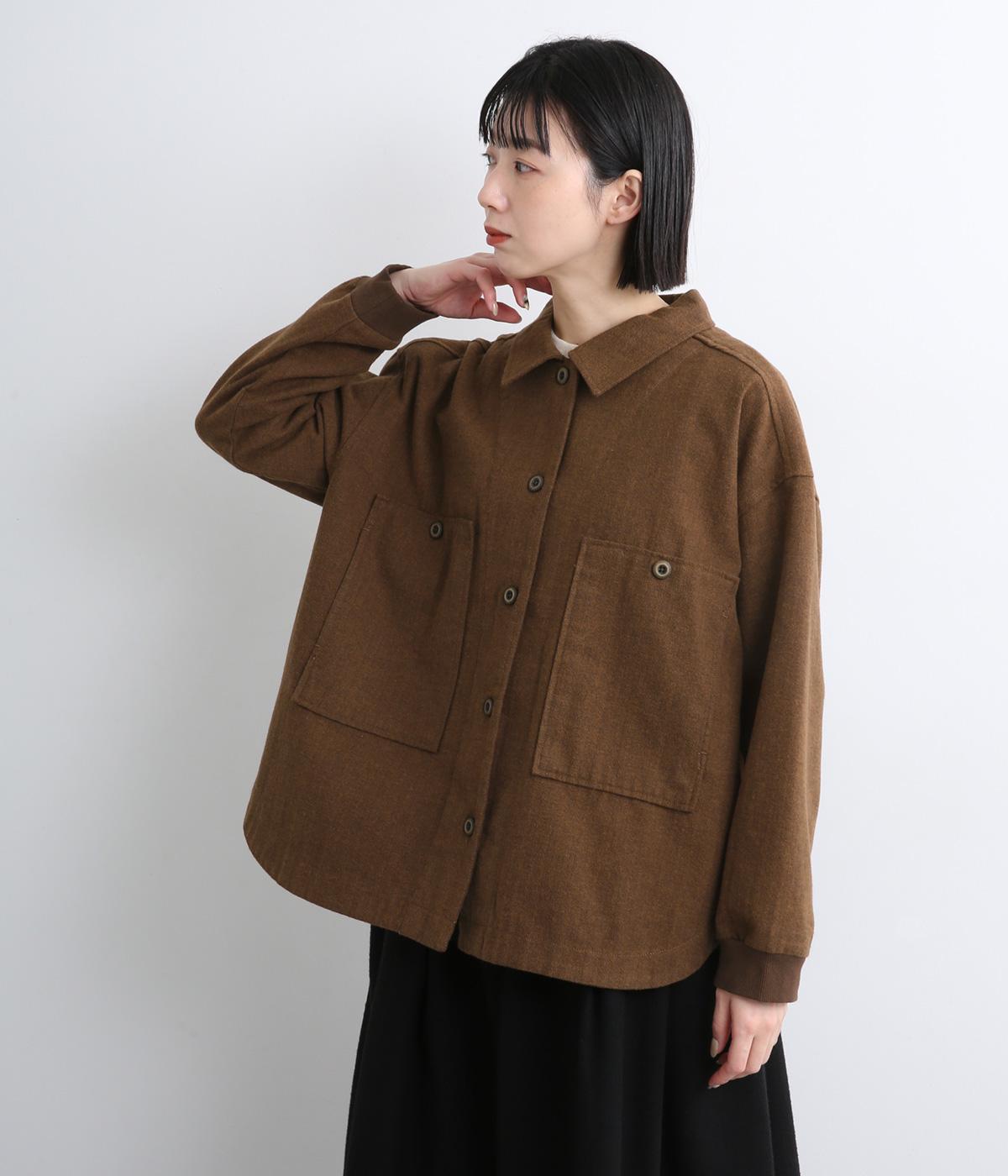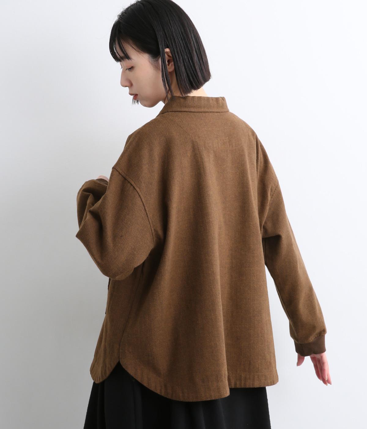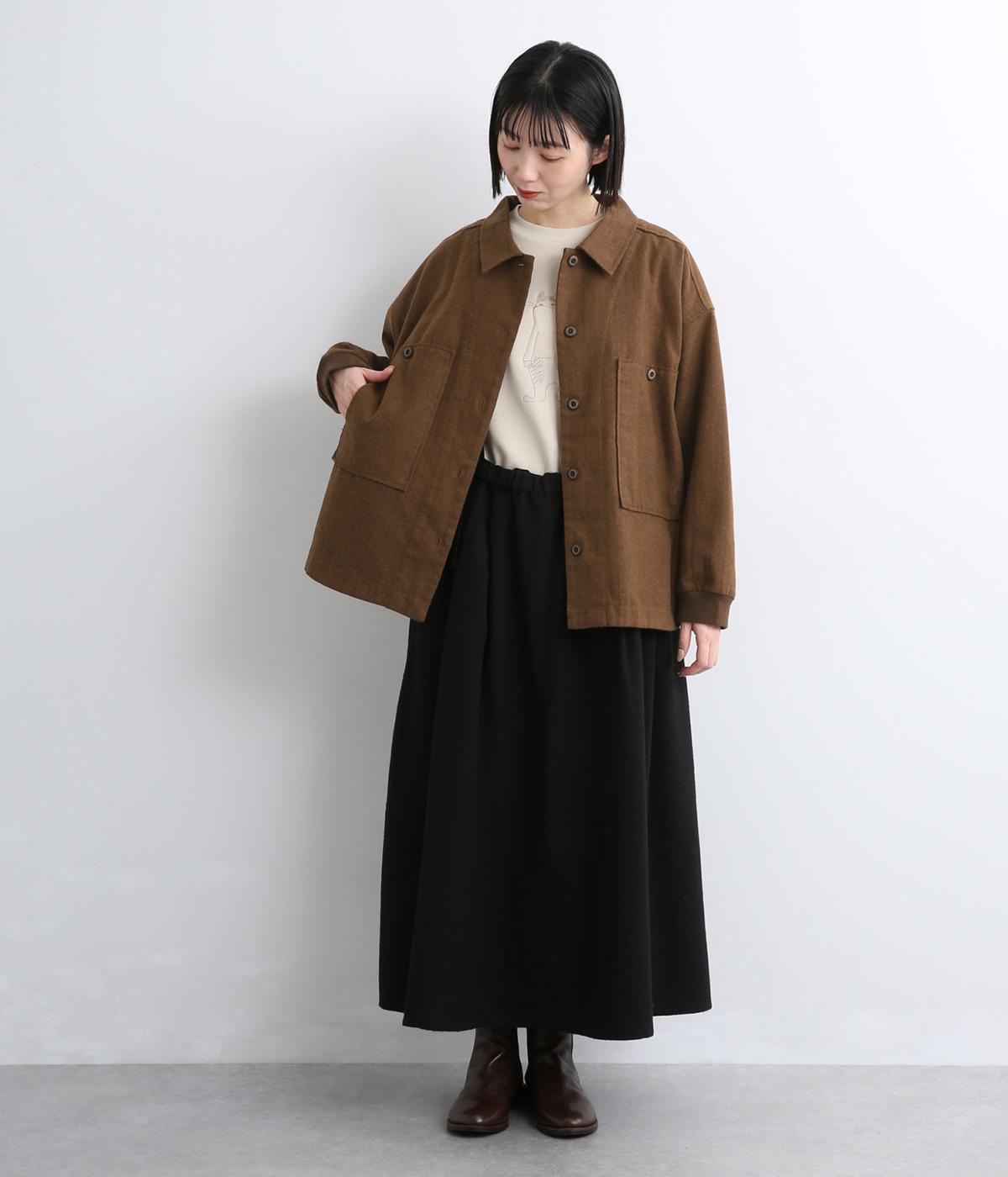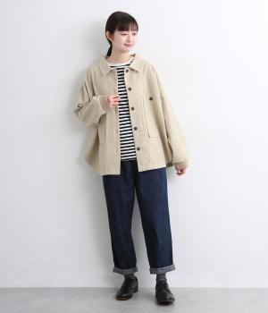 ワークテイストを、品のあるヘリンボン柄で大人カジュアルに仕上げました。前面に配した大きなポケットがデザインポイントです。ふんわりとしたシルエットや、丸みのある裾のラインで女性らしさもプラスしました。