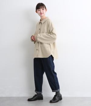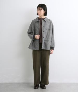 ソフトな肌ざわりのコットン混のポリエステル生地にほのかな起毛加工をほどこしました。複数色がミックスした色味にさらに洗いをかけて味わいのある表情に仕上がっています。