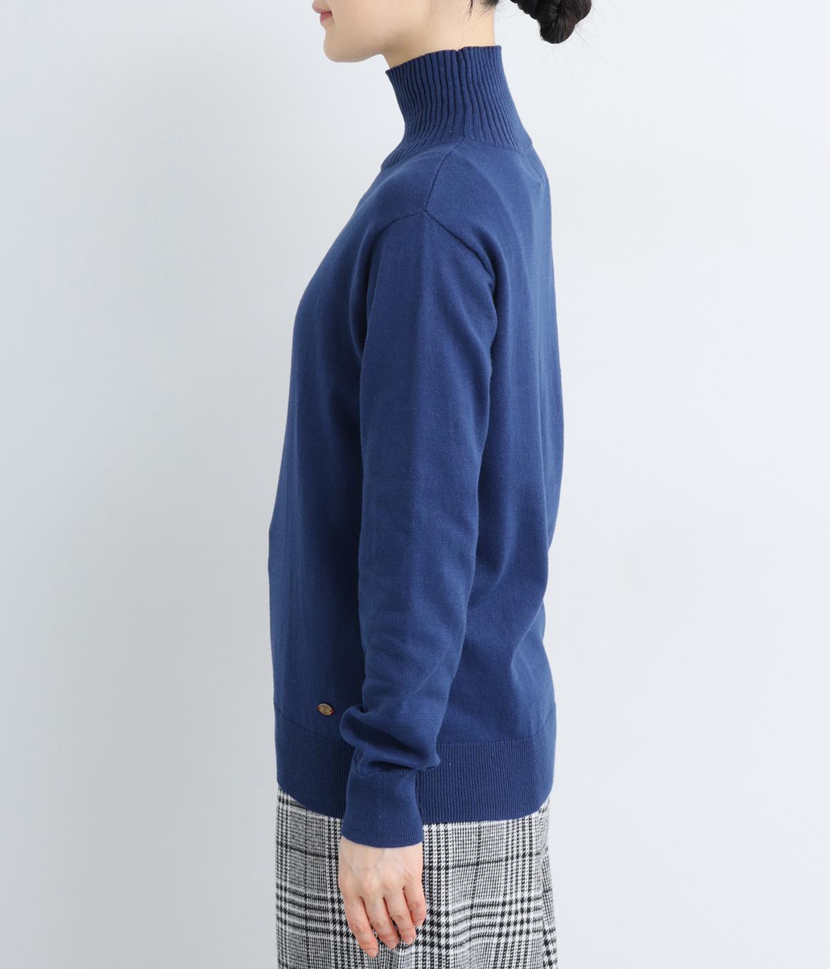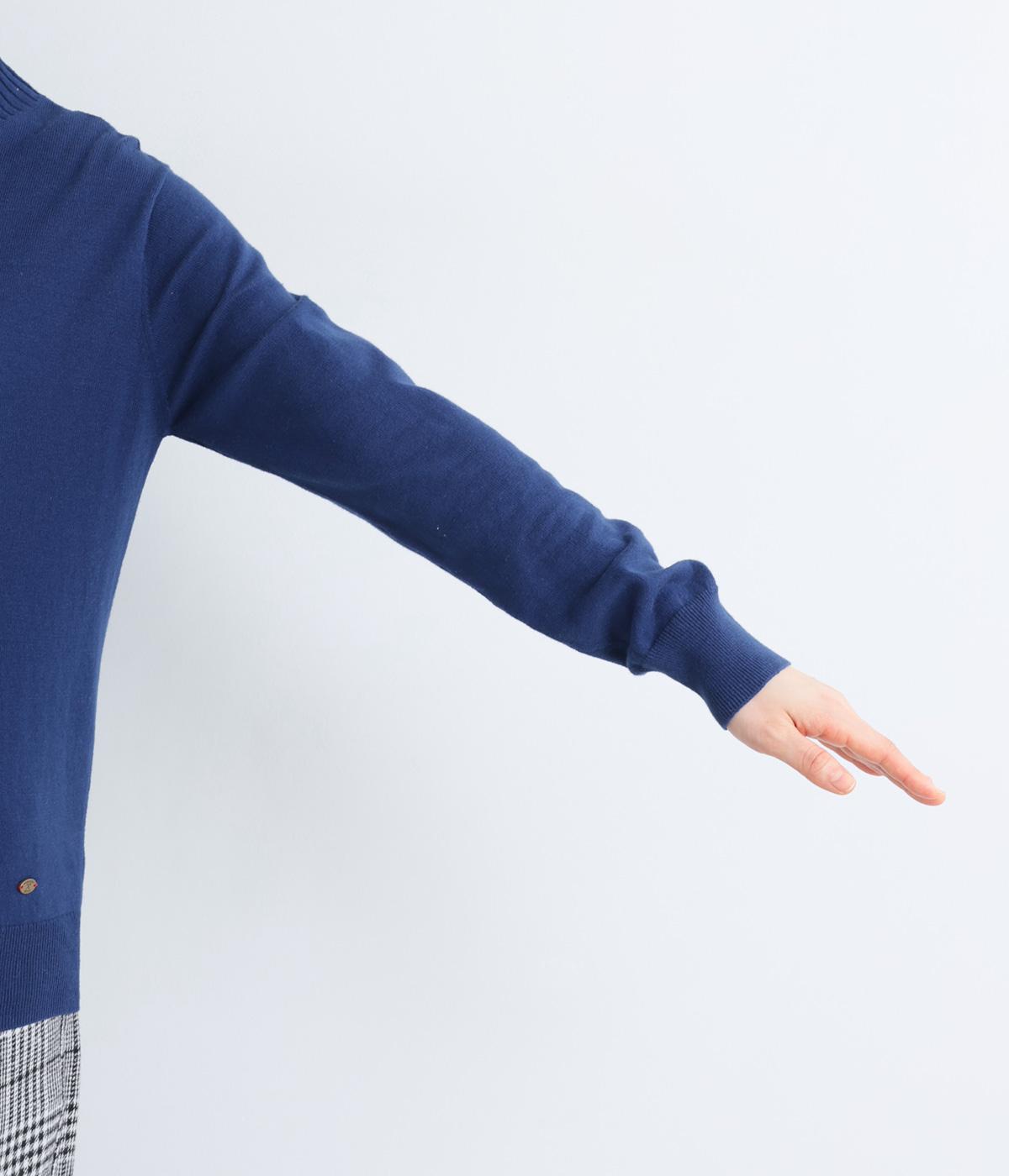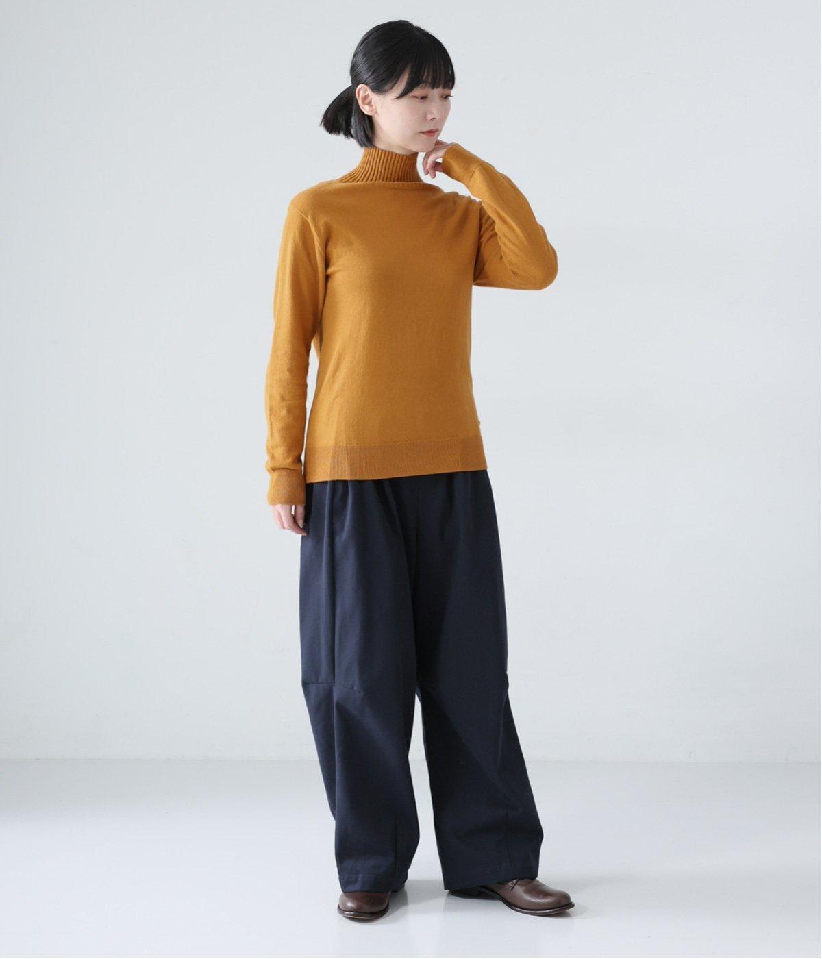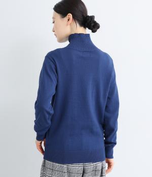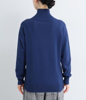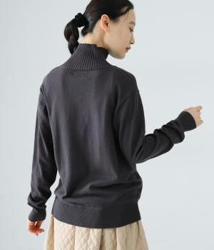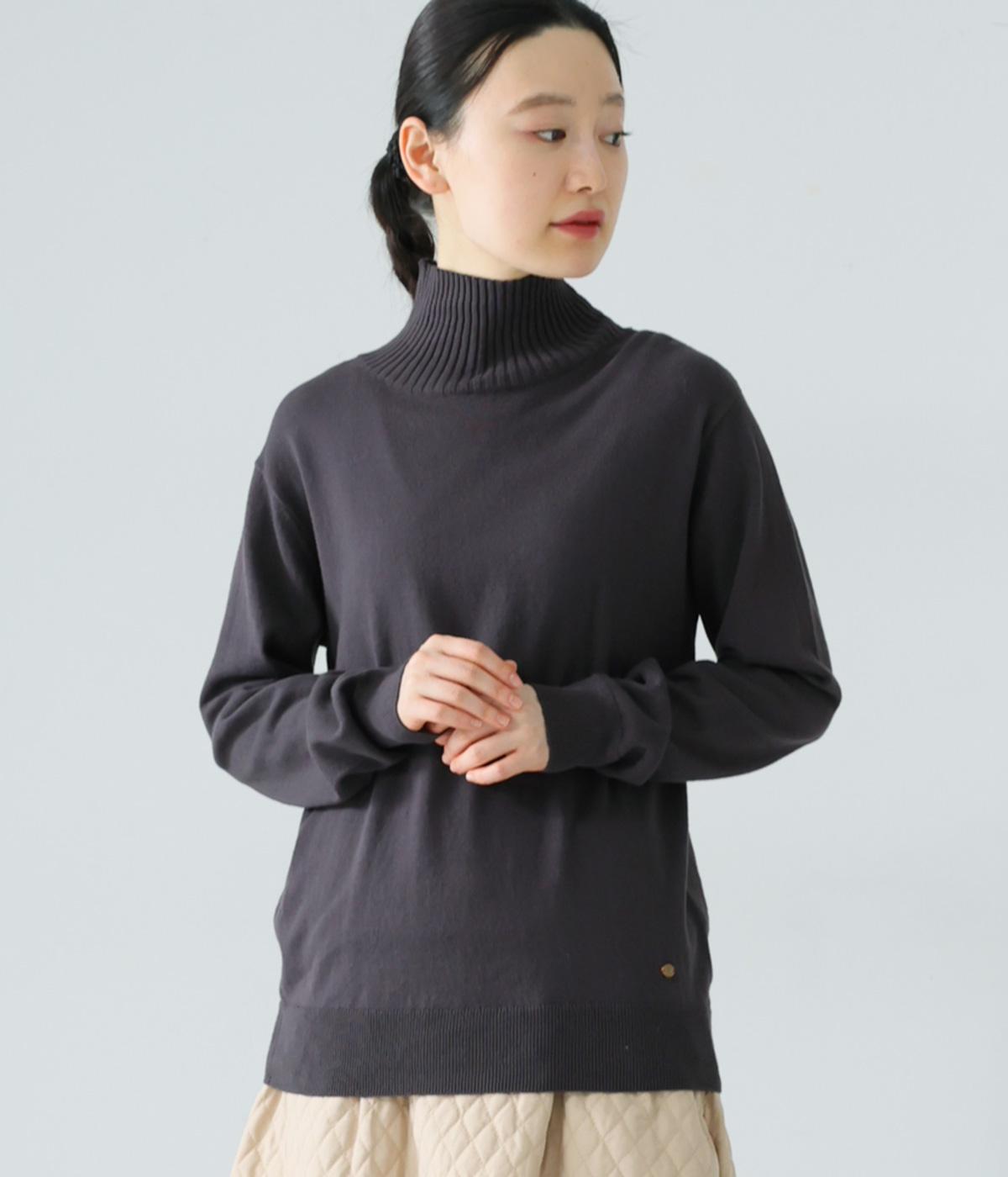 一枚着はもちろん、レイヤードにも幅広く活用できるタートルネックニット。体のラインを拾いすぎないよう、身頃はほどよくゆとりを持たせました。伸びのよいリブ仕立てのネックは、心地よいフィット感が◎。左裾にあしらったロゴ入りプレートもポイントです。