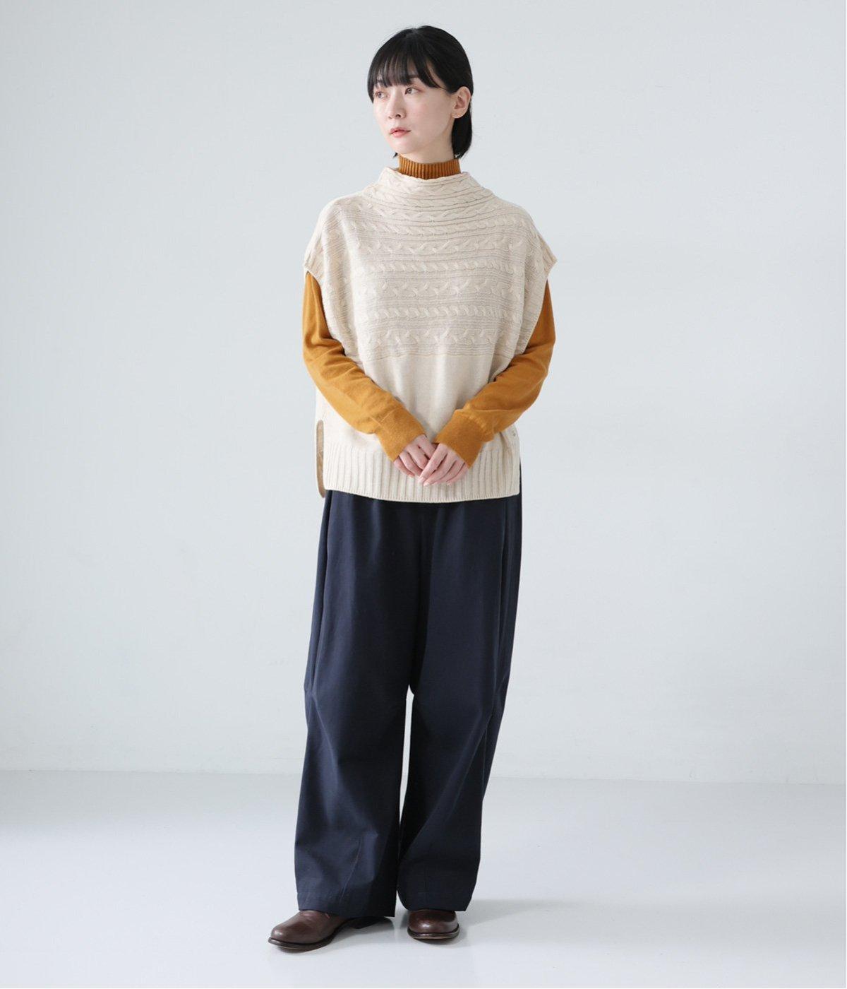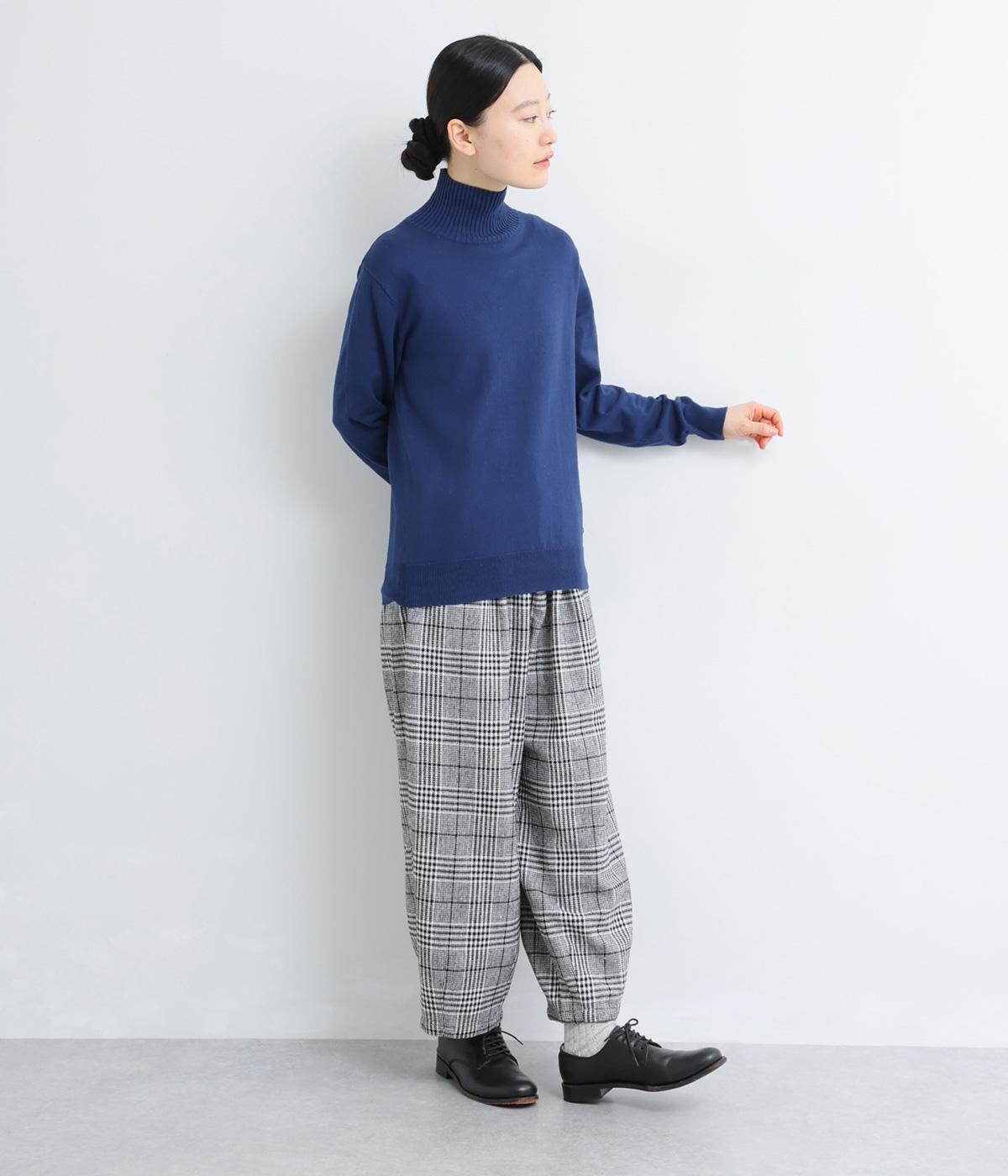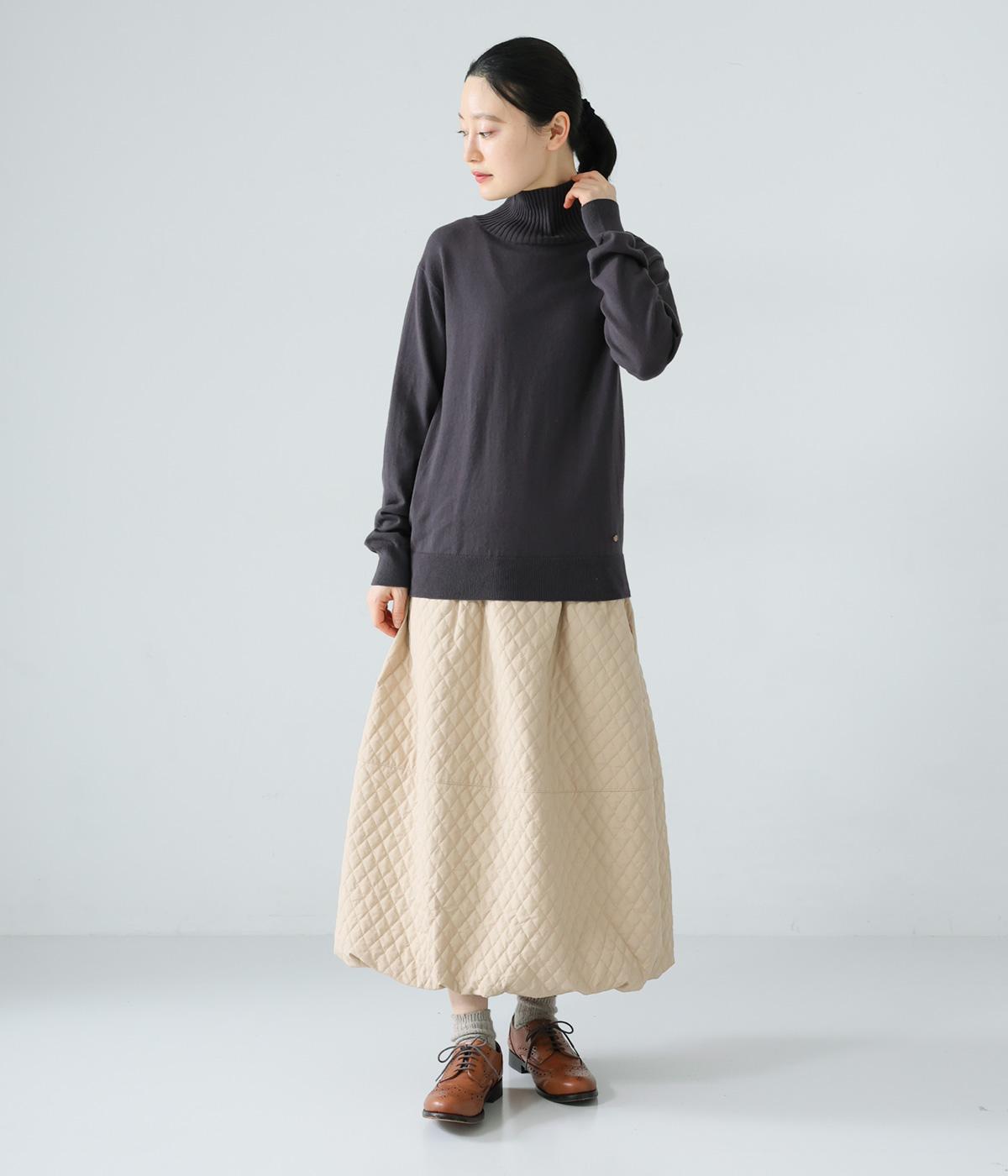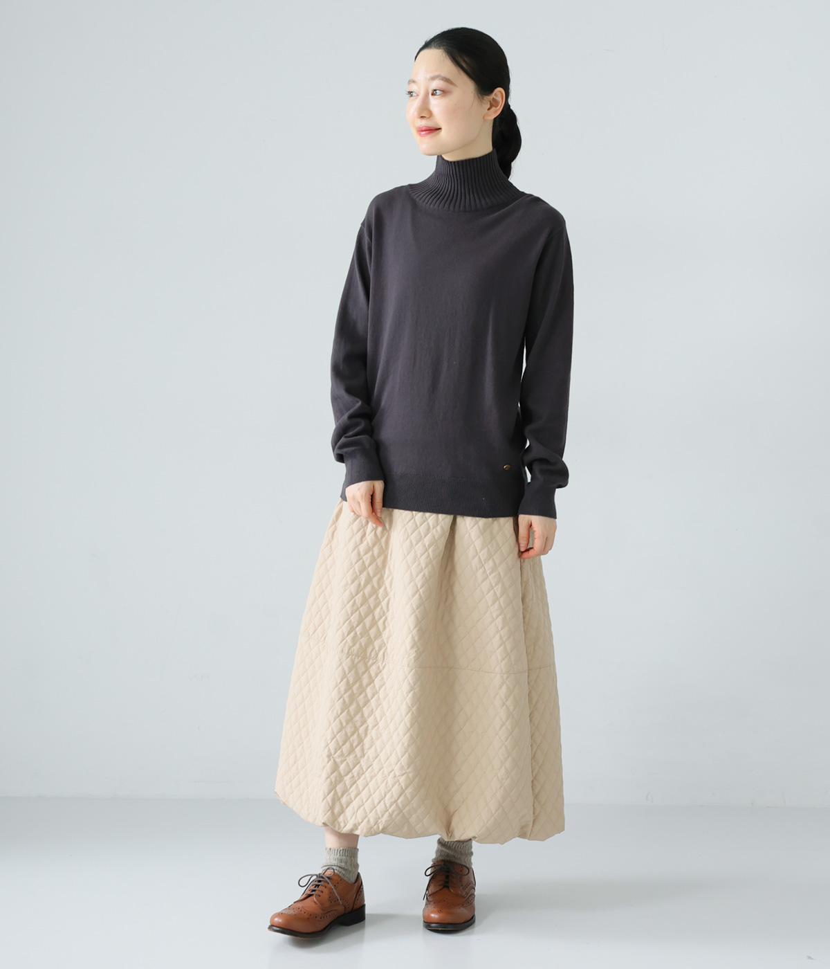 一枚着はもちろん、レイヤードにも幅広く活用できるタートルネックニット。体のラインを拾いすぎないよう、身頃はほどよくゆとりを持たせました。伸びのよいリブ仕立てのネックは、心地よいフィット感が◎。左裾にあしらったロゴ入りプレートもポイントです。