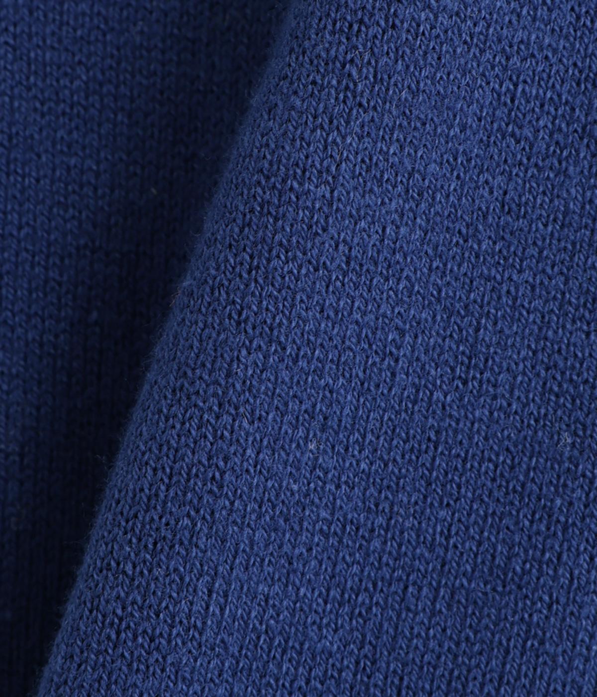 コットン糸を使用して厚みをおさえながら密度高く編み上げたニット生地。ドライな肌ざわりで通気性がよく、春先まで快適に着ていただけます。肩に負担がかかりにくい軽い着心地もグッドです。