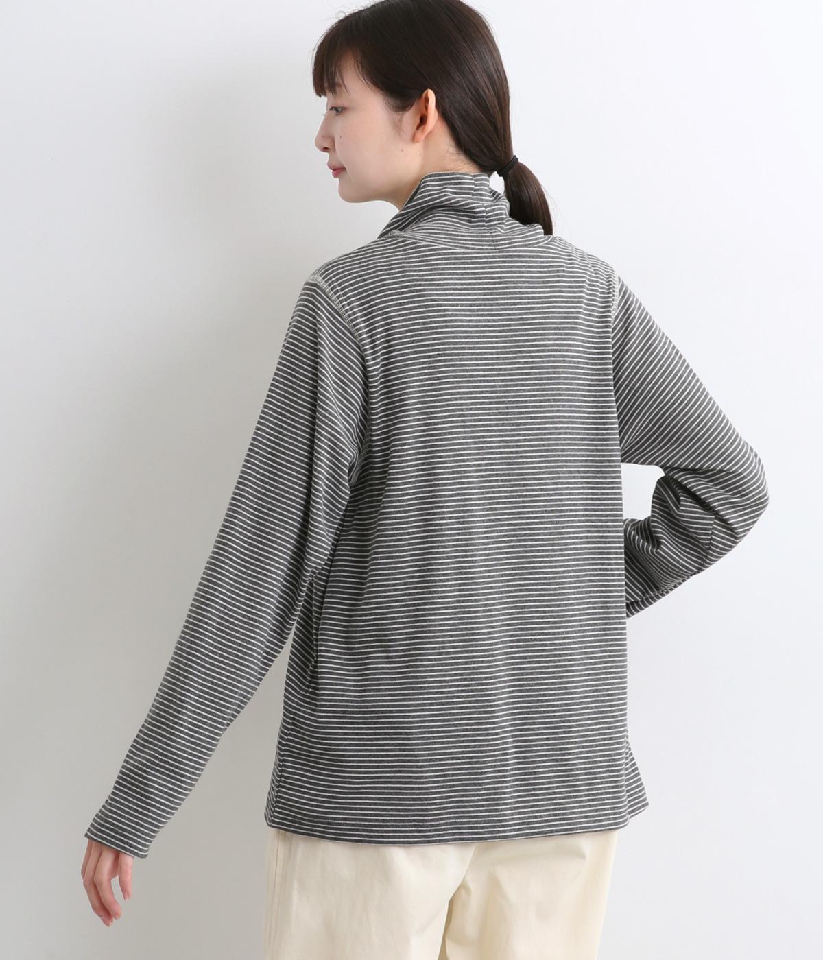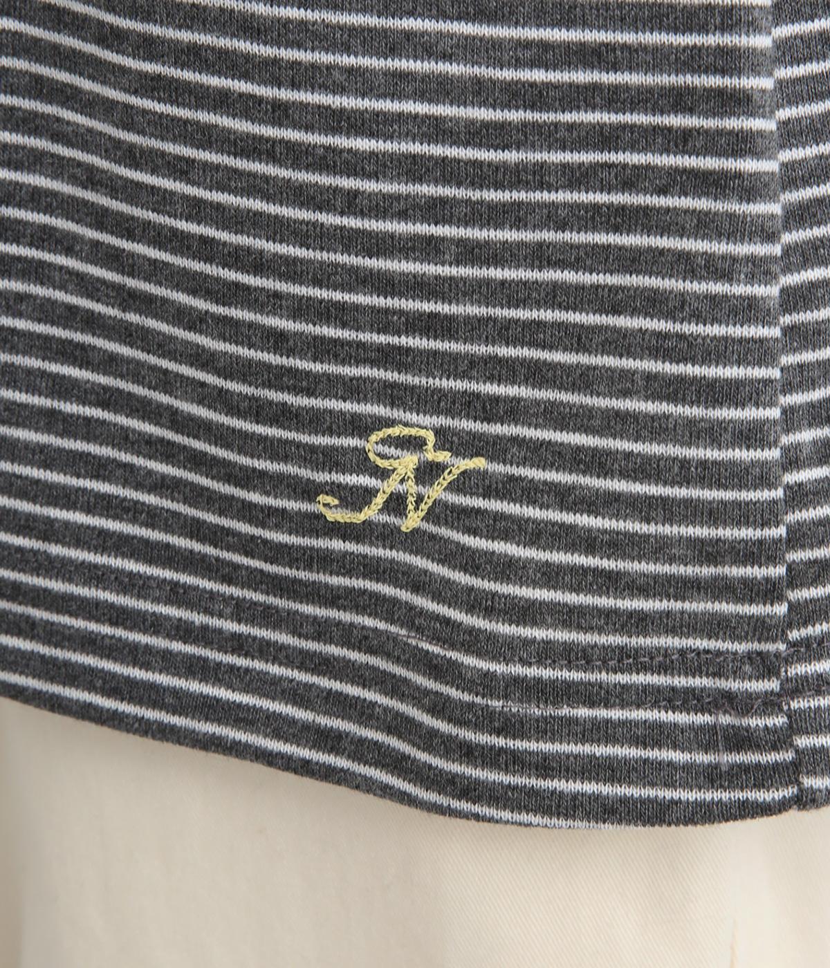 大人カジュアルスタイルにぴったりな上品なボーダー柄のプルオーバーです。伸縮性がありインナーにもぴったりです。アームホールの縫い合わせステッチや裾のロゴ刺しゅうでさりげないアクセントを添えました。