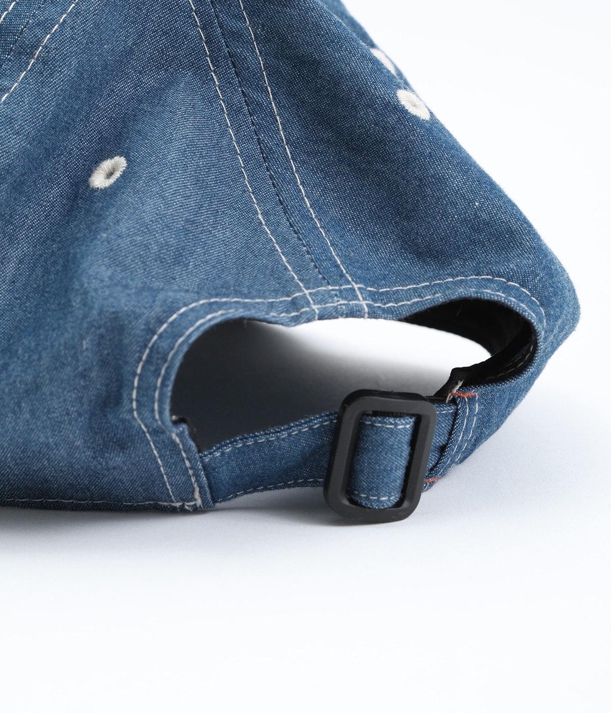 フロントの刺しゅう『ブルー・ジャケット』は、19世紀の英米では水兵の代名詞。ワークウエアをコンセプトにしているブランドらしいロゴを取り入れました。カジュアルスタイルにはもちろん、可愛らしい着こなしのハズしとしても活躍します。