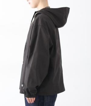 大人のカジュアルスタイルにぴったりなアウトドアジャケット。ほどよくゆとりを持たせた身幅と、立体的なフードがポイントです。左裾のワッペンや大きめのフロントボタンもアクセントに。袖口にゴムを通しているので、たくし上げも簡単です。