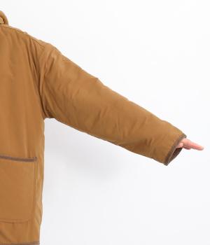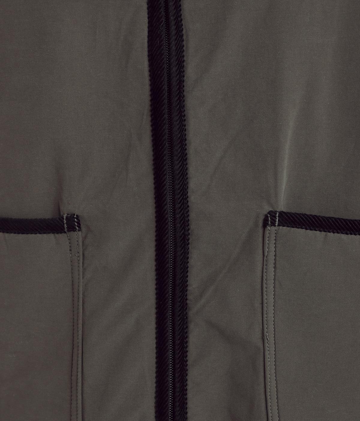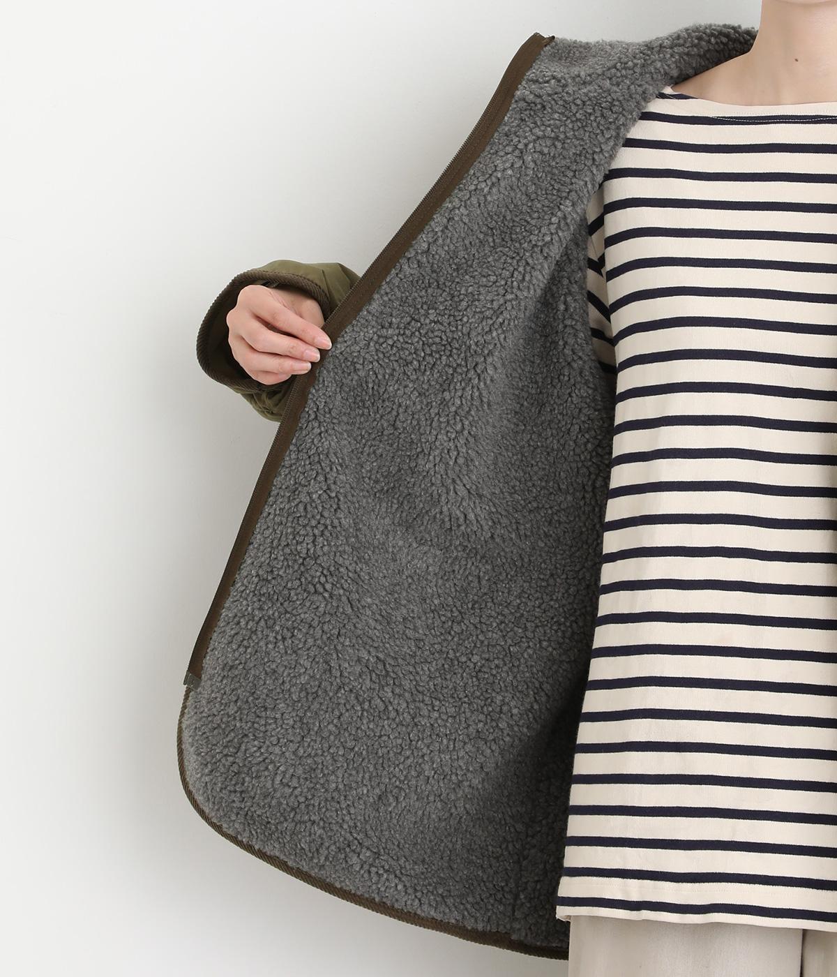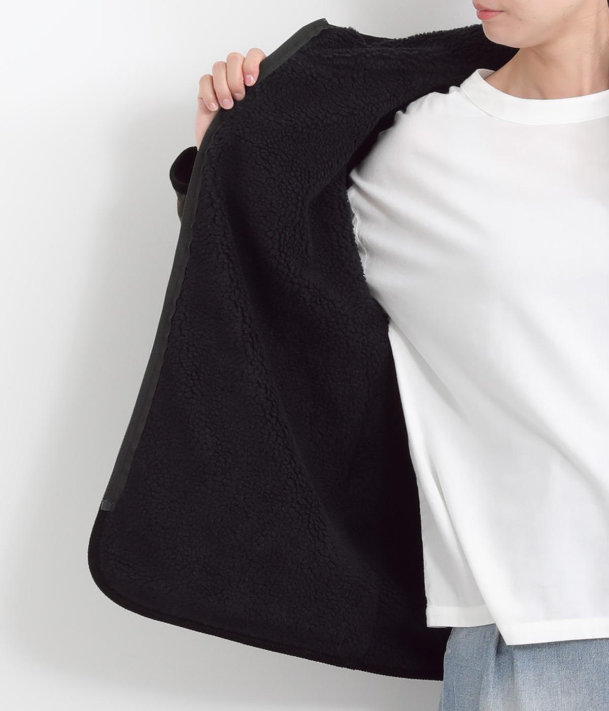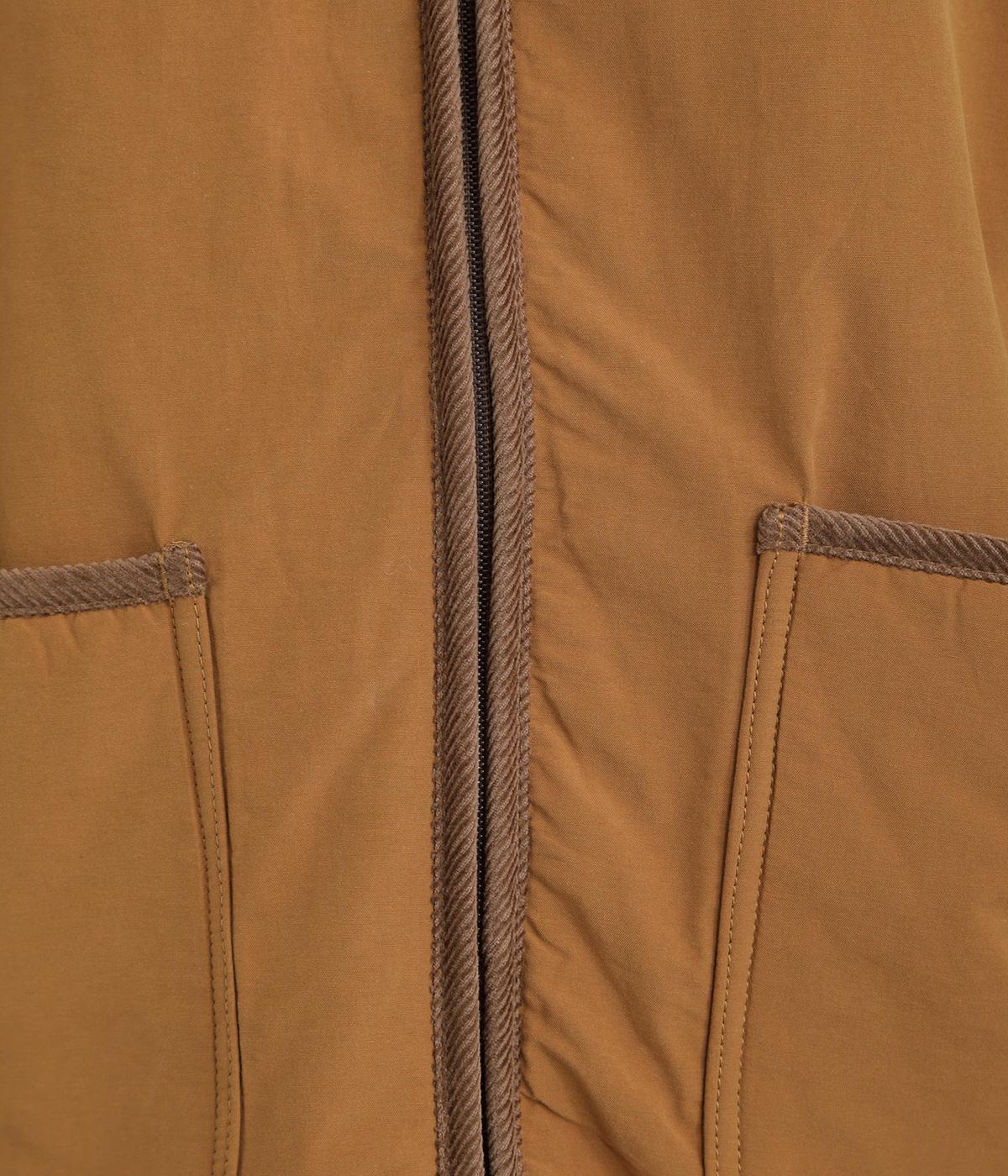 タフなコットンナイロンを表地に、裏面にはボアを配してあたたかに仕上げました。適度に肉感があり、寒い季節に重宝する一着。パイピングには畝のある別生地をセレクト。