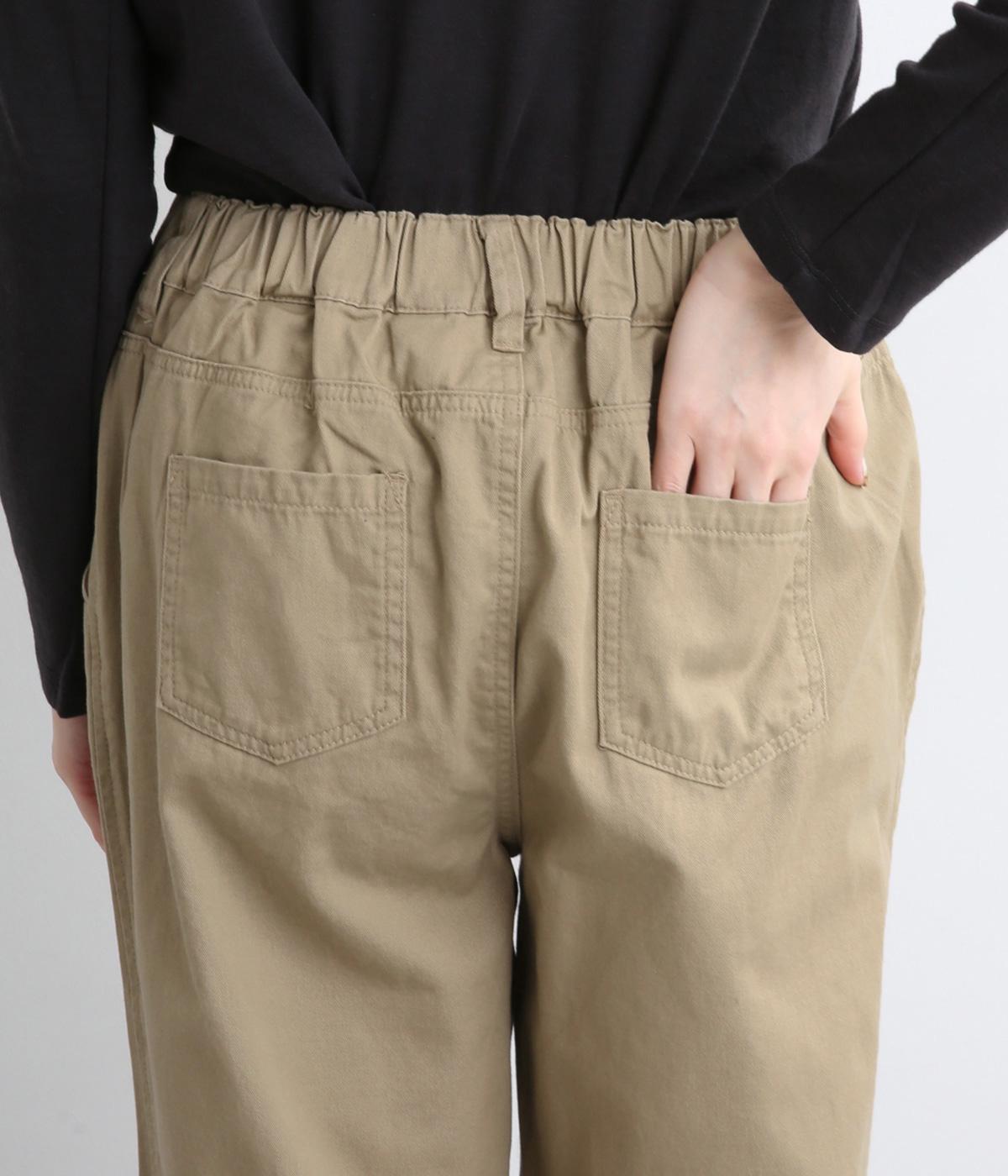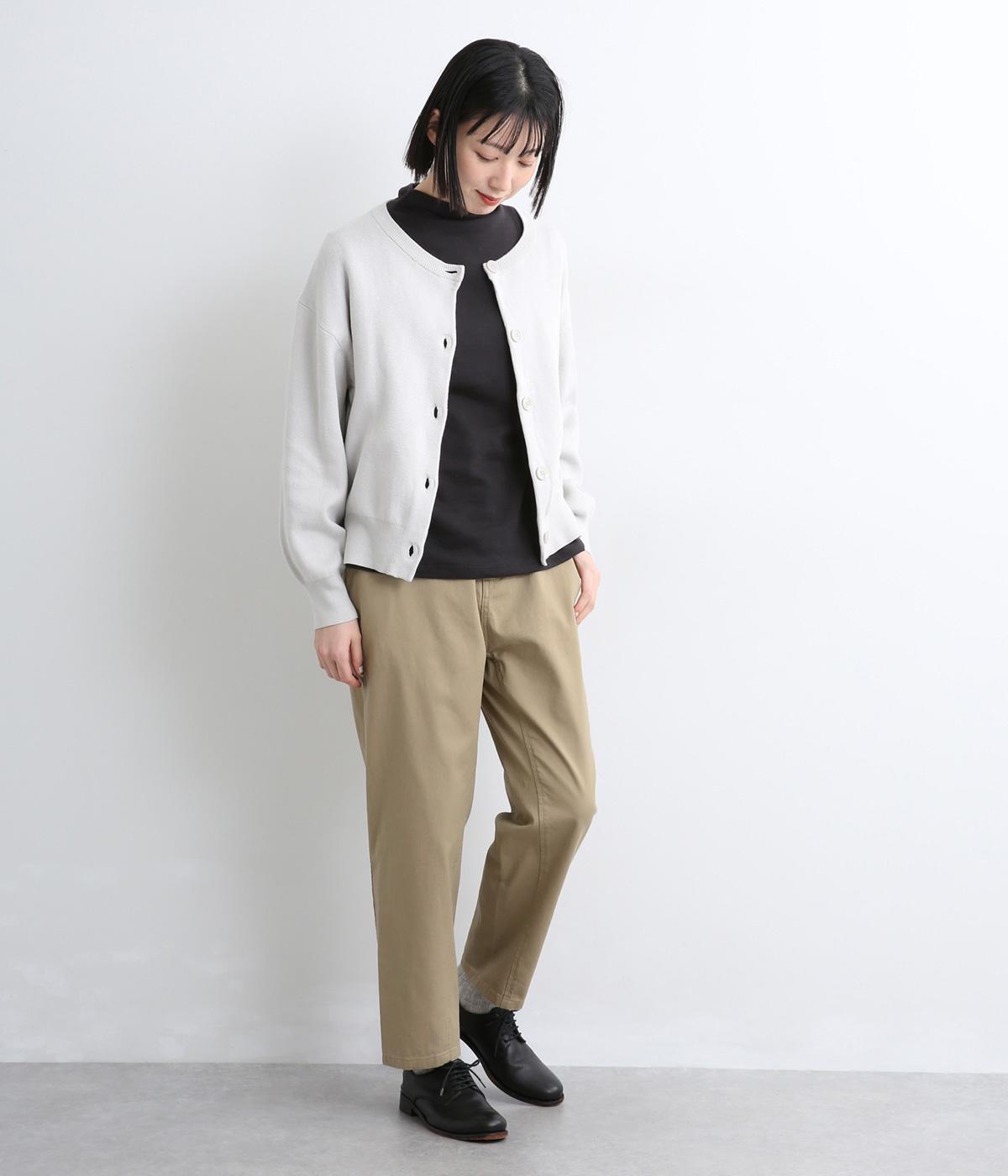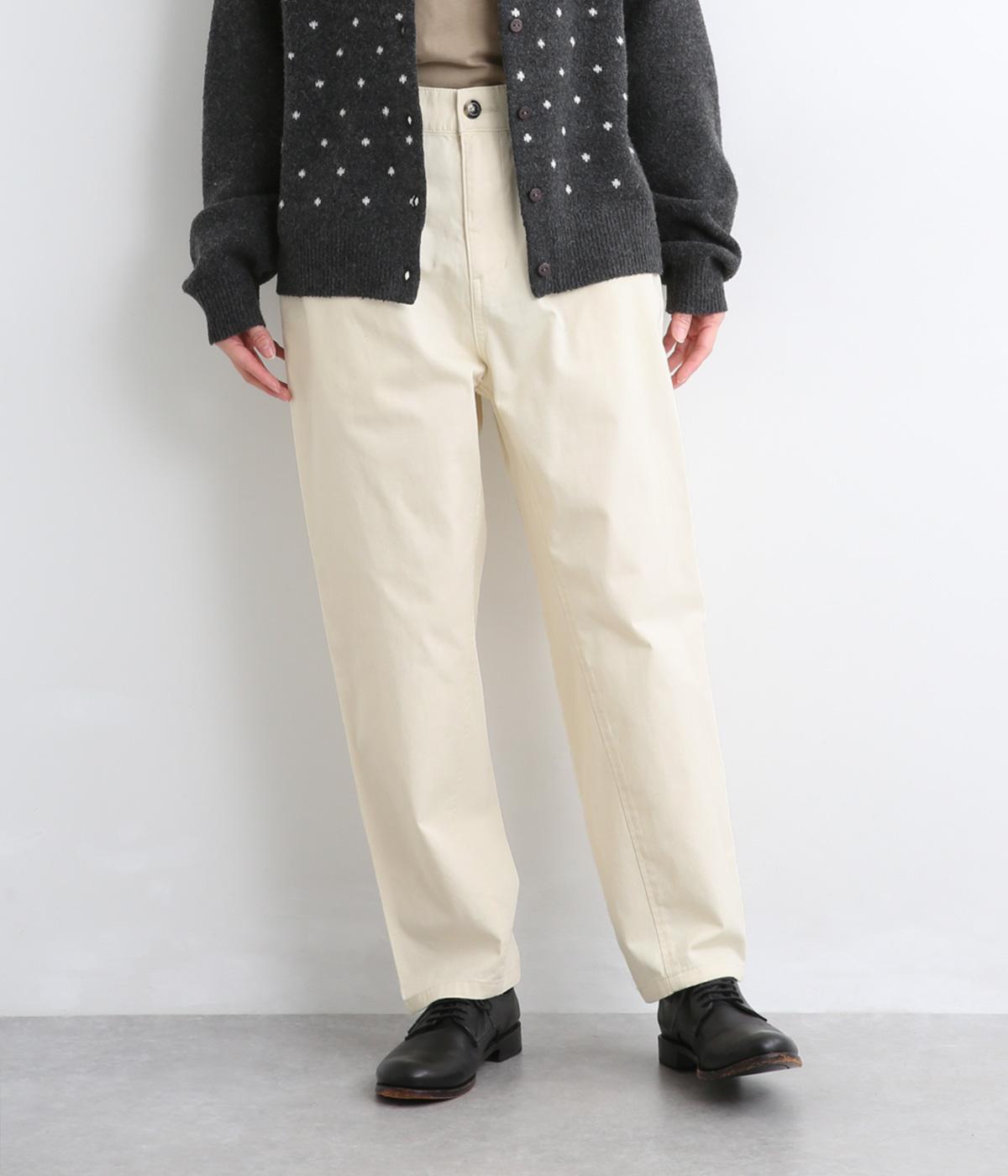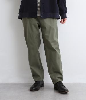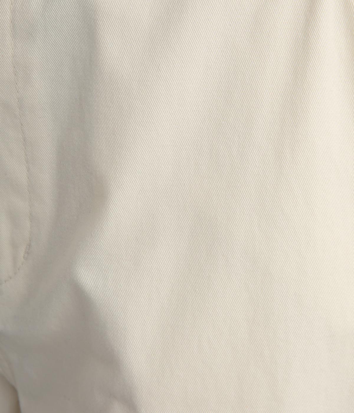 きちんとしたハリがありながらも、さらりと軽やかな肌ざわりのコットンツイル生地を使用しました。厚すぎず軽やかな穿き心地で季節を通して着用できる素材感です。