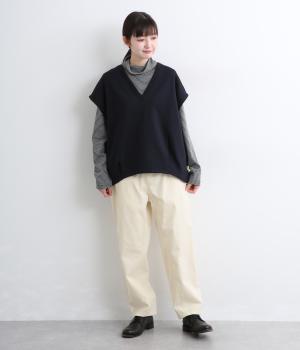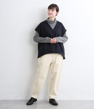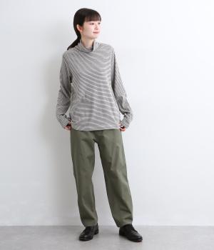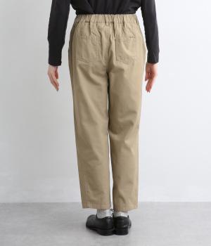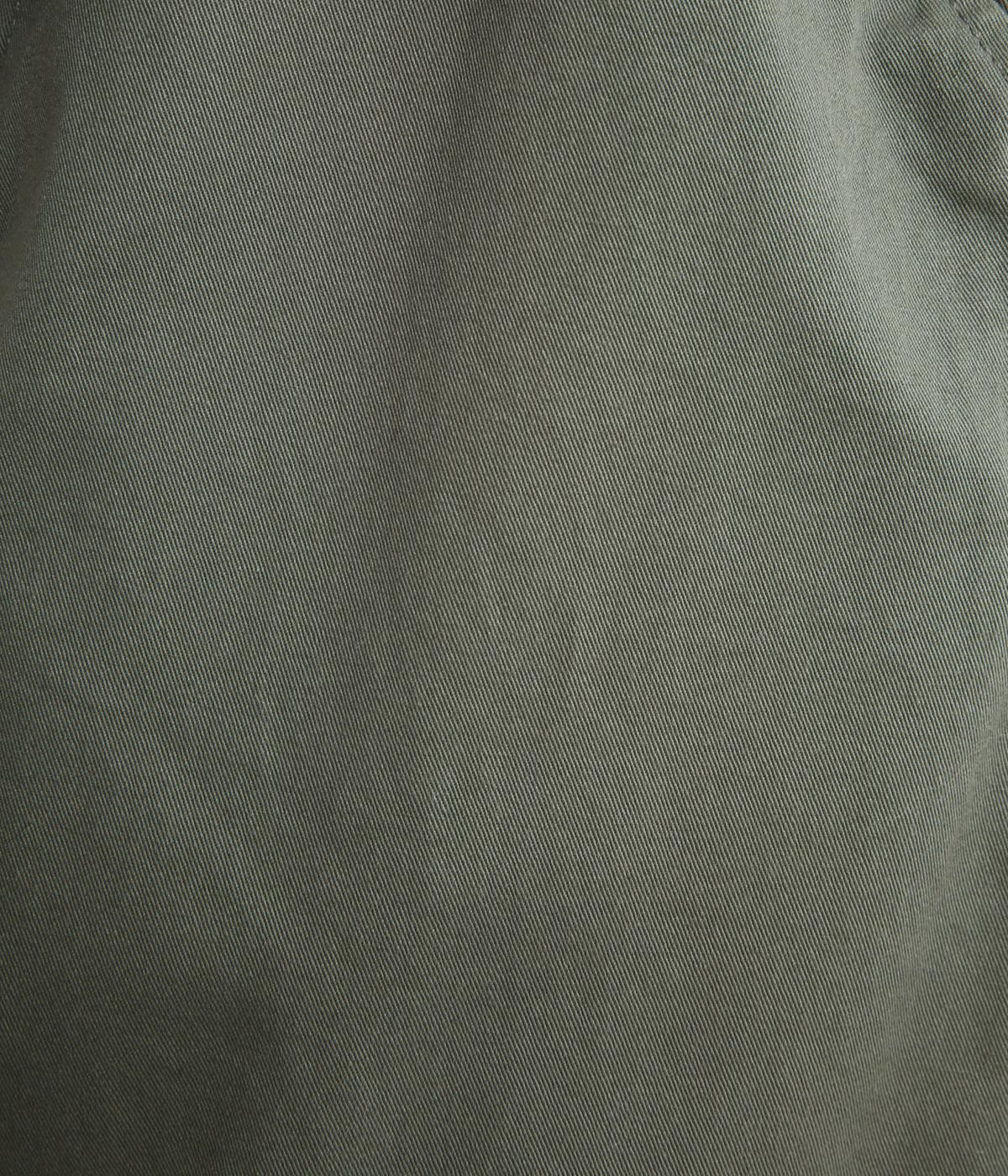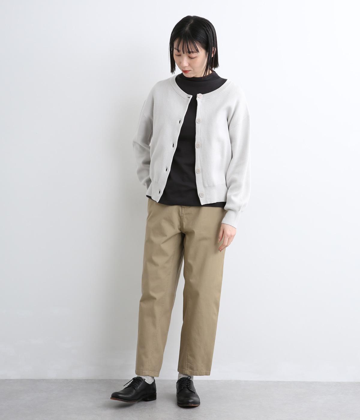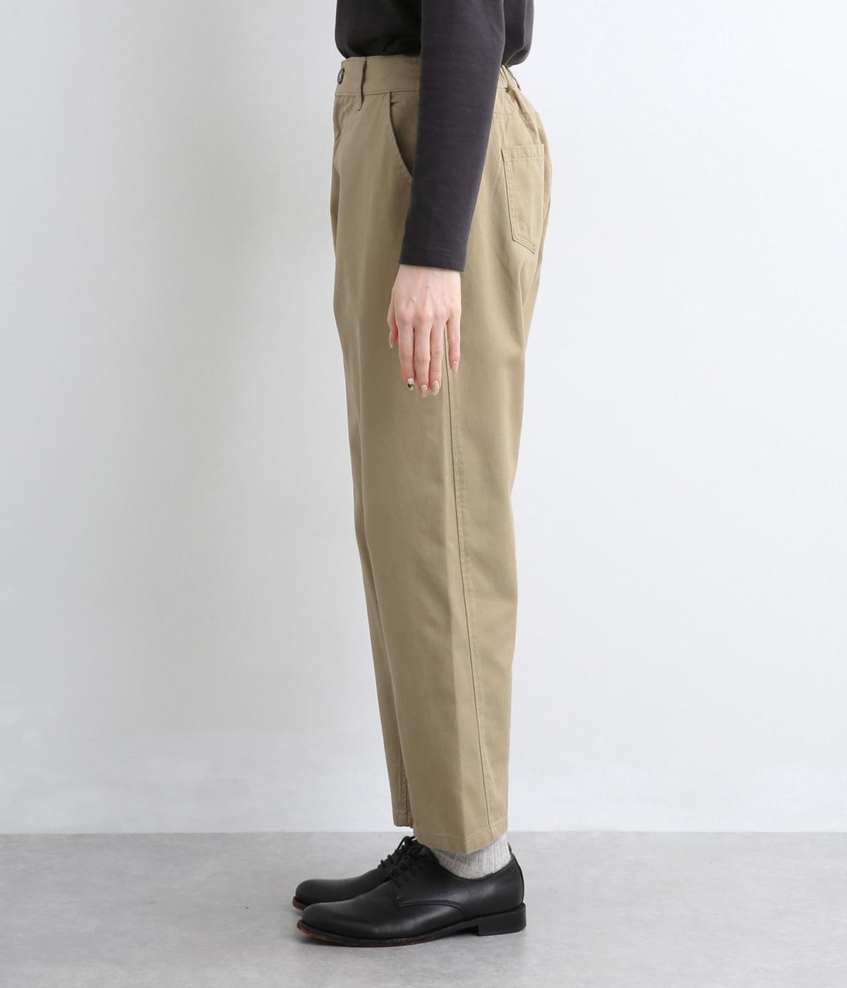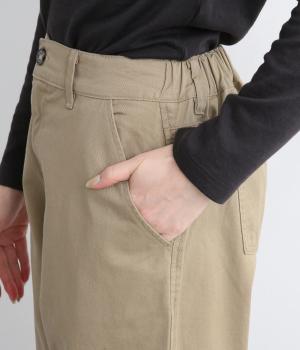 きちんとしたハリがありながらも、さらりと軽やかな肌ざわりのコットンツイル生地を使用しました。厚すぎず軽やかな穿き心地で季節を通して着用できる素材感です。