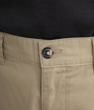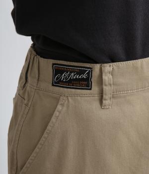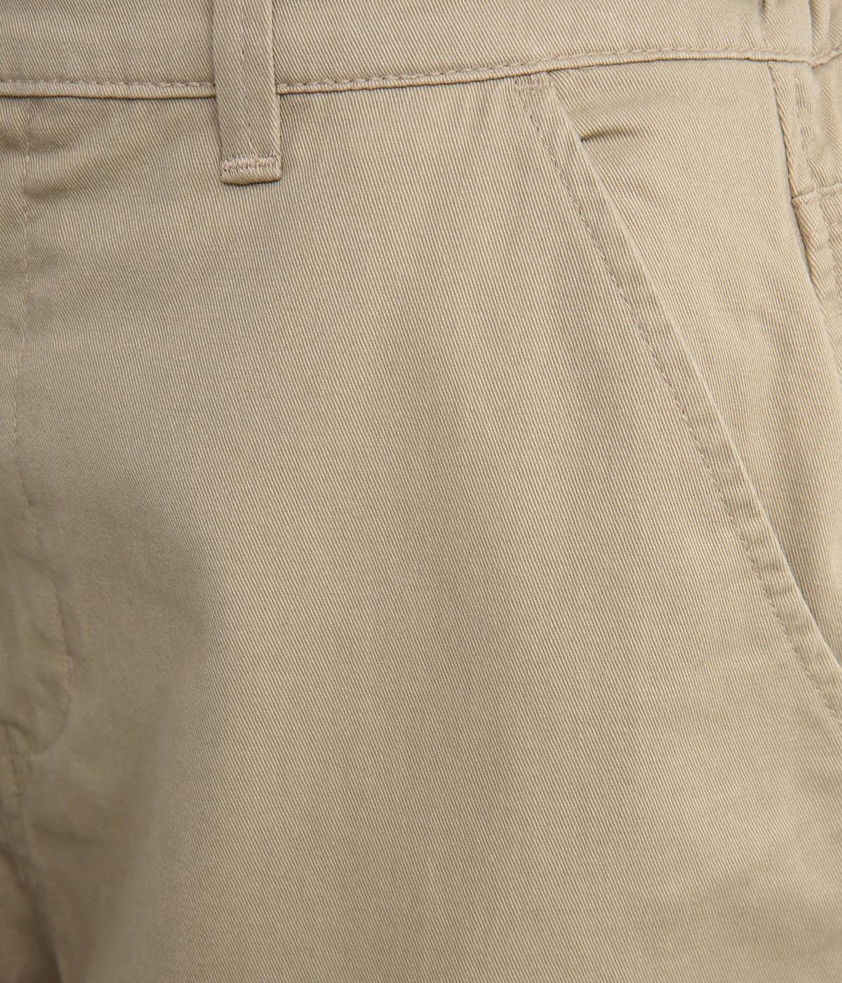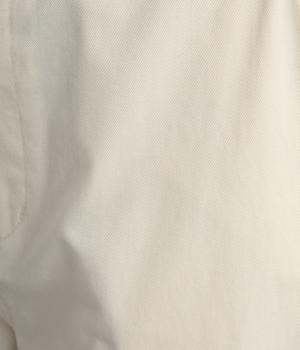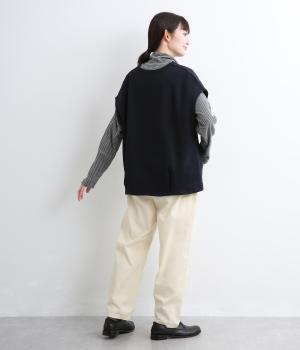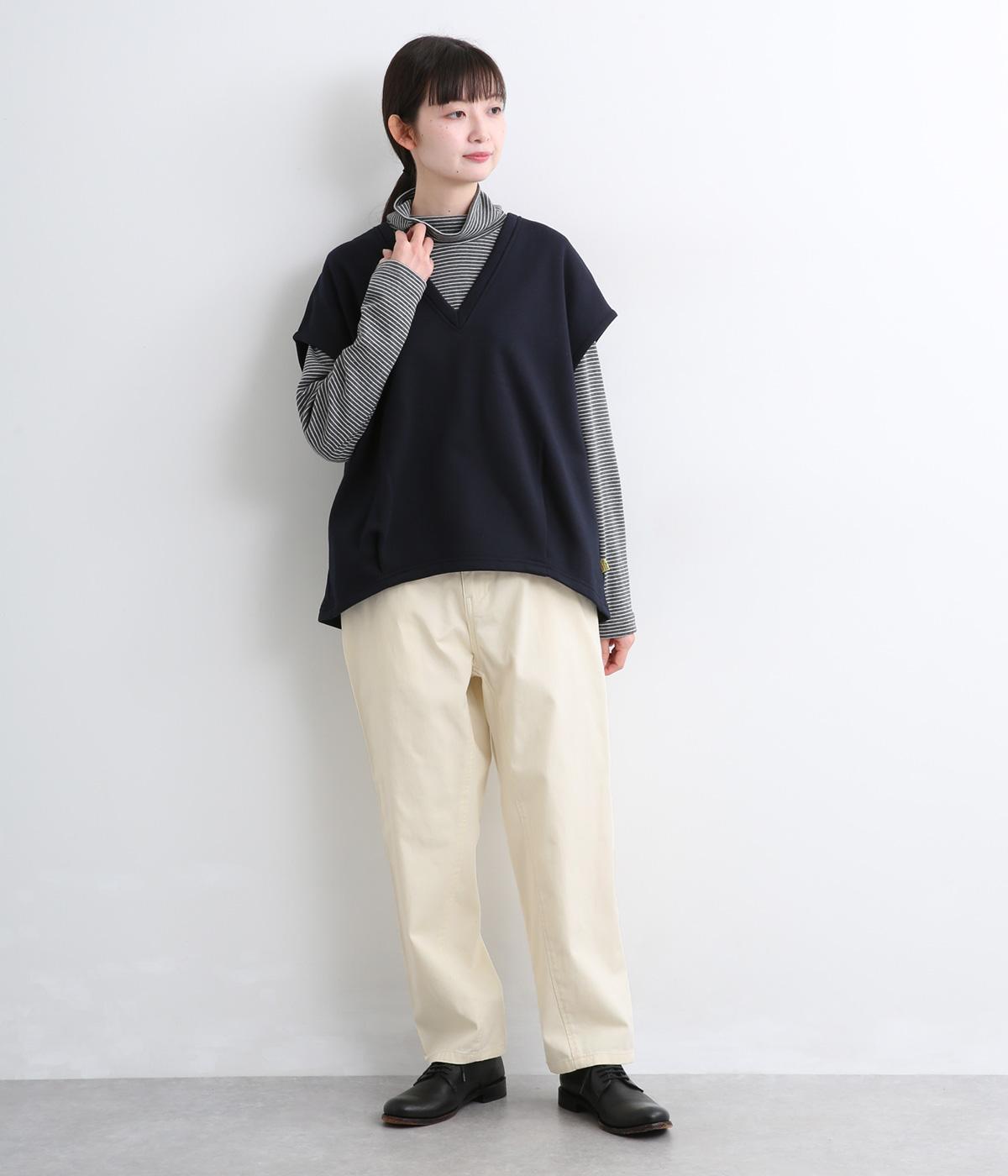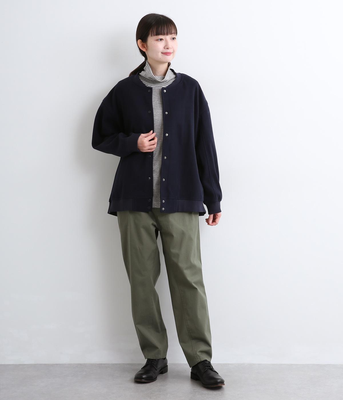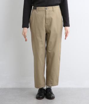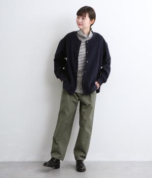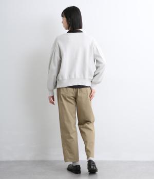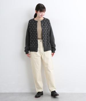 きちんとしたハリがありながらも、さらりと軽やかな肌ざわりのコットンツイル生地を使用しました。厚すぎず軽やかな穿き心地で季節を通して着用できる素材感です。