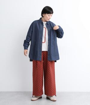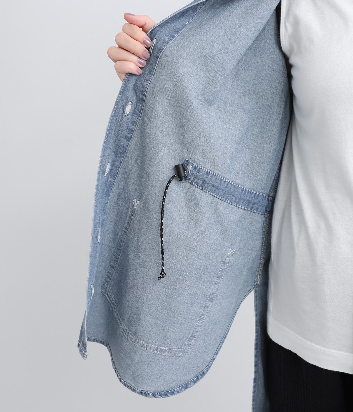 カジュアルな印象のワークテイストなシャツ。ウエスト内側にはドローコードをほどこし、シルエットのアレンジも可能。ポケットも豊富で実用性とデザイン性を兼備。ジャケット使いでも1枚でも活躍し、季節の変わり目にも重宝します。