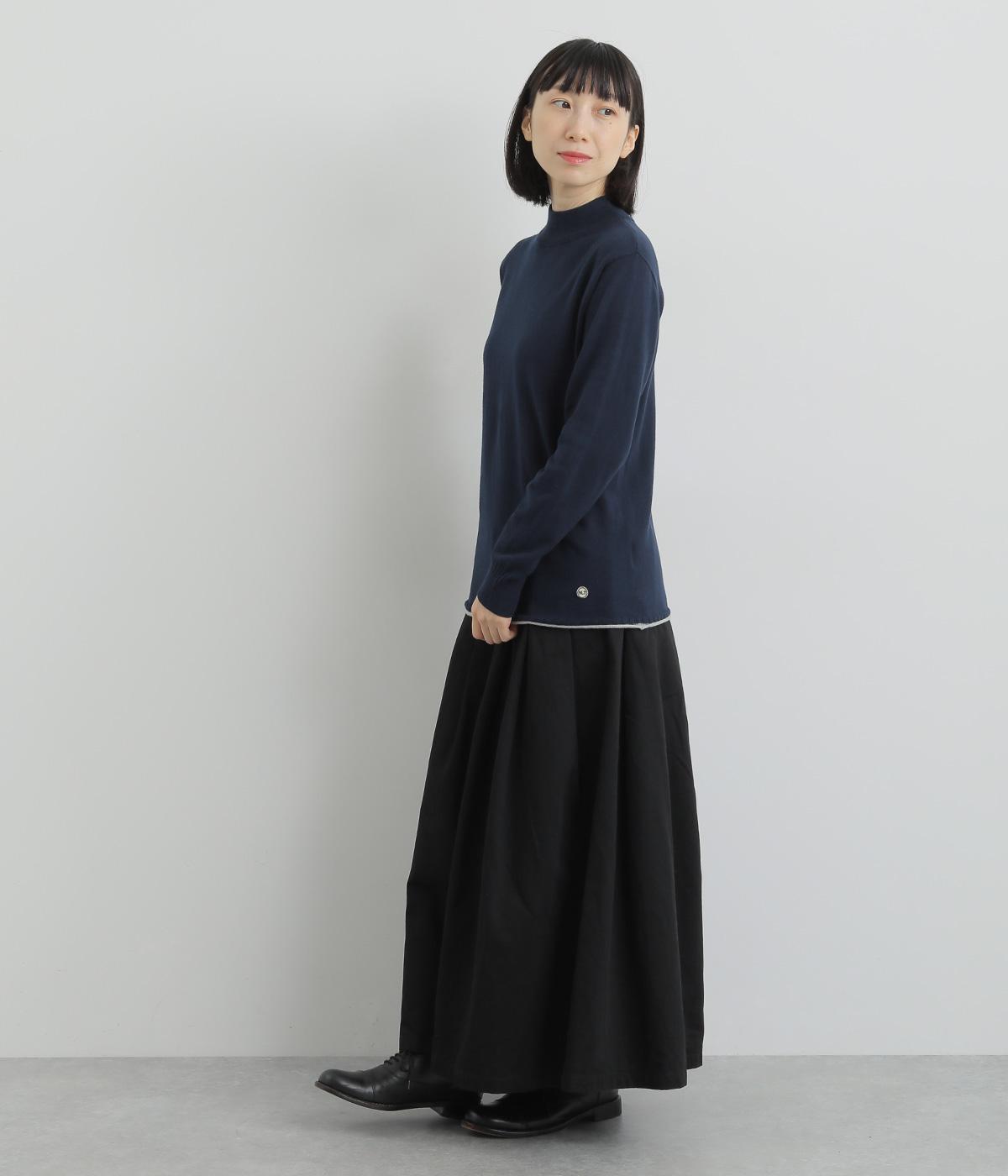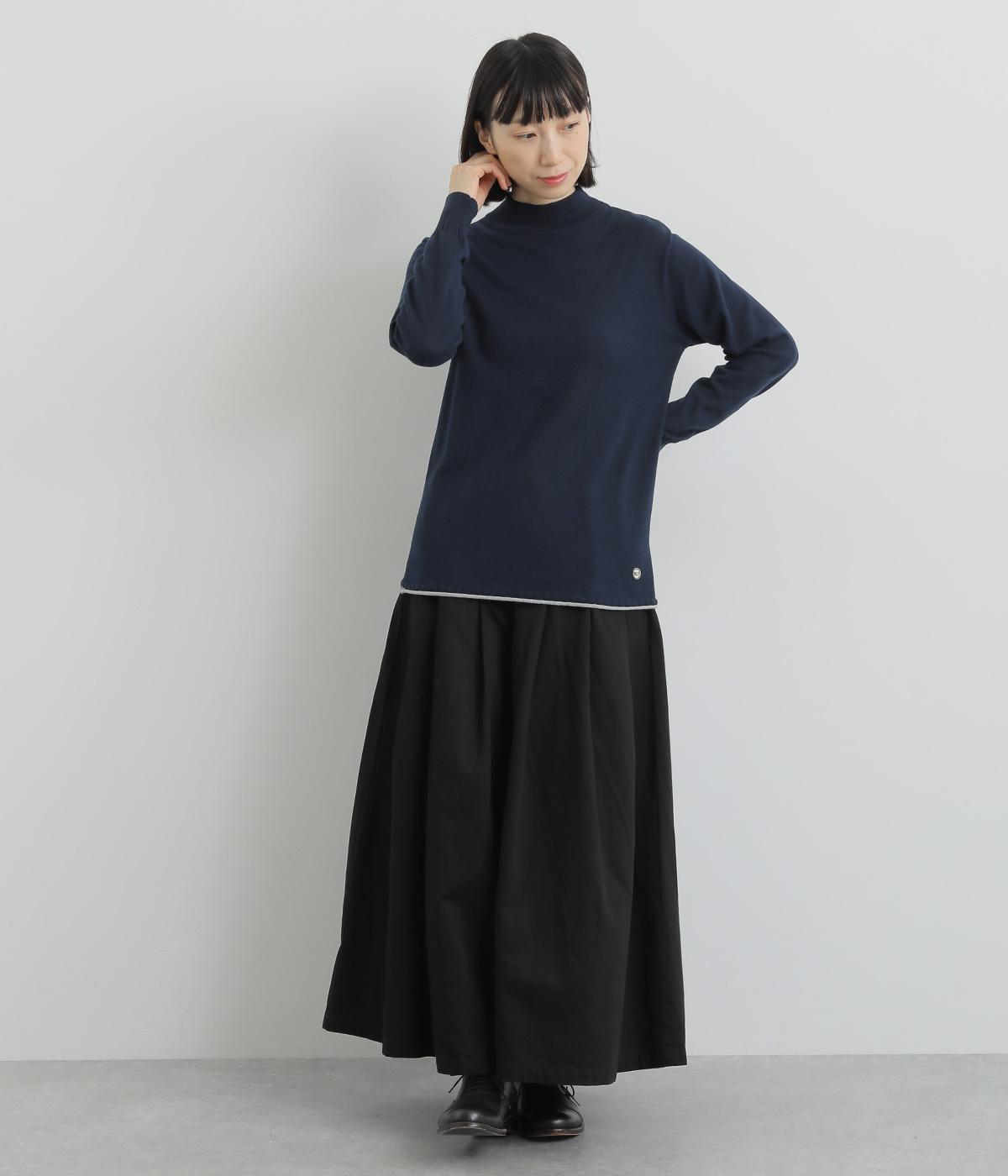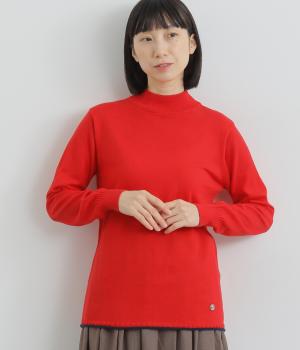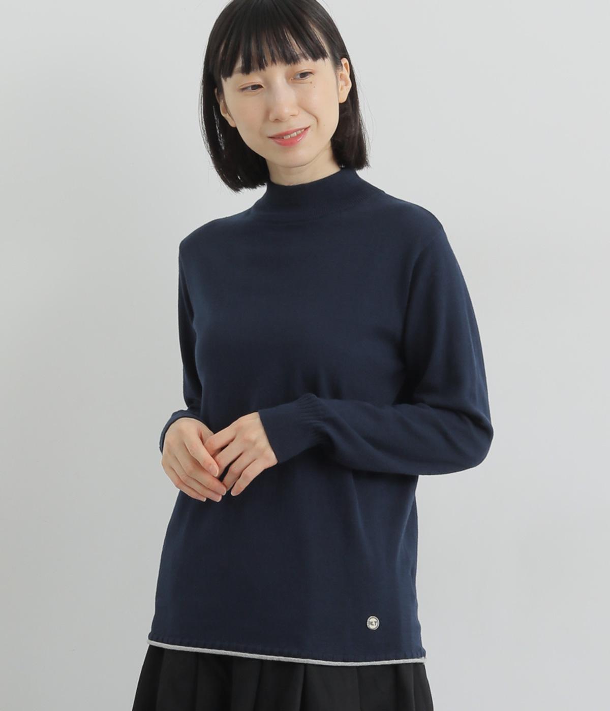 裾の配色デザインがかわいいニットプルオーバー。首元に心地よくフィットするリブ使いのハイネックが上品なムードをプラスします。少し長めに設定した着丈が縦ラインを強調してすっきりとした印象に。シンプルな中にこだわりが詰まった、さりげないおしゃれをたのしめる一枚です。