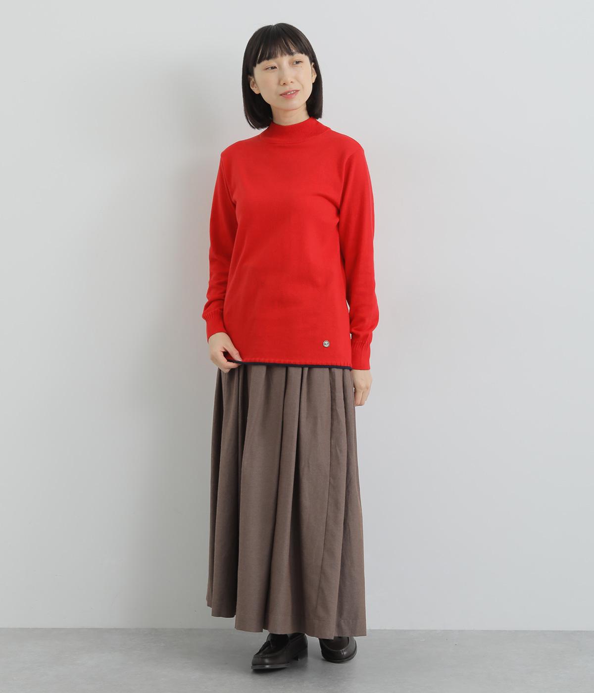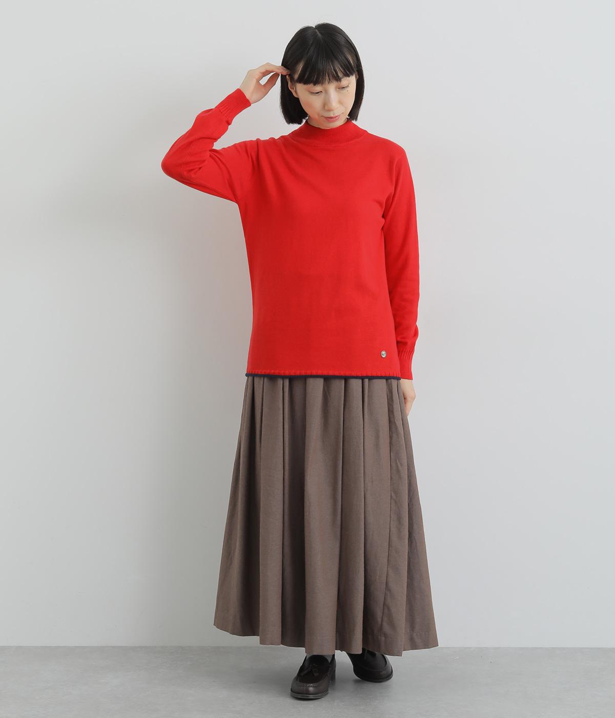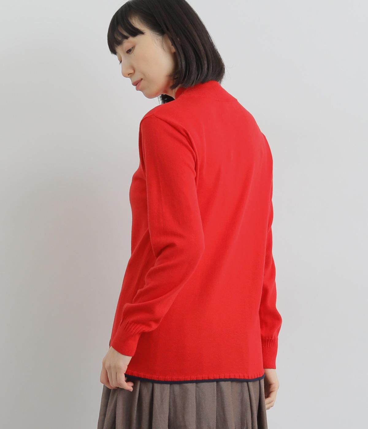 裾の配色デザインがかわいいニットプルオーバー。首元に心地よくフィットするリブ使いのハイネックが上品なムードをプラスします。少し長めに設定した着丈が縦ラインを強調してすっきりとした印象に。シンプルな中にこだわりが詰まった、さりげないおしゃれをたのしめる一枚です。