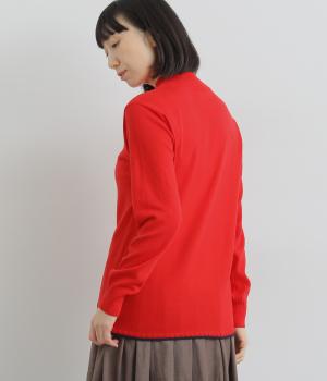 チクチク感のない、とてもやわらかなふっくらとした起毛感が魅力のコットンニット。薄手なので、ジャケットなど軽めアウターのインナーにも着やすいのが◎です。