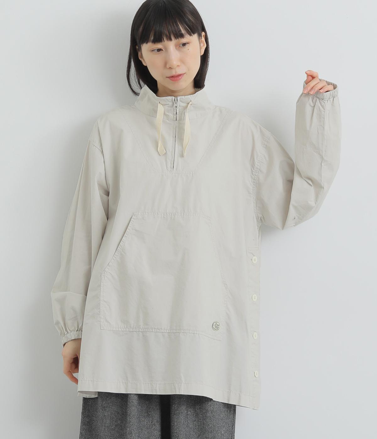 アウトドアにもタウンユースにも映えるチュニック丈のプルオーバー。カンガルーポケットや脇のボタン開き、ハーフジップ仕様のスタンドカラーで実用性とデザイン性を両立しました。レトロスポーツからアイデアを得たロゴワッペンにも注目です。