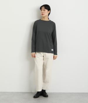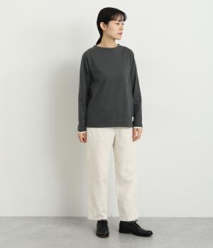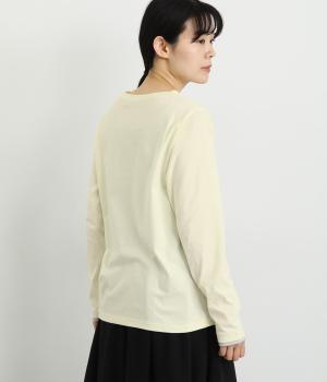 さらっとした肌触りが心地よいコットン生地は、速乾糸を用いて吸水速乾機能をもたせました。芯部のポリエステルが汗などの水分をすばやく発散させて、アクティブな日にも活躍します。