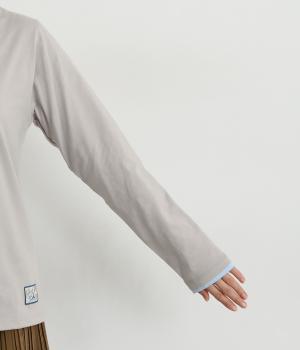 レイヤードしているような袖口デザインが特徴のプルオーバー。ほどよく高さをつけたモックネックが顔まわりをすっきり見せて、一枚でもさまになります。シンプルで着まわしがきき、機能性素材でロングシーズン活躍。