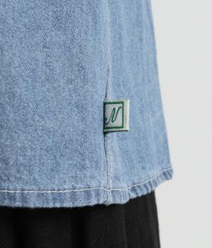 着用初期からやわらかで羽織りやすいライトオンスのコットンデニム生地を使用しています。インディゴ染めによる経年変化がたのしみな一枚。