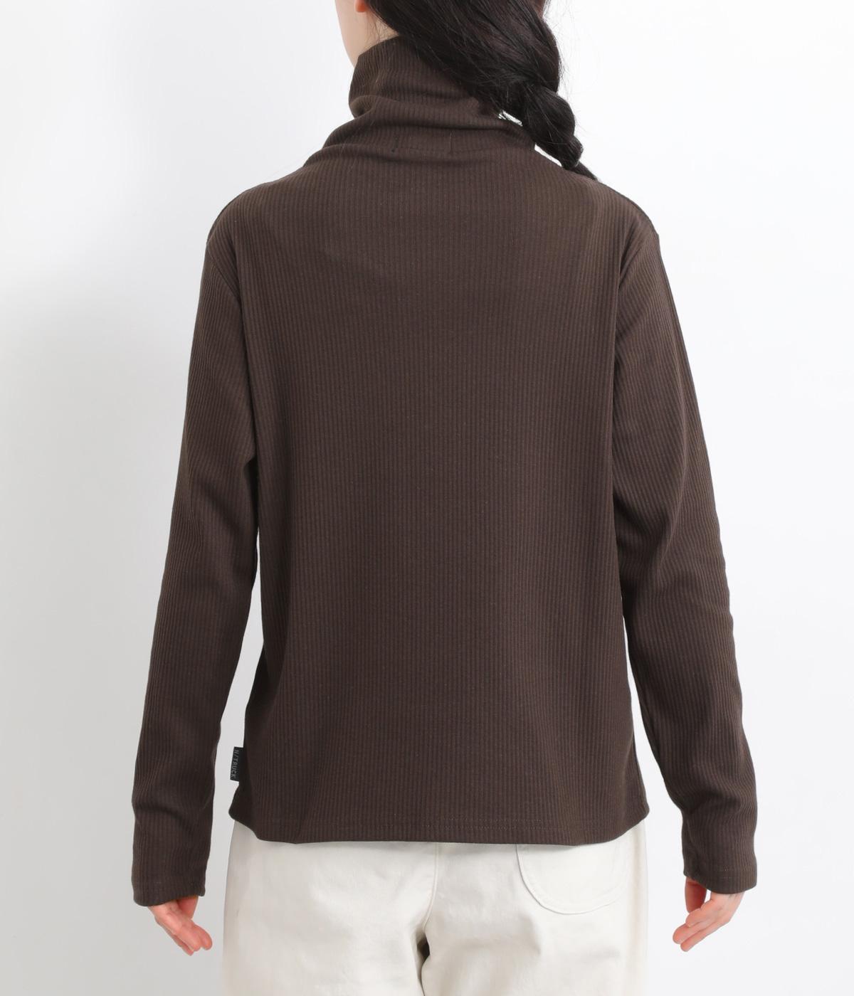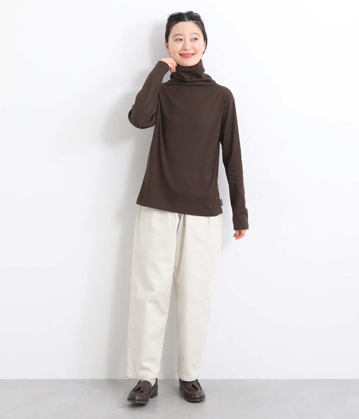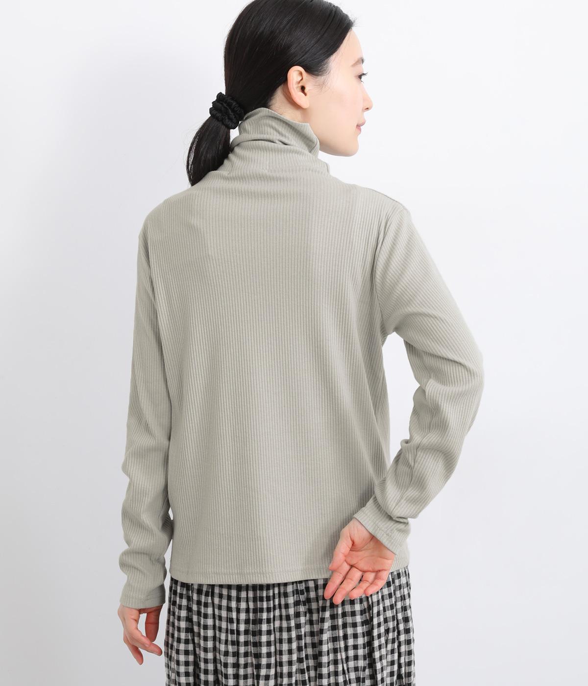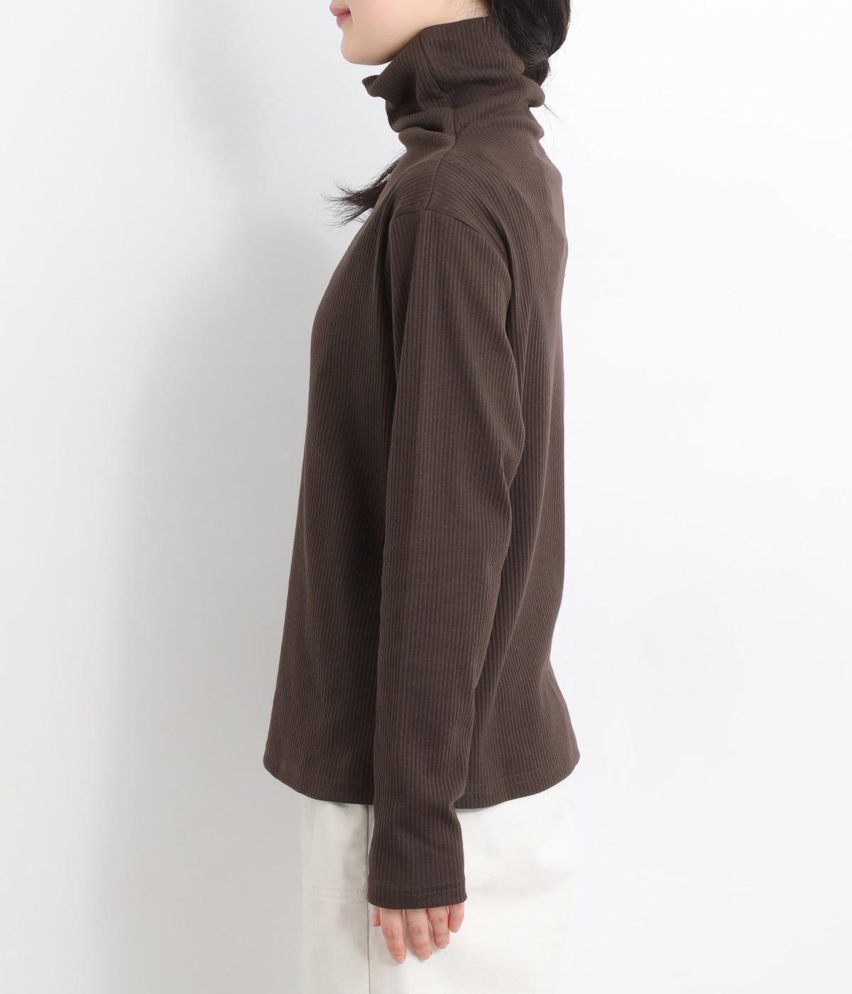 適度なフィット感が心地よいリブ編みのプルオーバー。首元まであたためてくれるタートルネックはくしゅっとたるませてニュアンスアップ。タテ畝がすっきり見えを叶え、脇のピスネームがさり気ないワンポイントに。