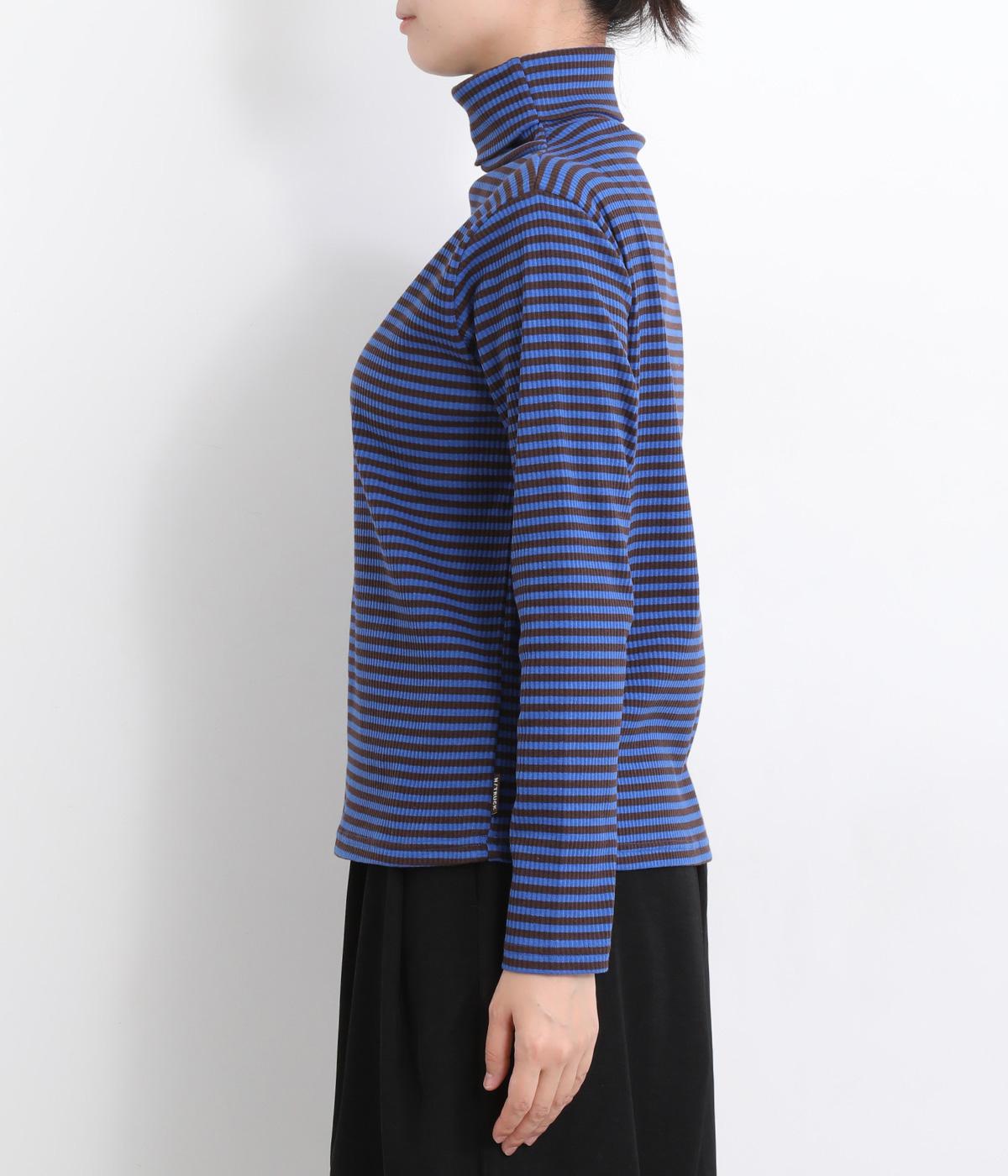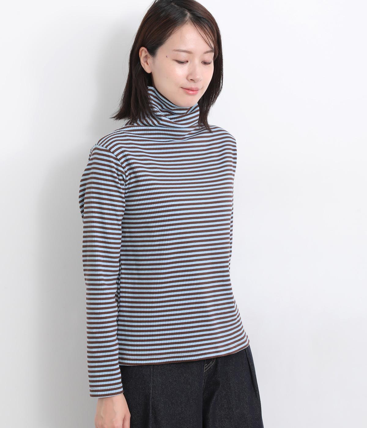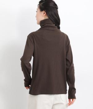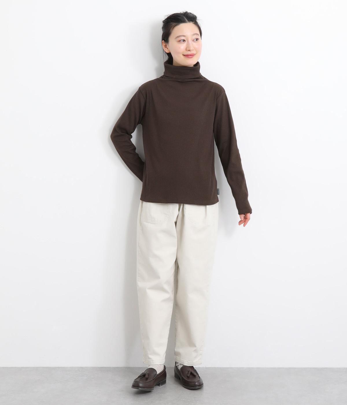適度なフィット感が心地よいリブ編みのプルオーバー。首元まであたためてくれるタートルネックはくしゅっとたるませてニュアンスアップ。タテ畝がすっきり見えを叶え、脇のピスネームがさり気ないワンポイントに。