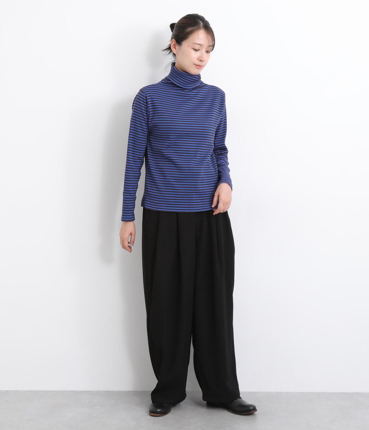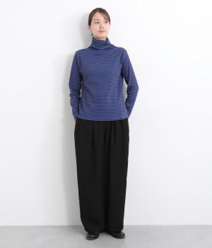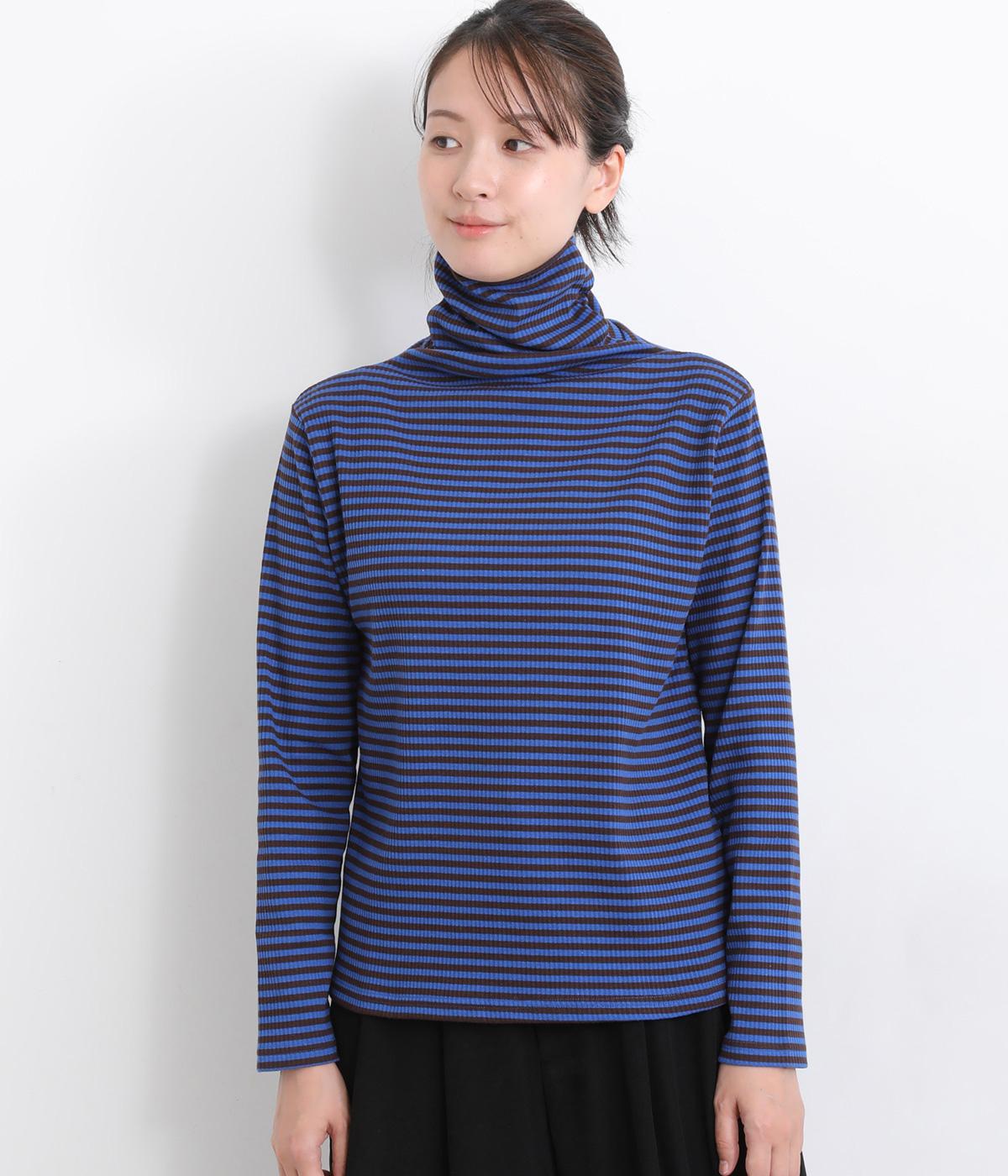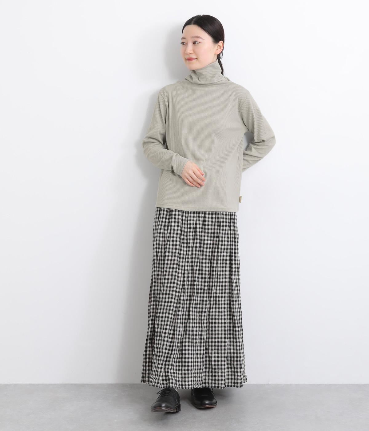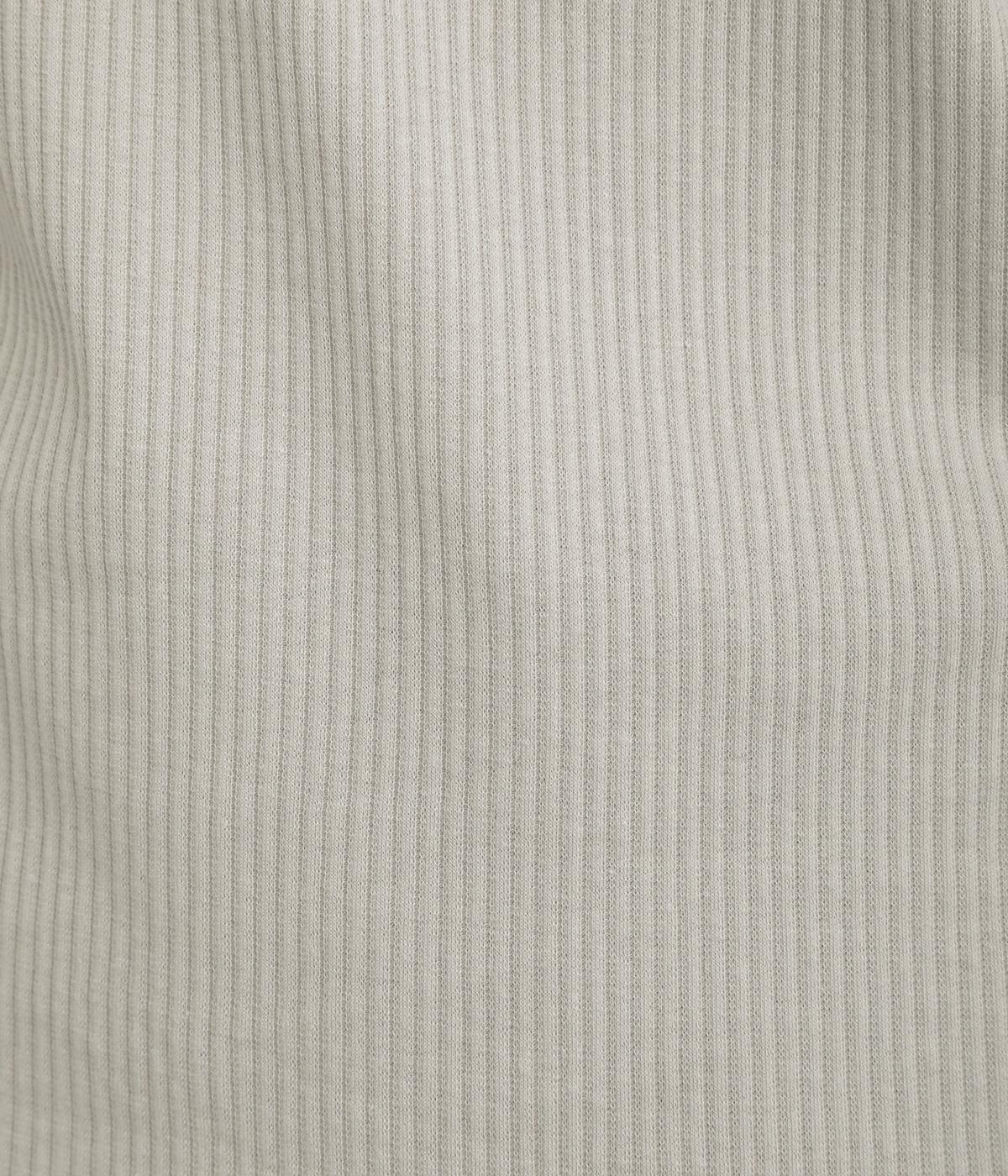肌触りはさらっと軽く、伸縮性に優れたコットン混紡のリブ編み仕立て。メイン使いもレイヤードのインナーにもなるちょうどいい肉感の生地です。