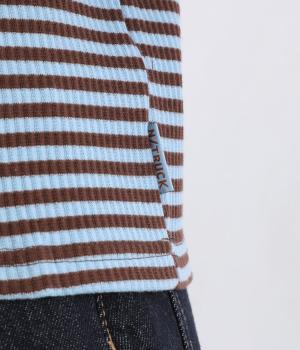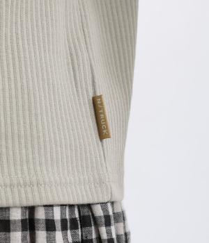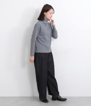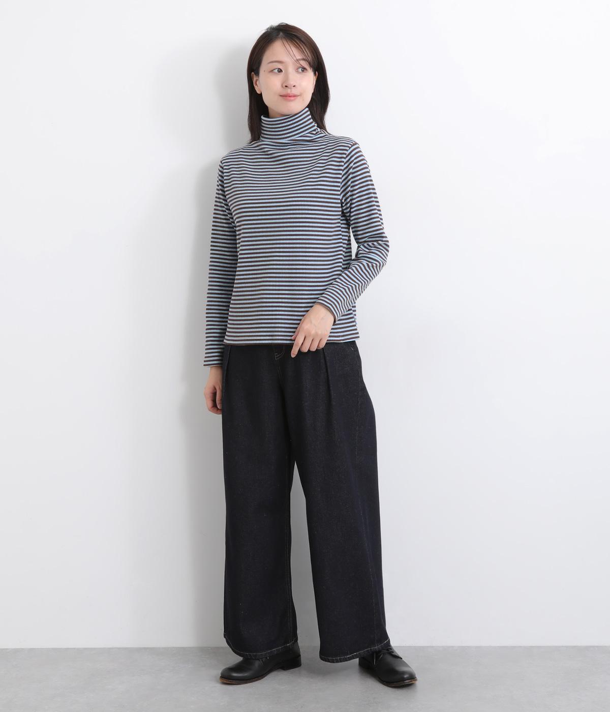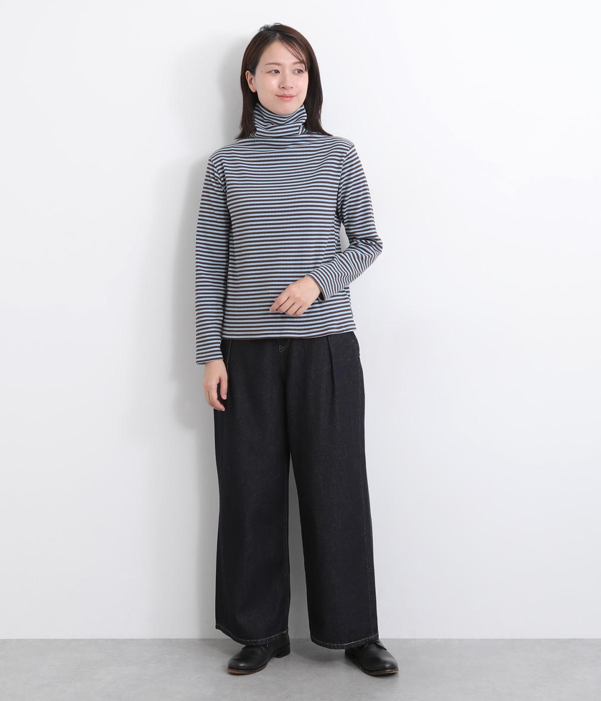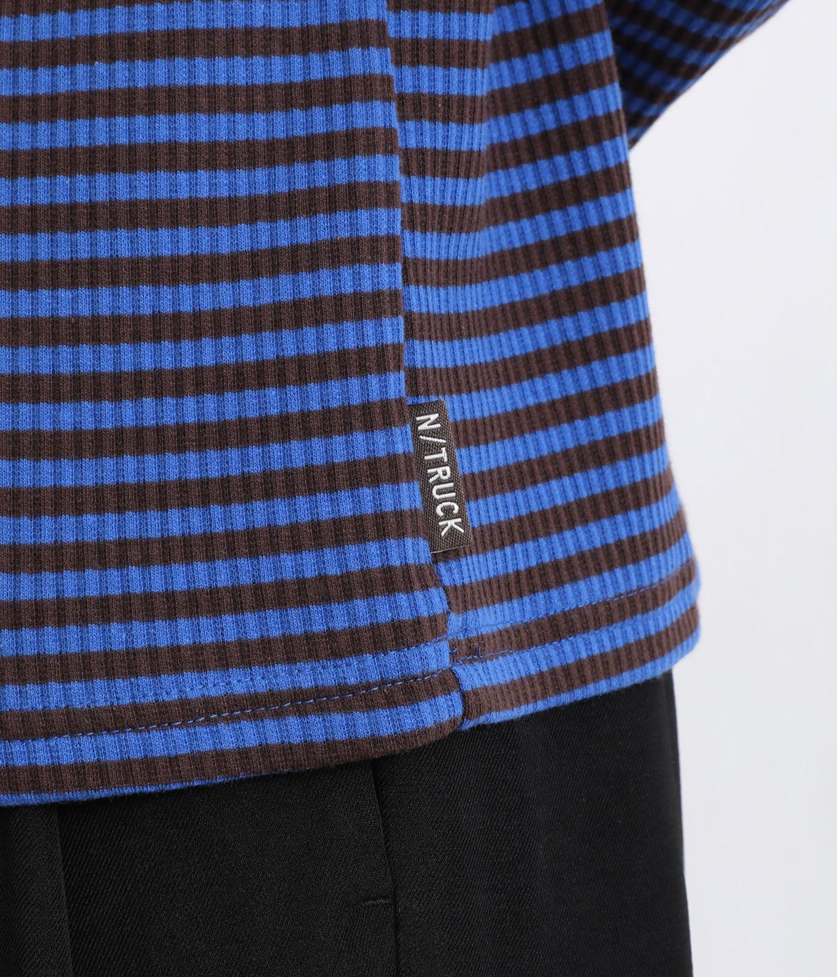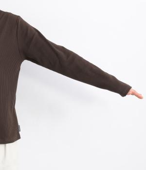 肌触りはさらっと軽く、伸縮性に優れたコットン混紡のリブ編み仕立て。メイン使いもレイヤードのインナーにもなるちょうどいい肉感の生地です。